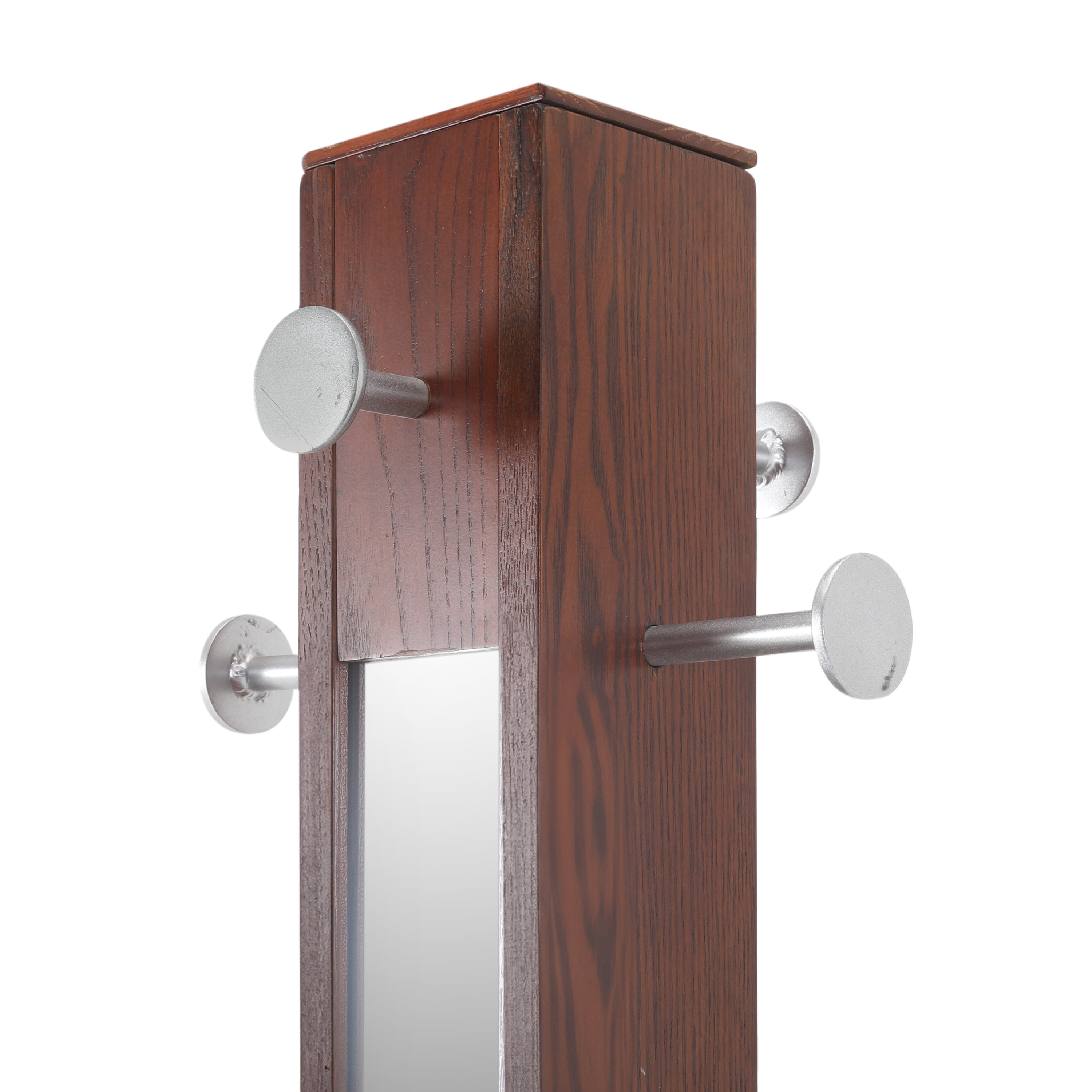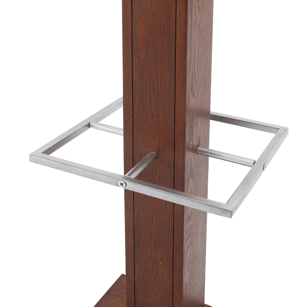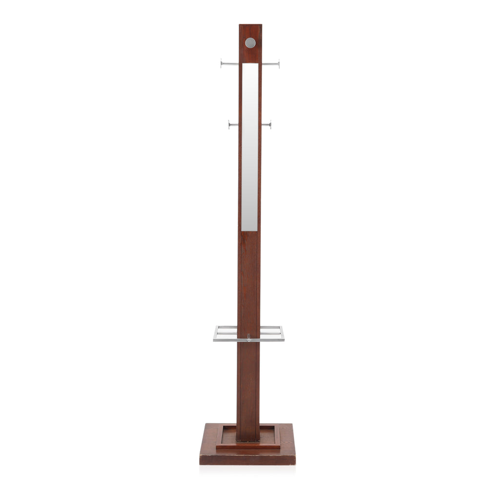 Details: Tall wood coat rack with metallic accents. Dimensions: 72" H x 16" W x 16" D