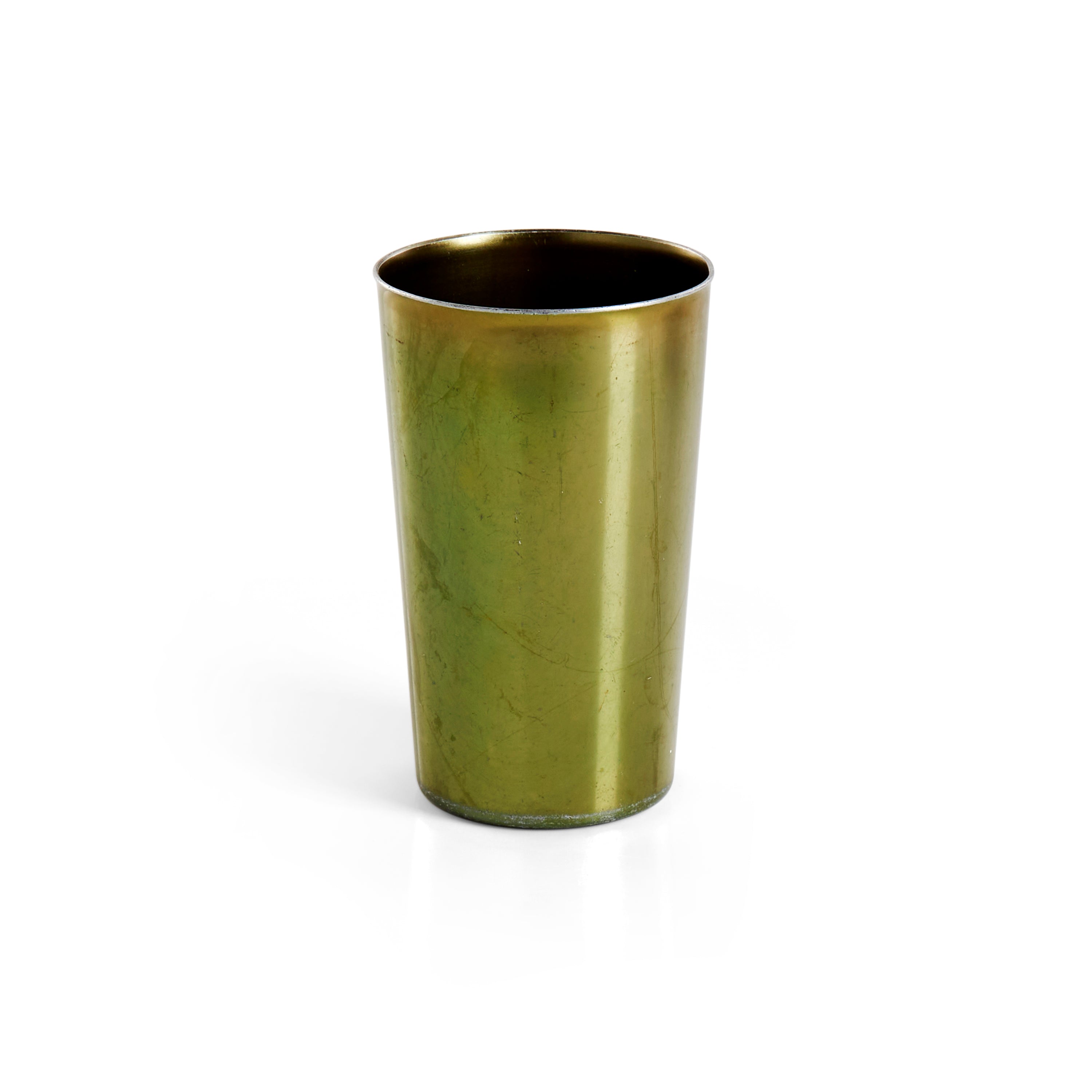 Details: Set of three metallic cups (gold, green, and silver) Dimensions: 5" High x 3" Diameter (each)