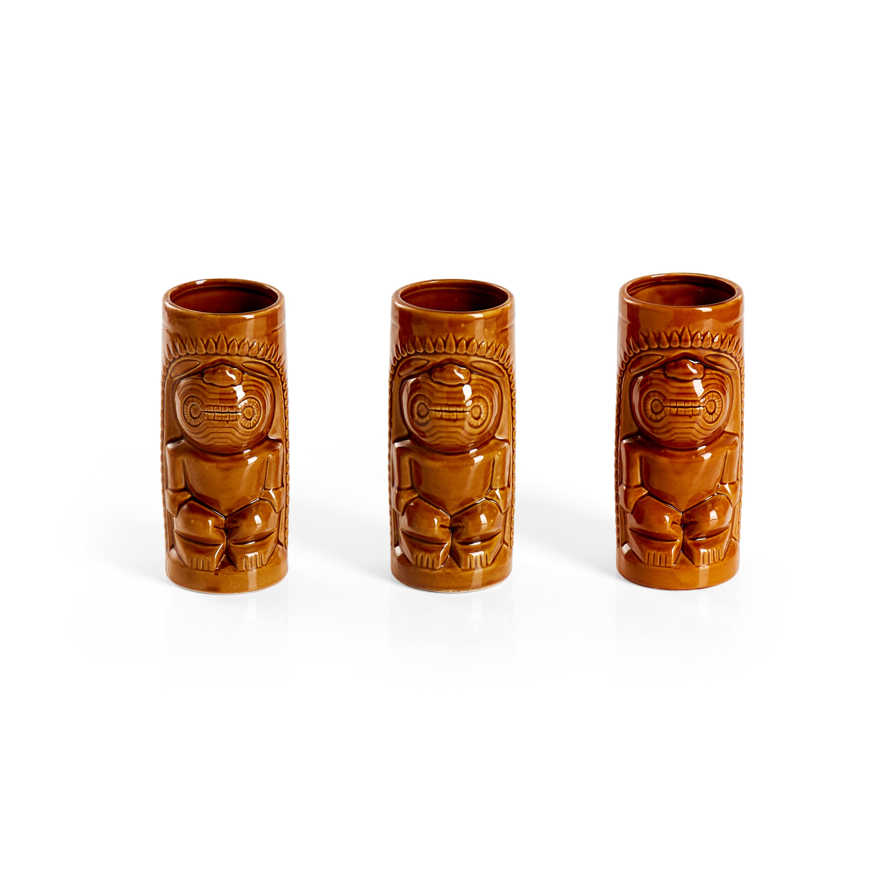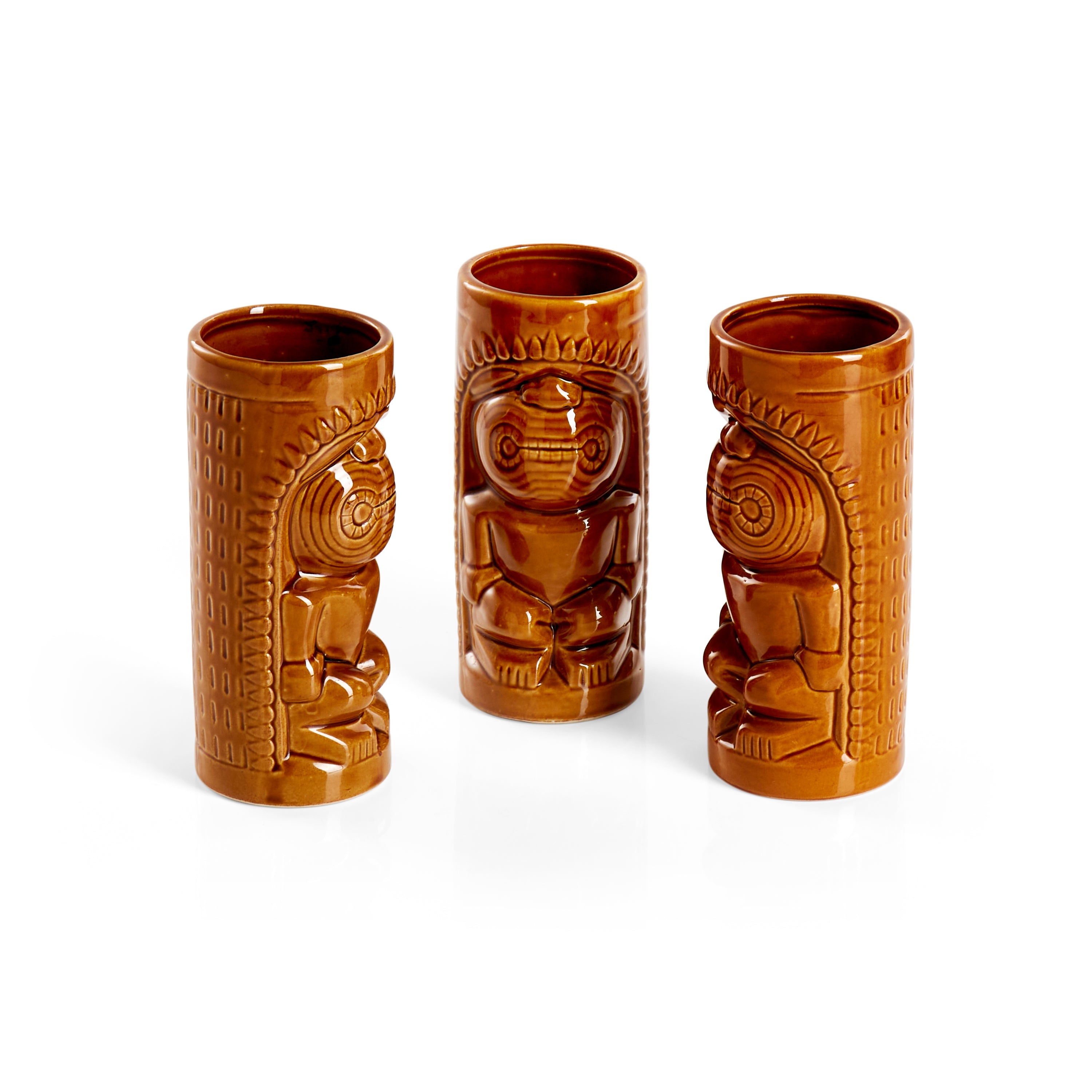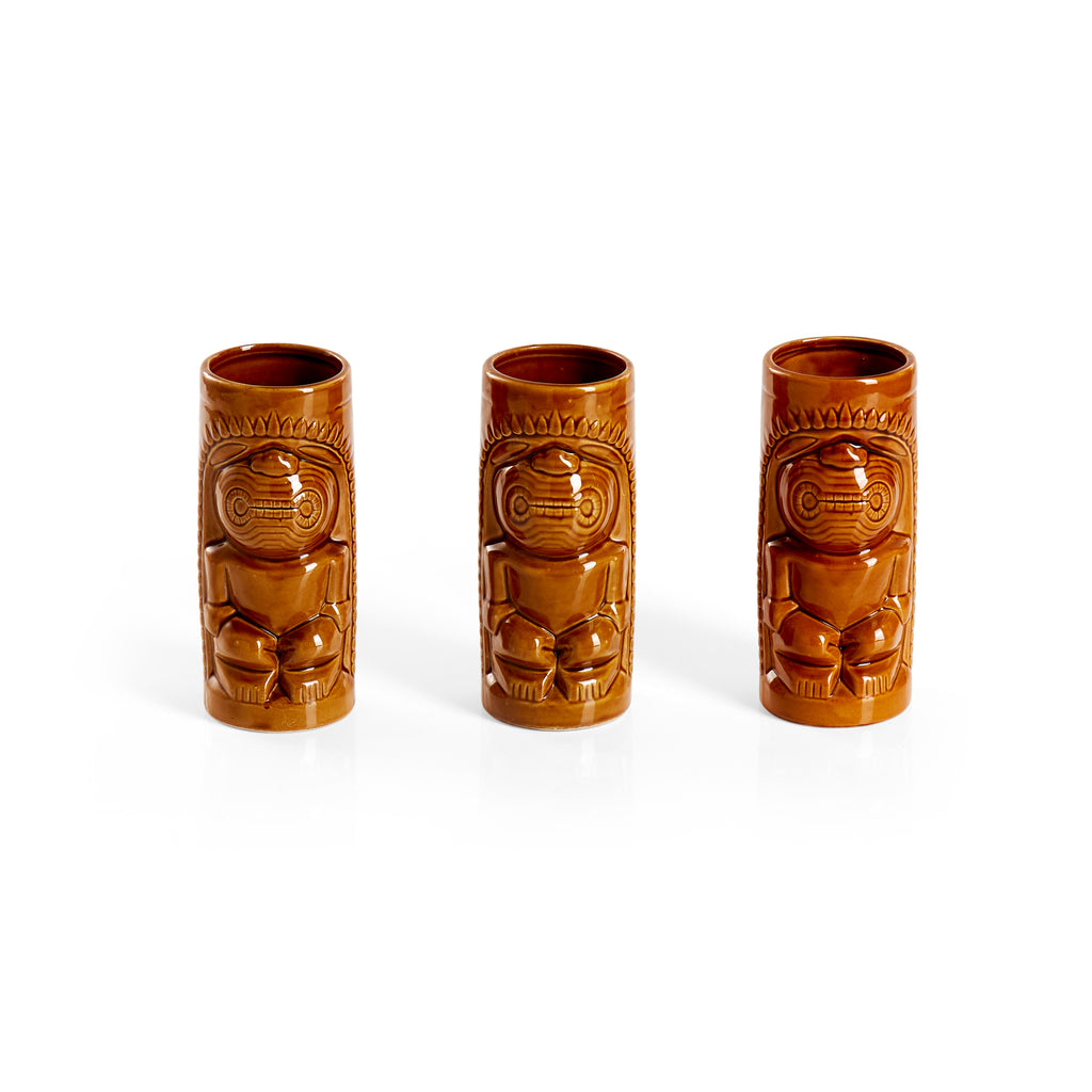 Details: Tiki Men, Cylinder, Ceramic Cups, Brown Dimensions: 6.5" H x 2.75" Diameter