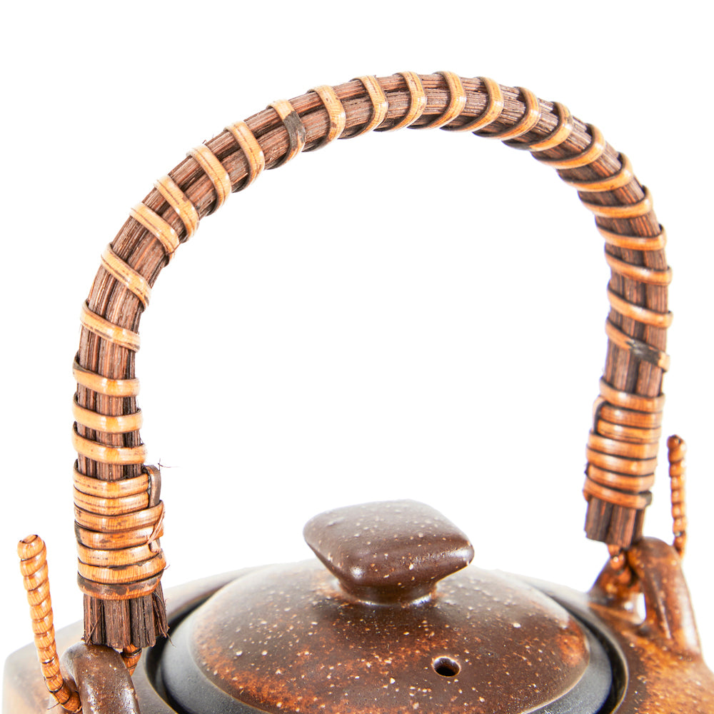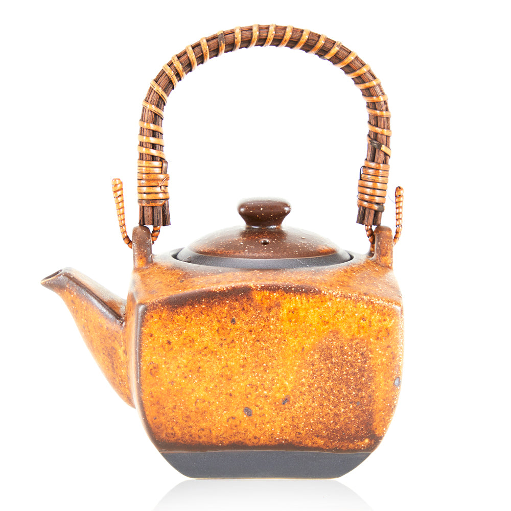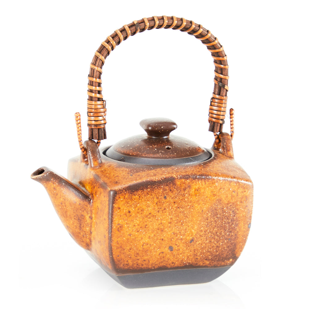 Details: High-fired ceramic tea pot with wooden handle Dimensions: 7.5" H x 4.5" W x 6" D Quantity: 1