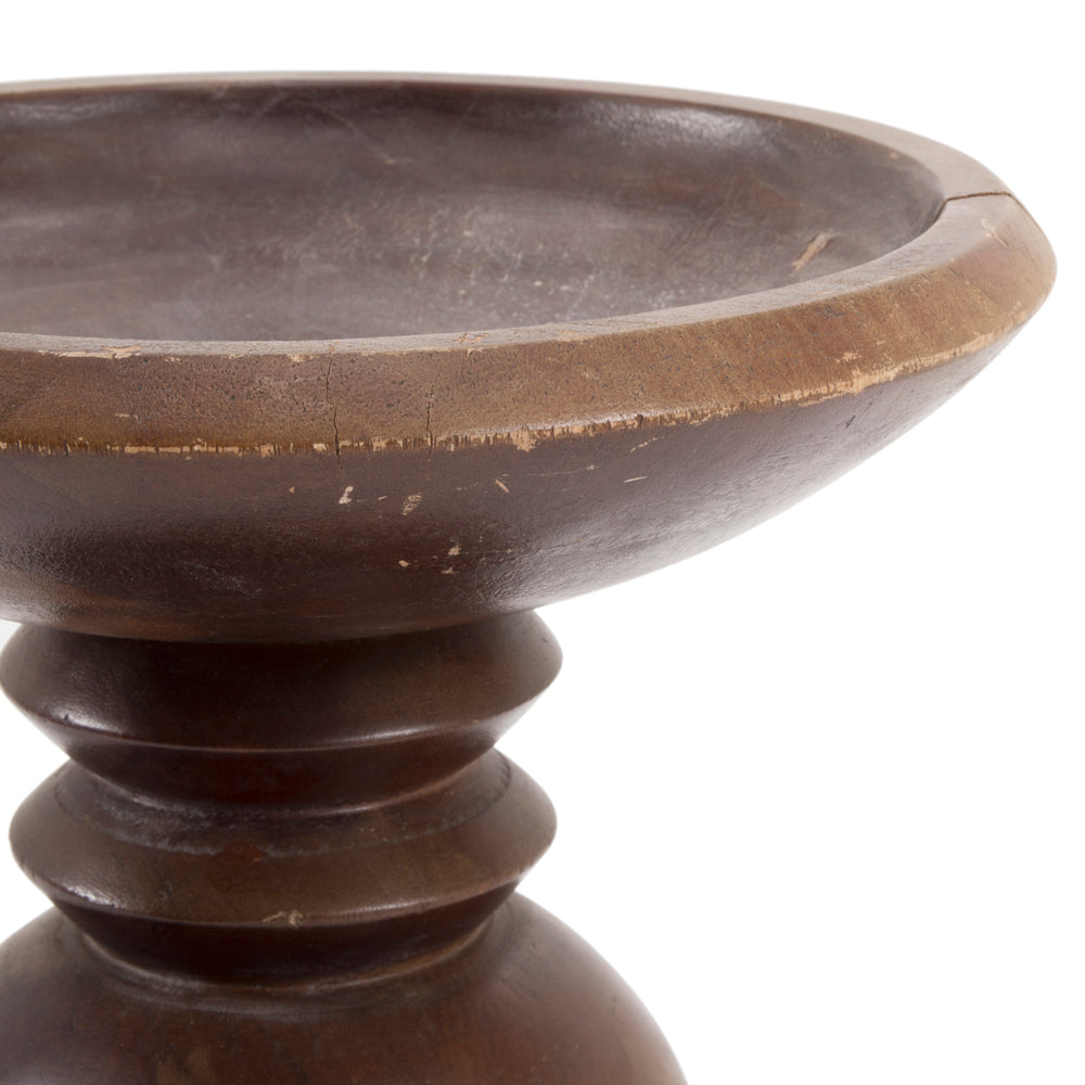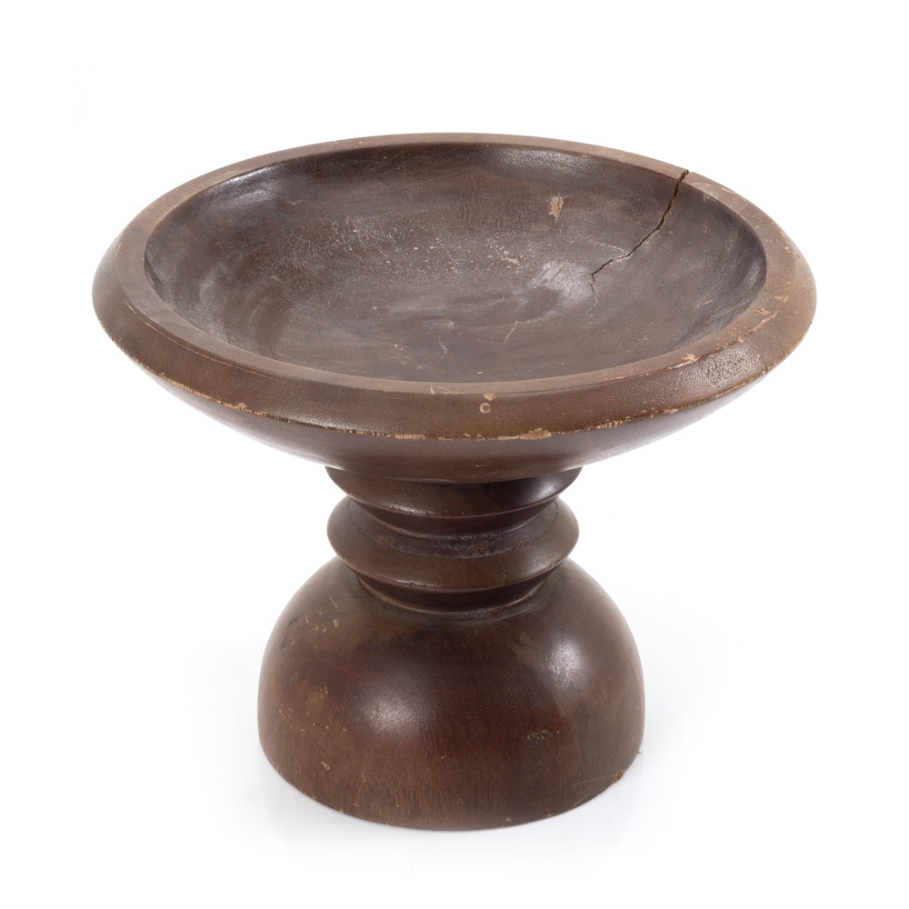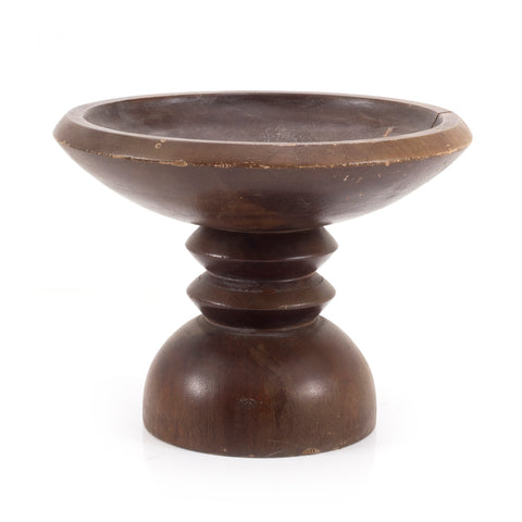 Details: Dark wood fruit bowl on standing base. Dimensions: 9" H x 12" W x 12" D Quantity: 1