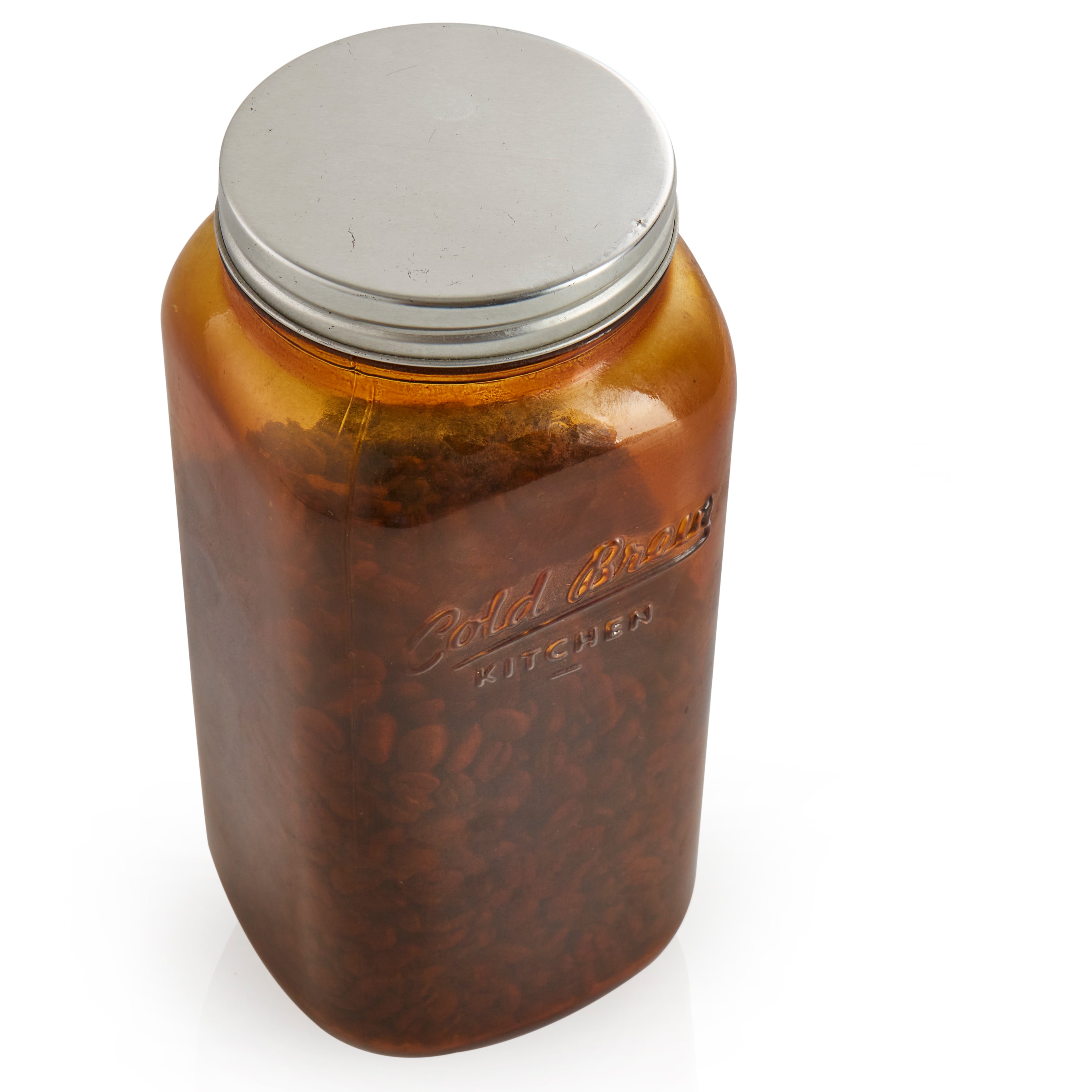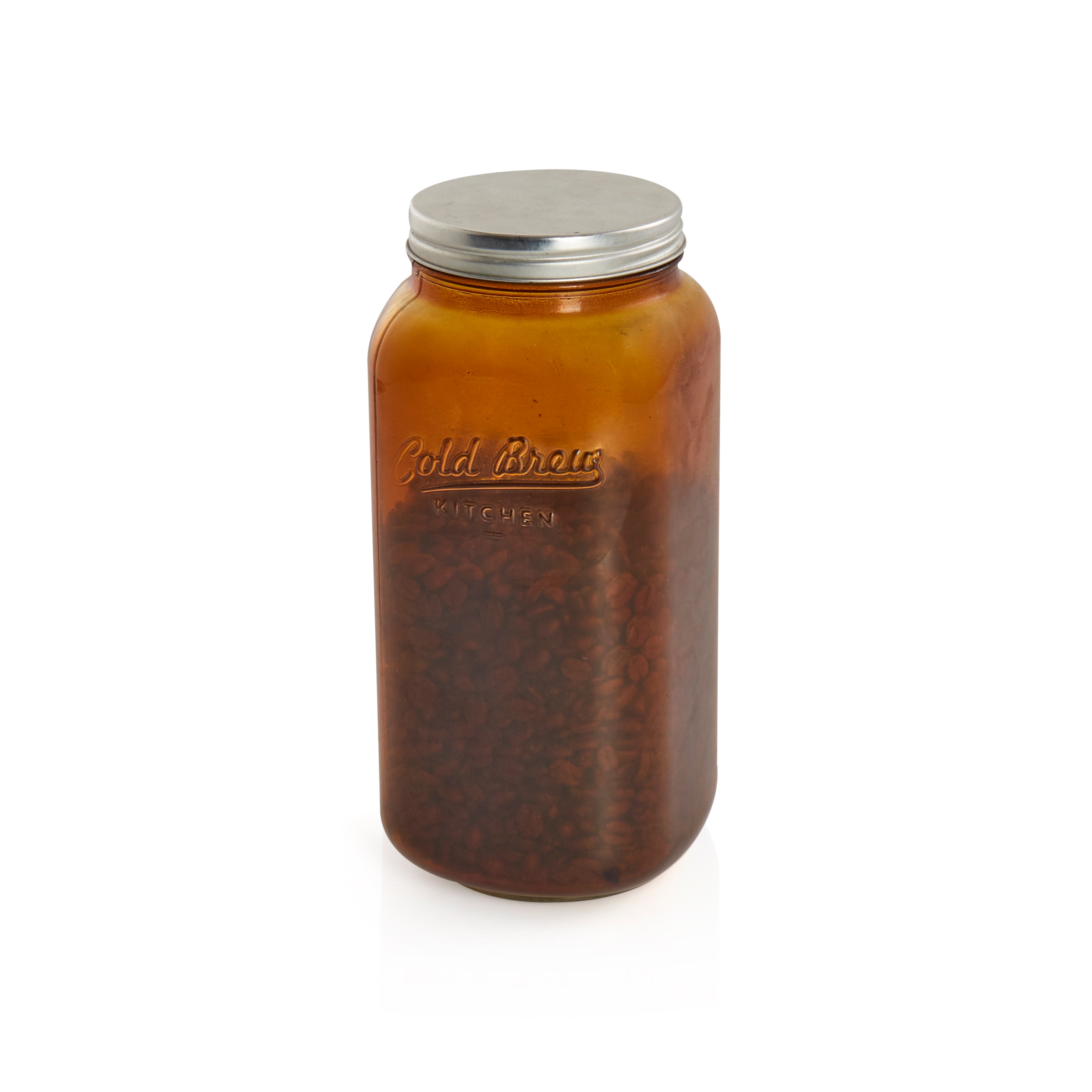 "Cold Brew Kitchen" amber glass jar with coffee beans Dimensions: 10" H x 5" D