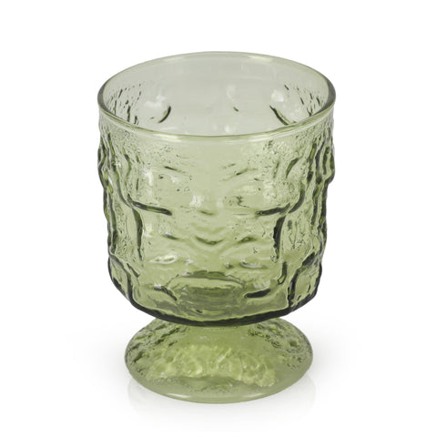 Details: Green glass goblet with textured exterior Dimensions: 4" H x 3" D Quantity: 5