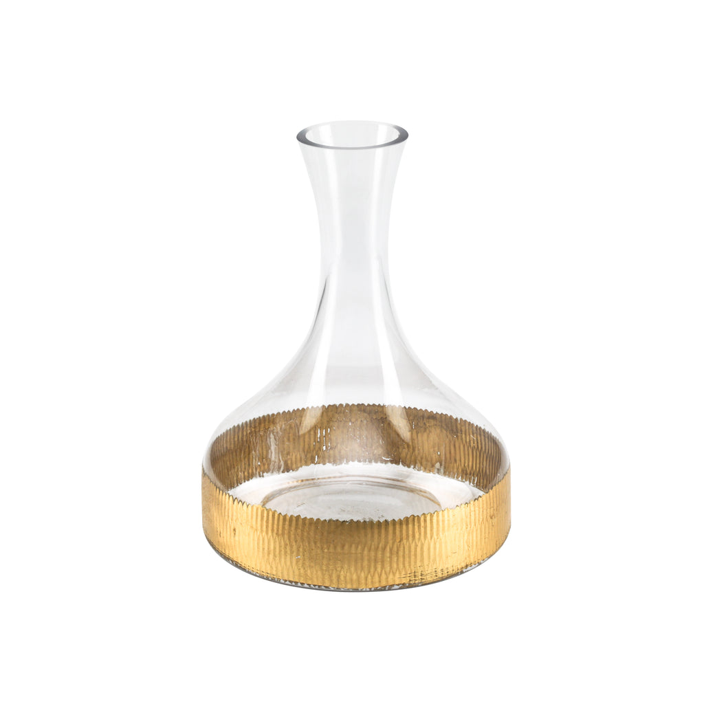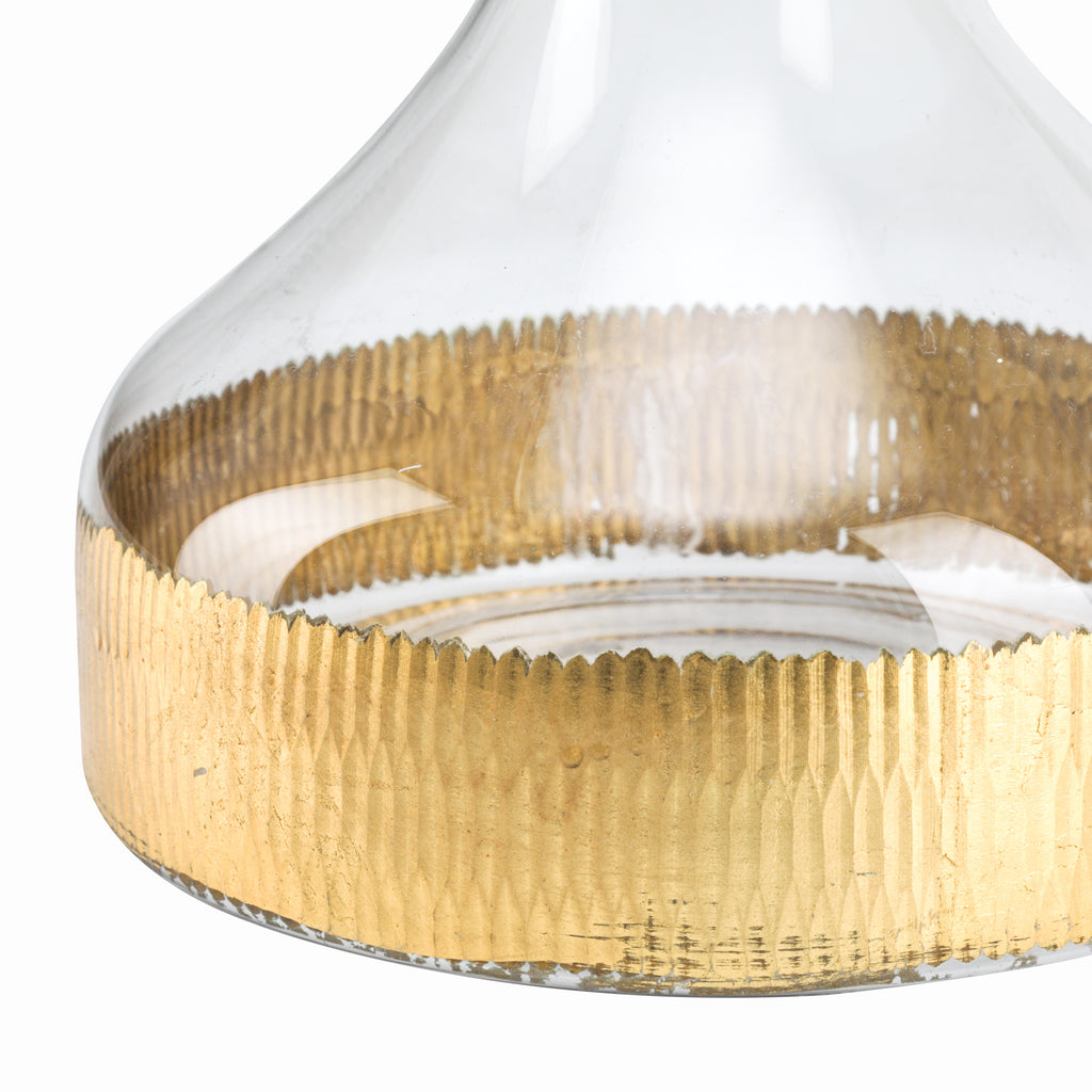 Details: Glass pitcher with gold weathered handle and spout Dimensions: 14" H x 6" W x 7" D