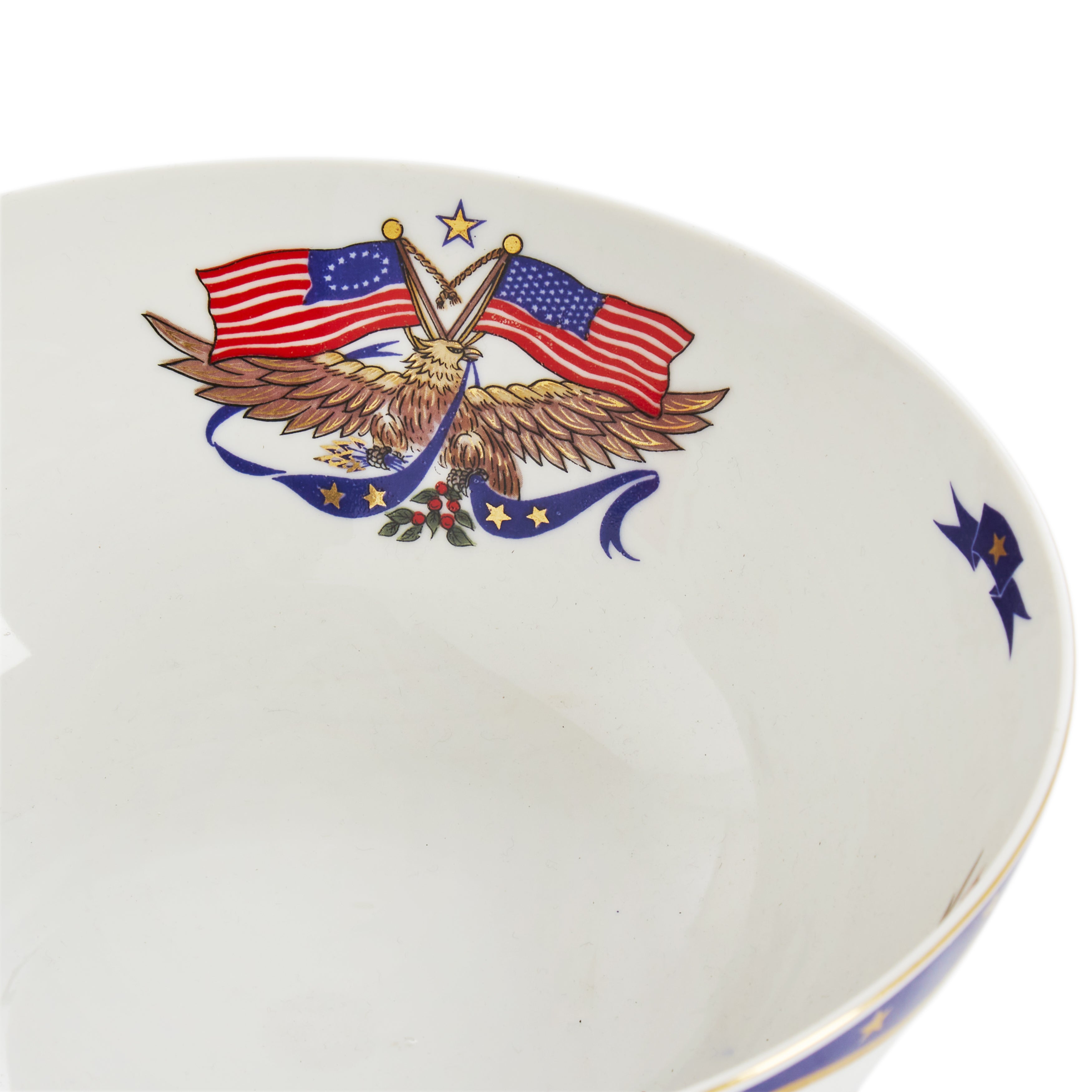 Details: White and blue china teapot with gold accent Dimensions: 8" H x 7.5" W x 5.25" D