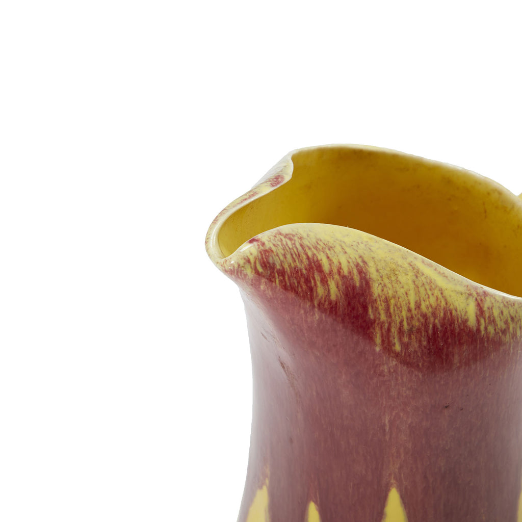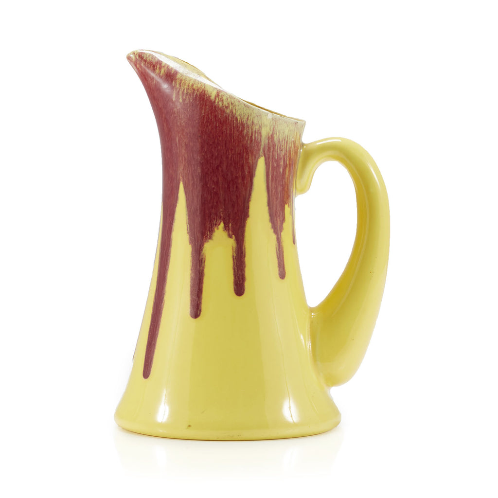 Details: Yellow pitcher with red drip design Dimensions: 11" H x 4" W x 6" D Quantity: 1