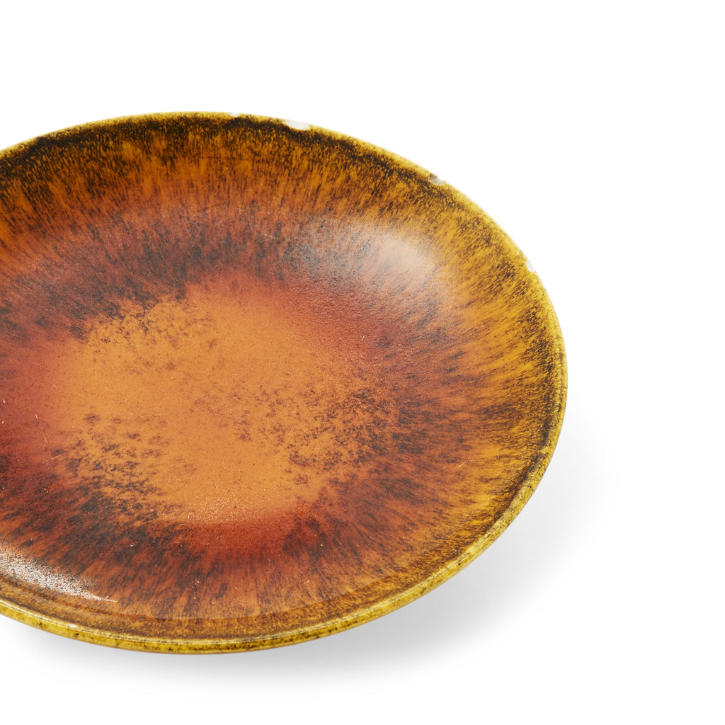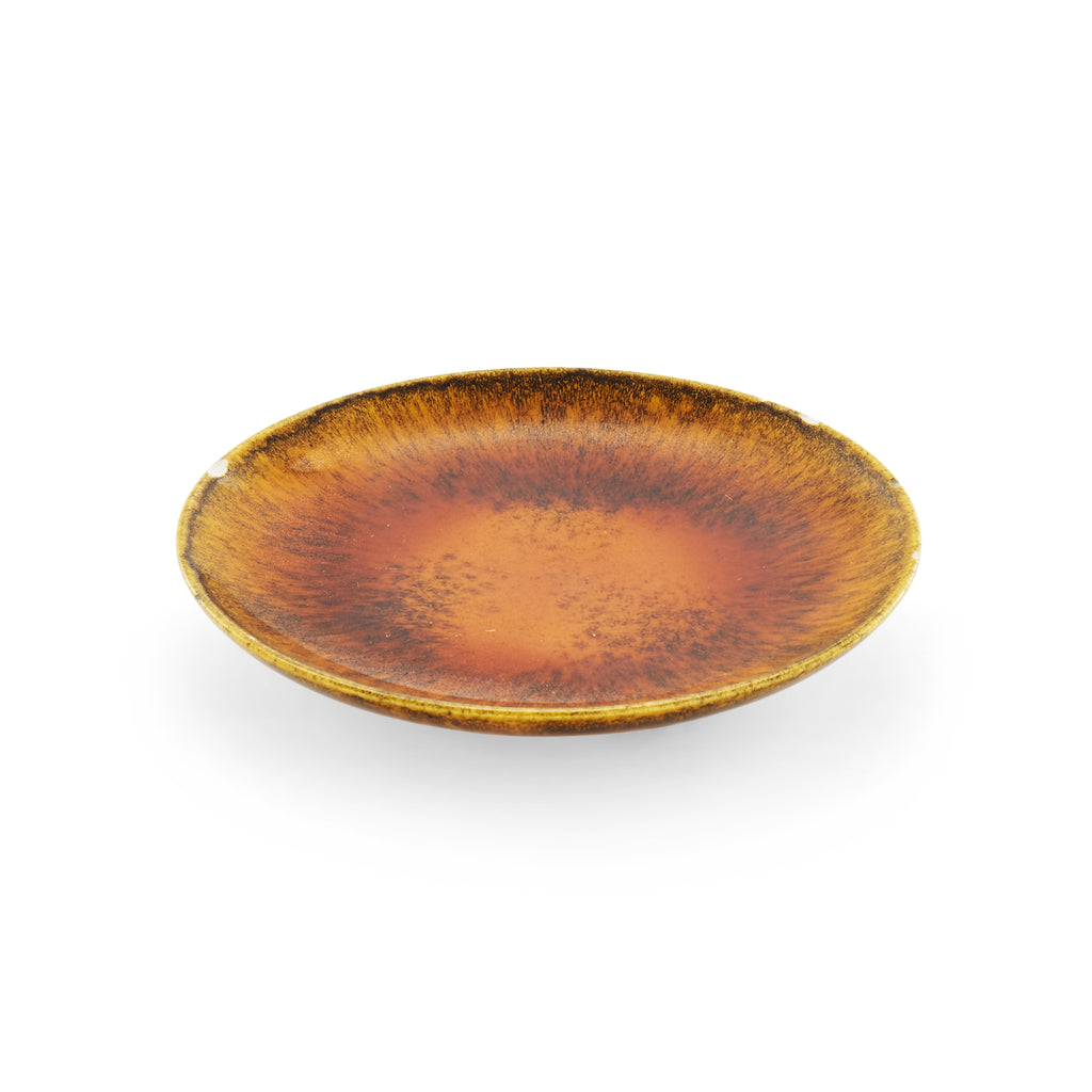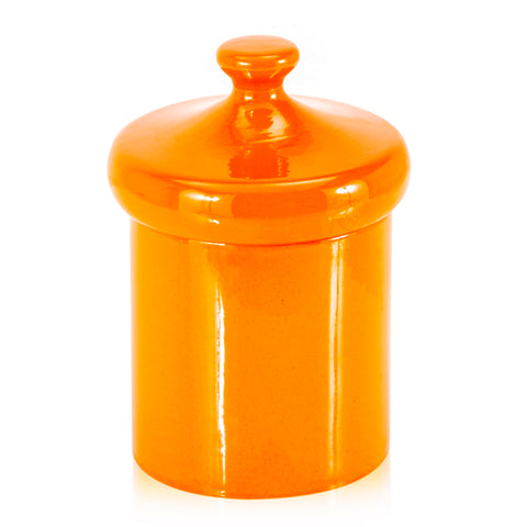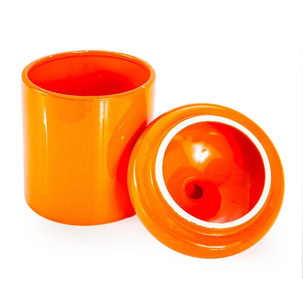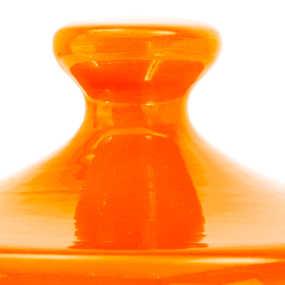 Details: Glass condiment cups with orange lids, gold handles, and small spoons. Comes as part of a set with chafing dish and serving platters. Dimensions:...