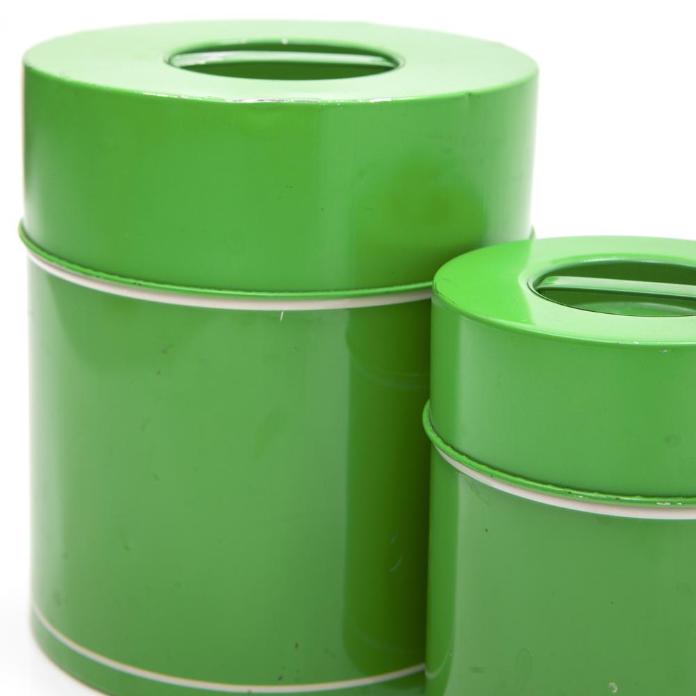 Details: Green plastic vintage canisters.