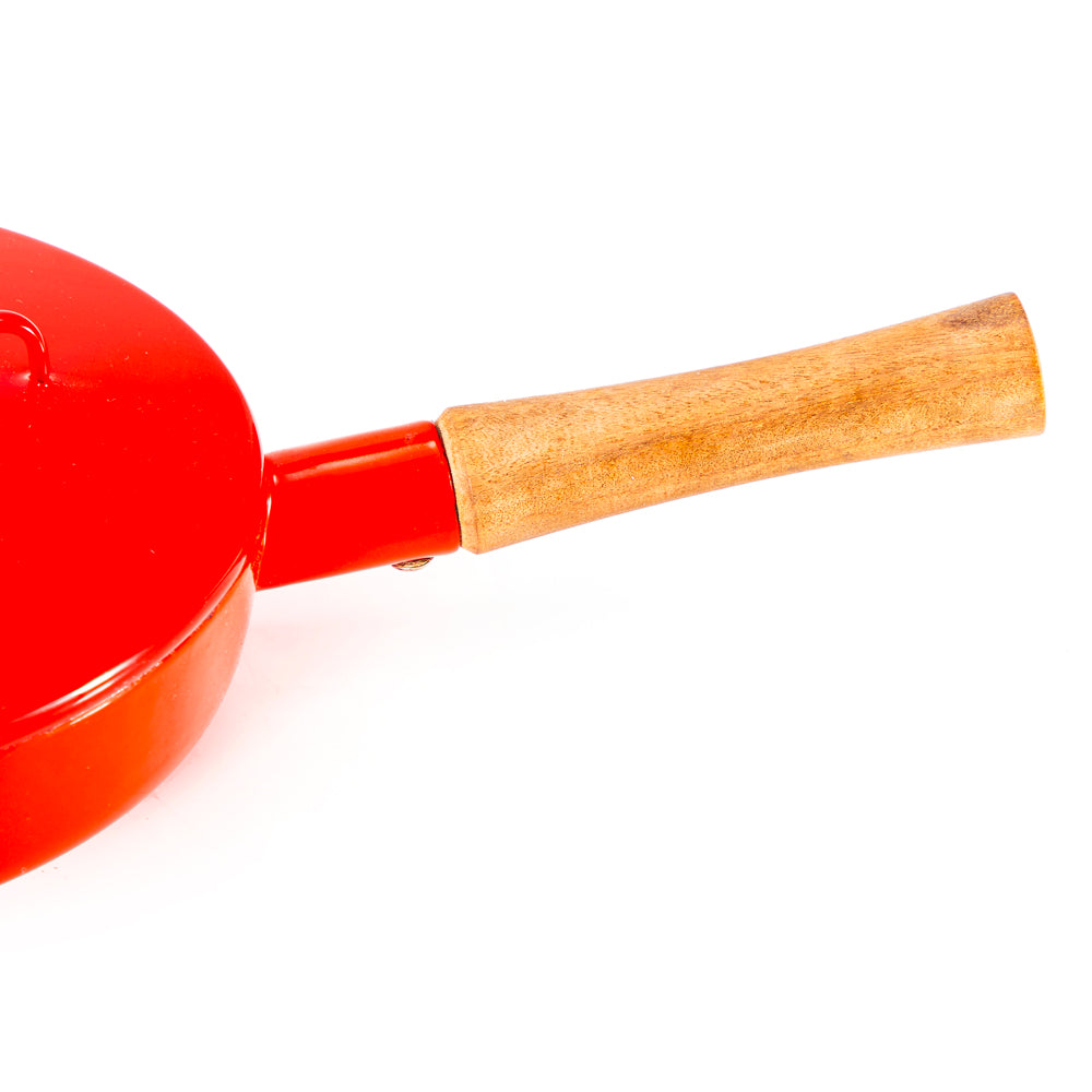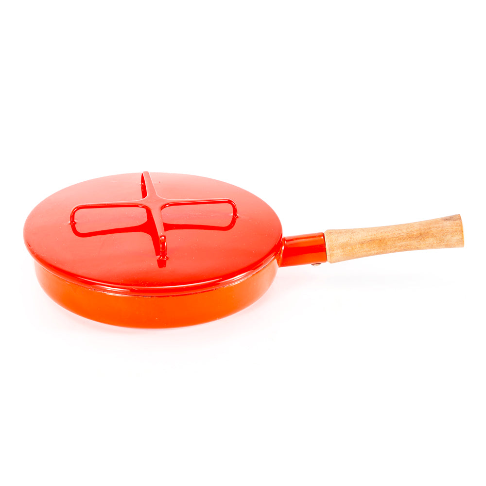 Details: Red - Orange, Kitchen, Cooking, Dansk, Wood Handle, Pan, LidDimensions: 3" H x 17" W x 10" D