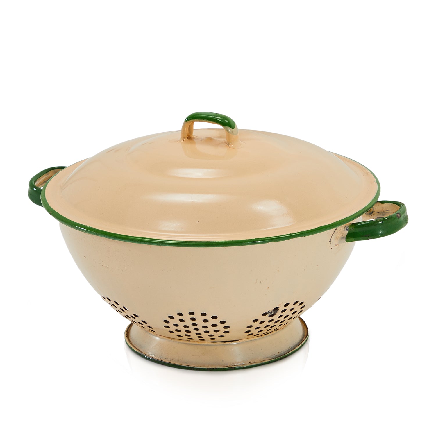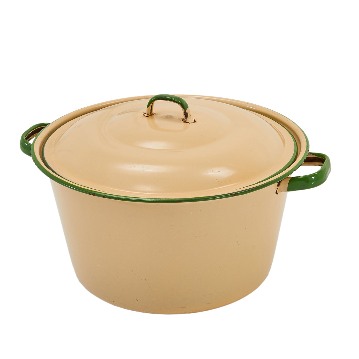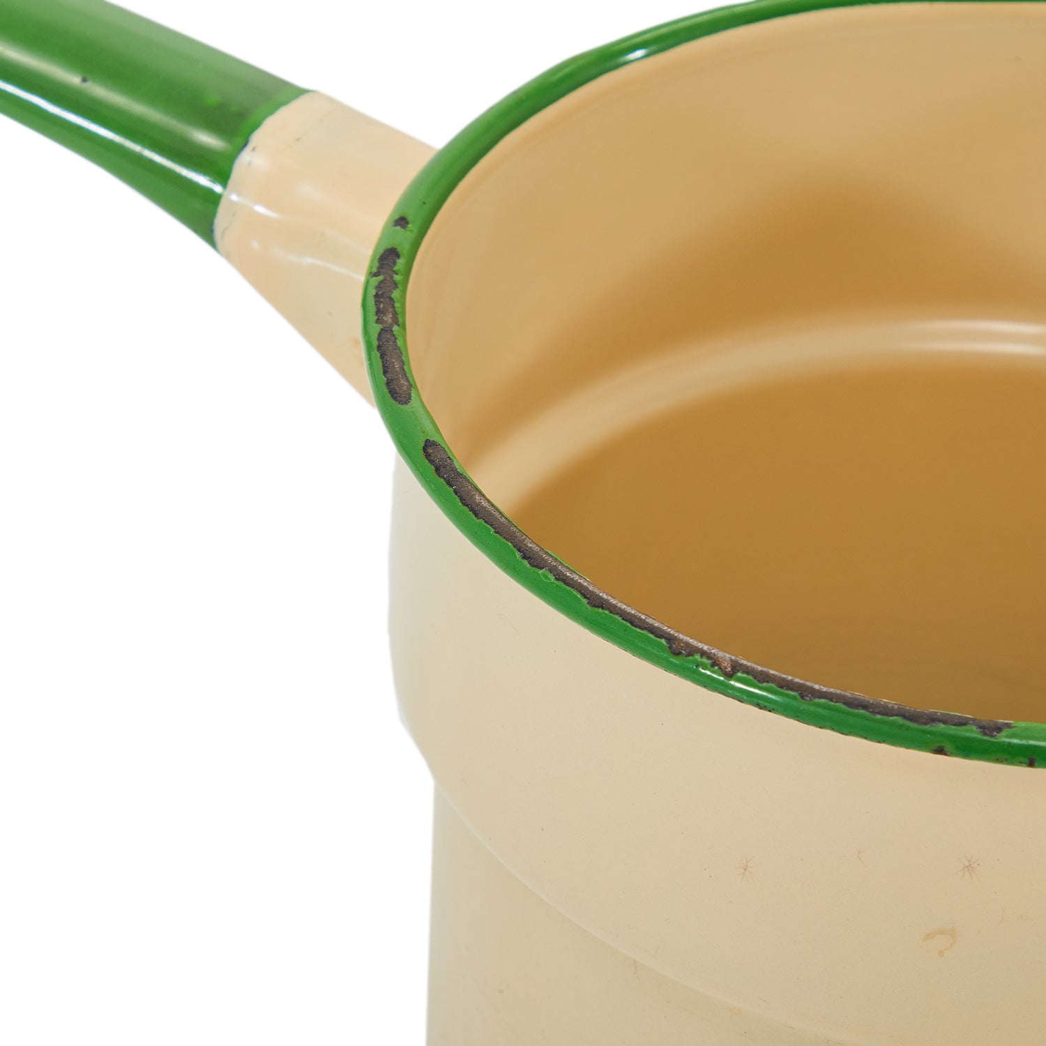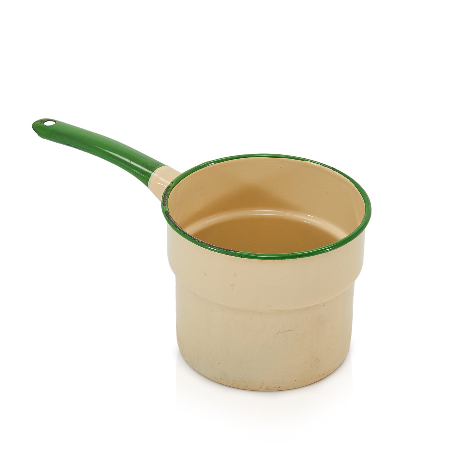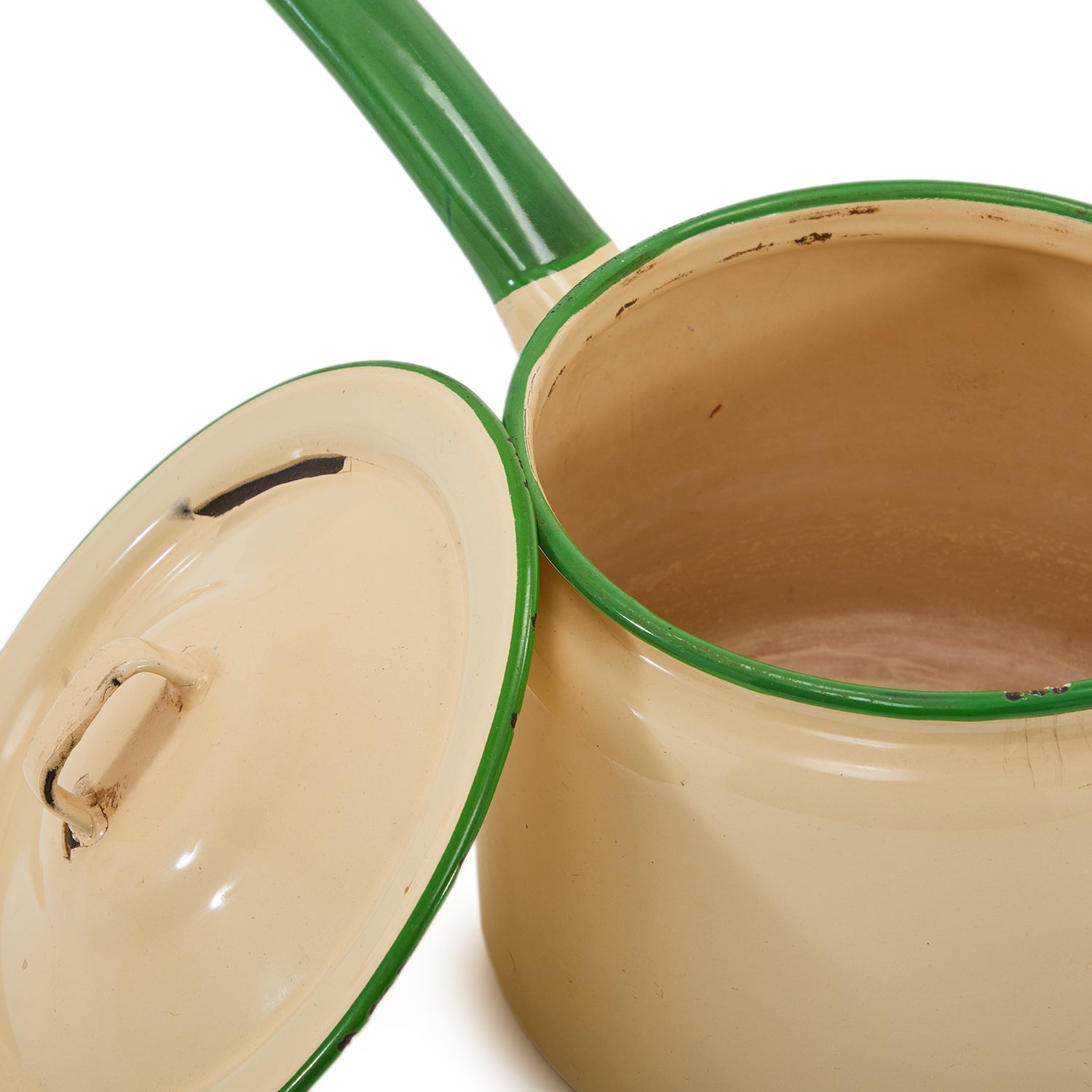 Details: Cathrineholm, Norway, White Leaves, Blue, White, Black, Yellow, Various Cookware, Pots, Bowls, Butter Pans, Lids, Kitchenware Dimensions: 3" H x 9.5" W X 5"...