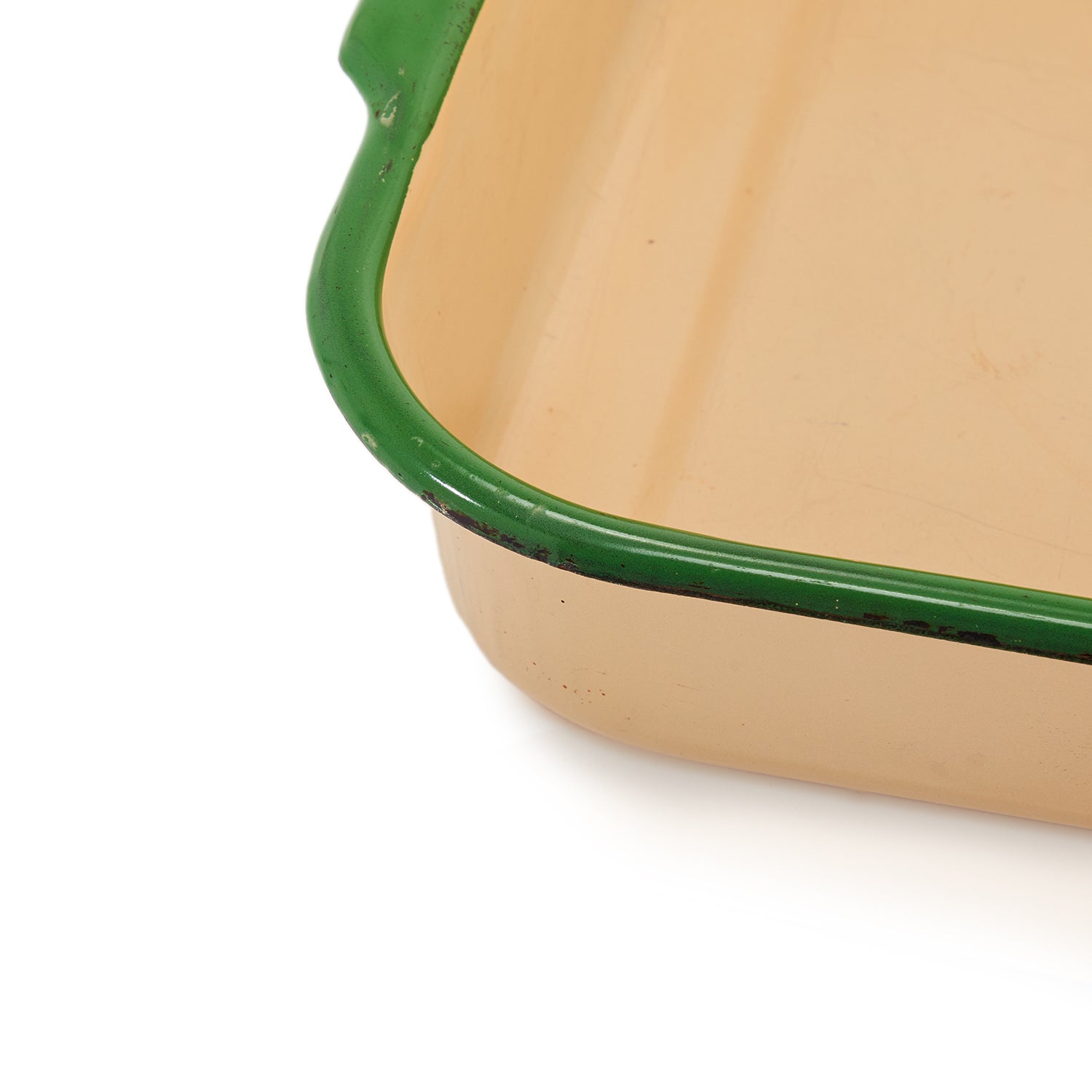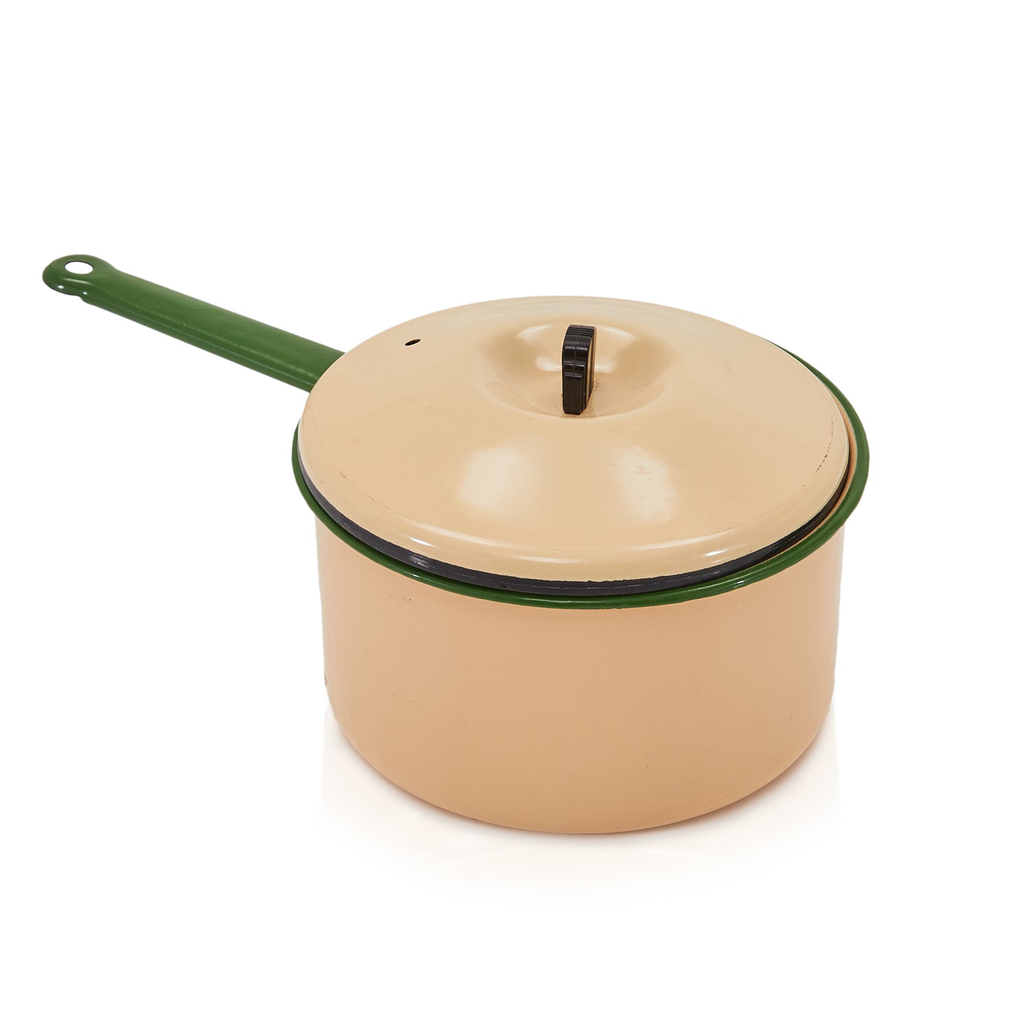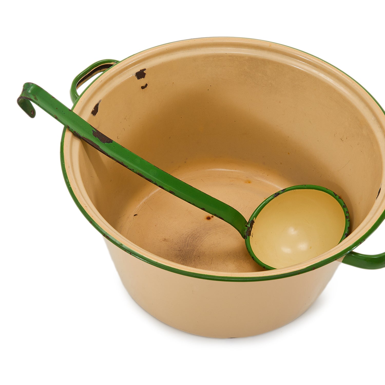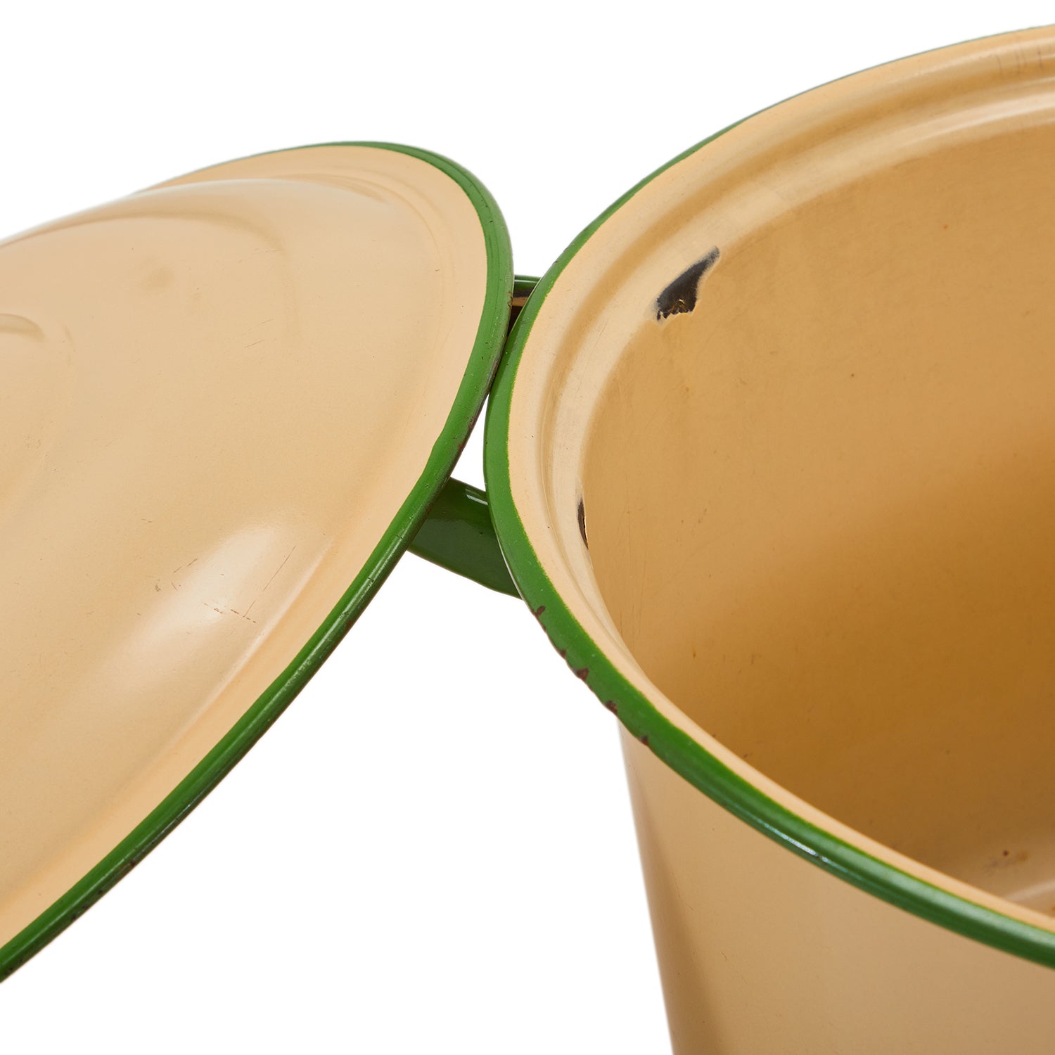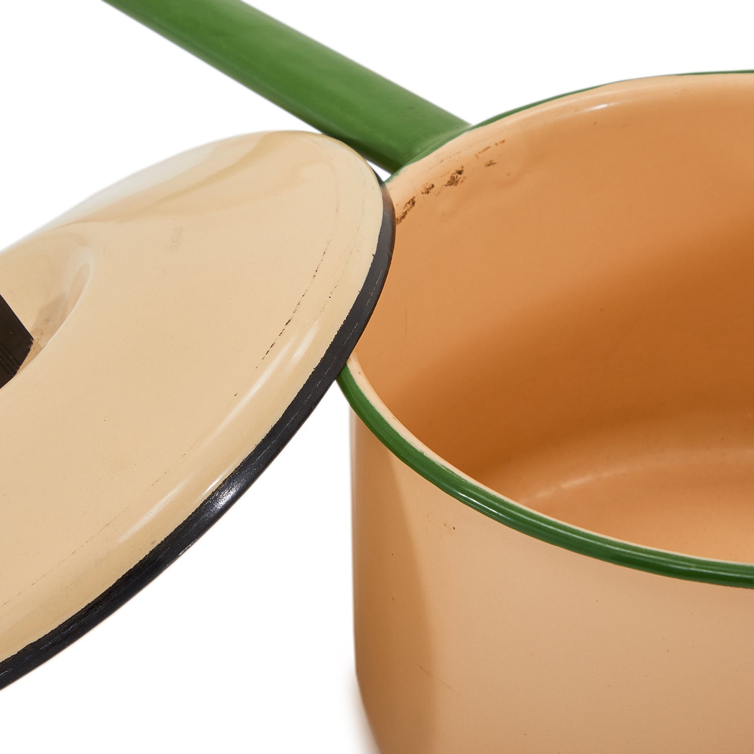 Details: Cathrineholm, Norway, White Leaves, Blue, White, Black, Yellow, Various Cookware, Pots, Bowls, Butter Pans, Lids, Kitchenware Dimensions: 3" H x 9.5" W X 5"...