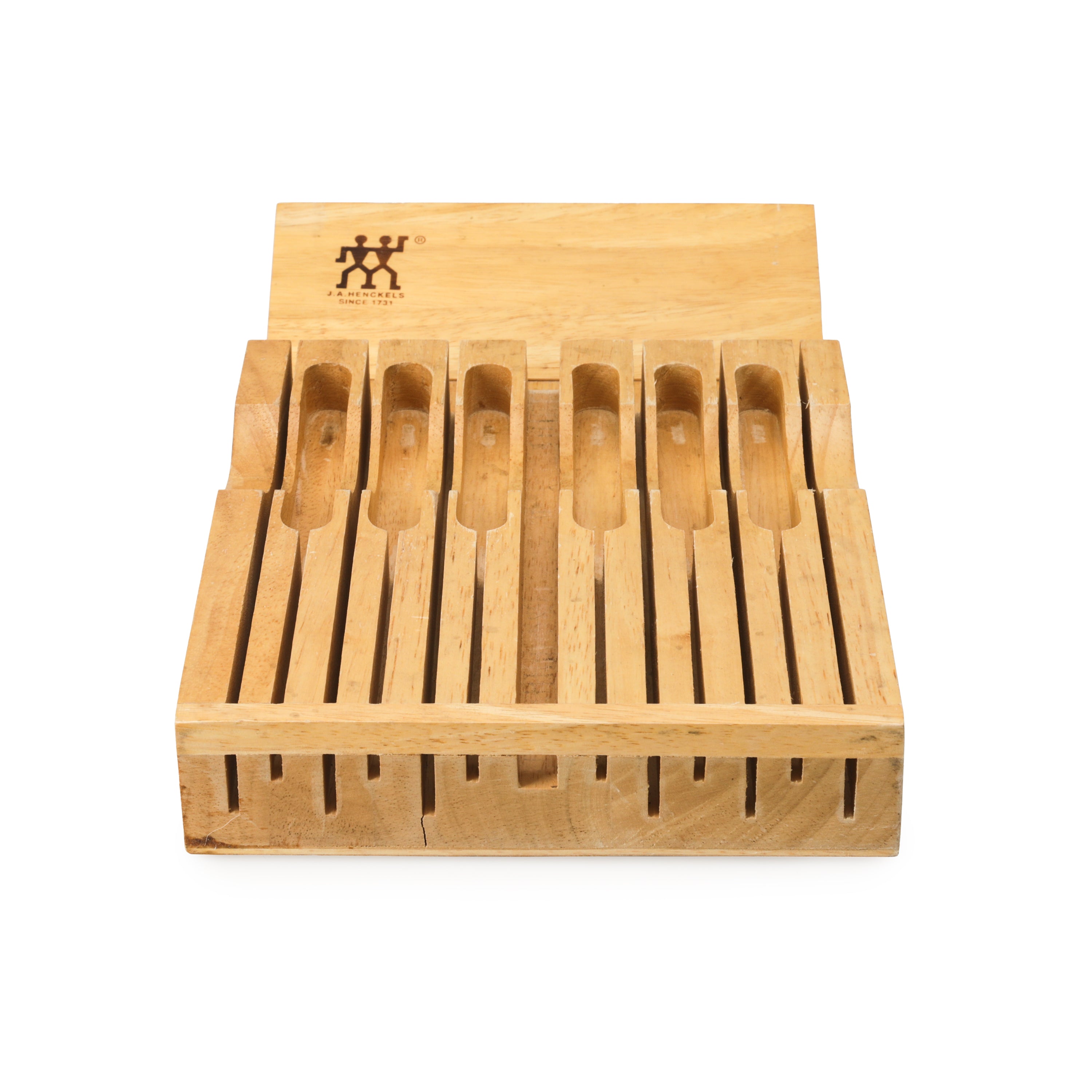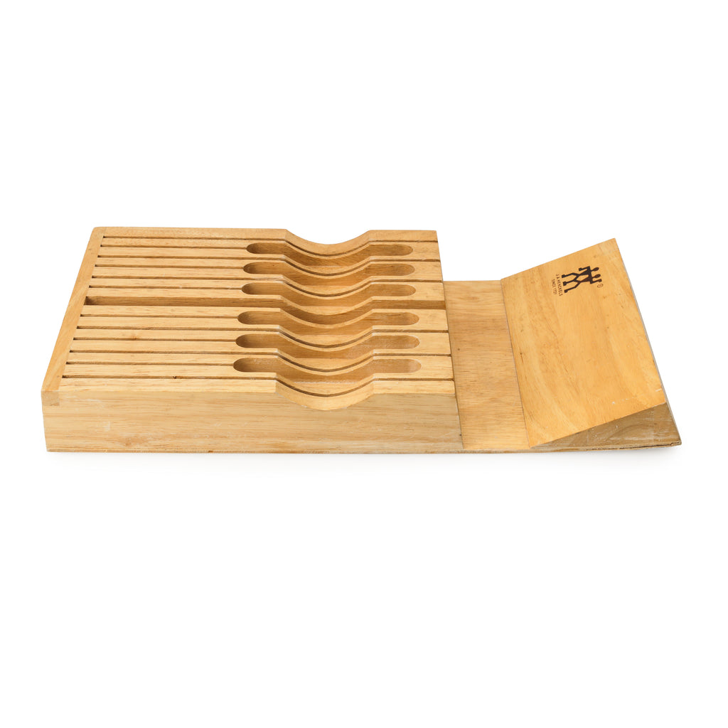 Details: Wooden knife holder made by J.A. Henkels Dimensions: 2" H x 9" W x 17" D