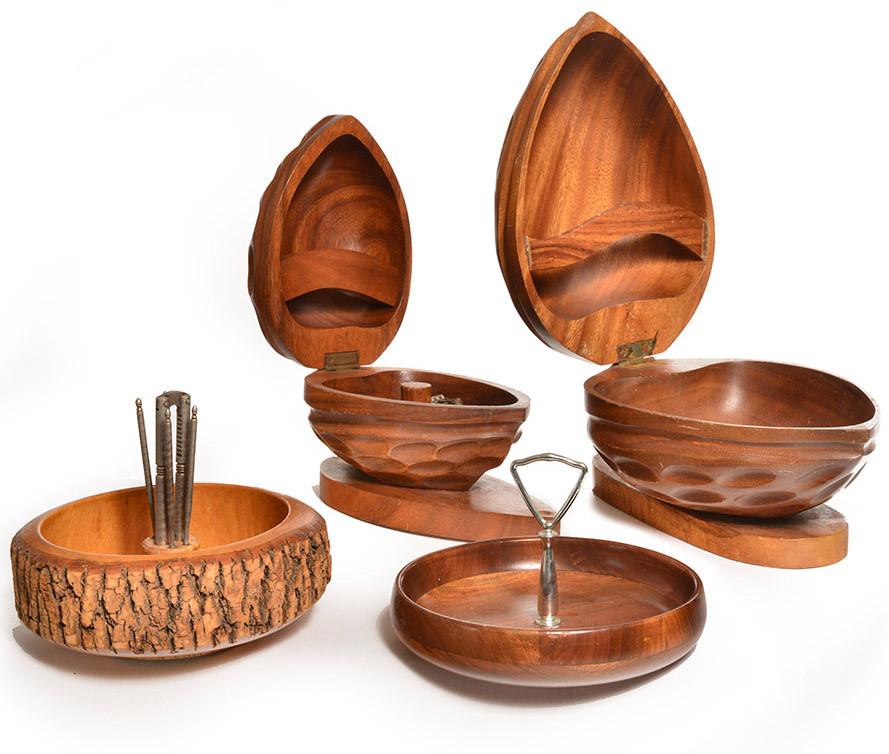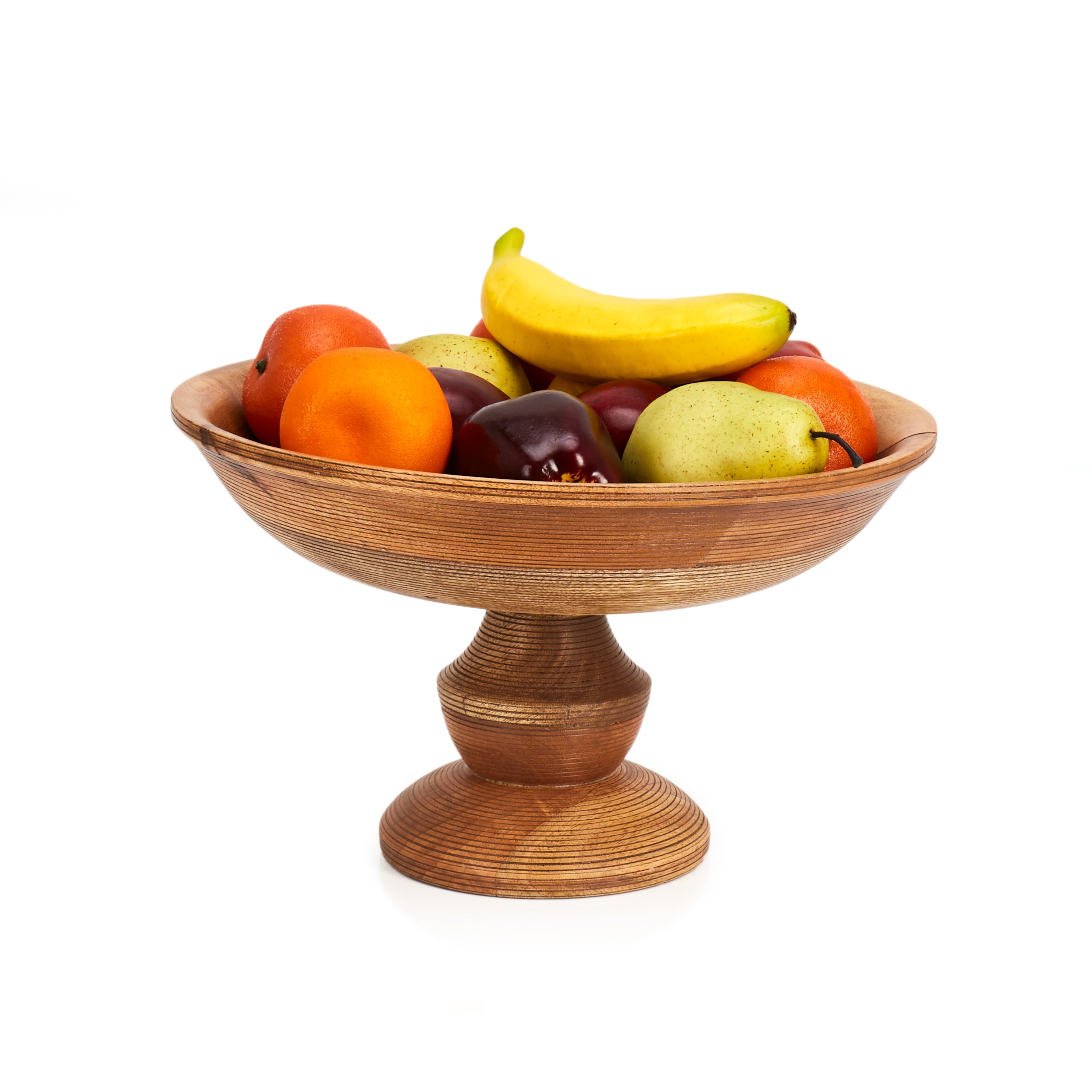 Details: Light wood fruit bowl on standing base. Dimensions: 9" H x 14" W x 14" D Quantity: 1