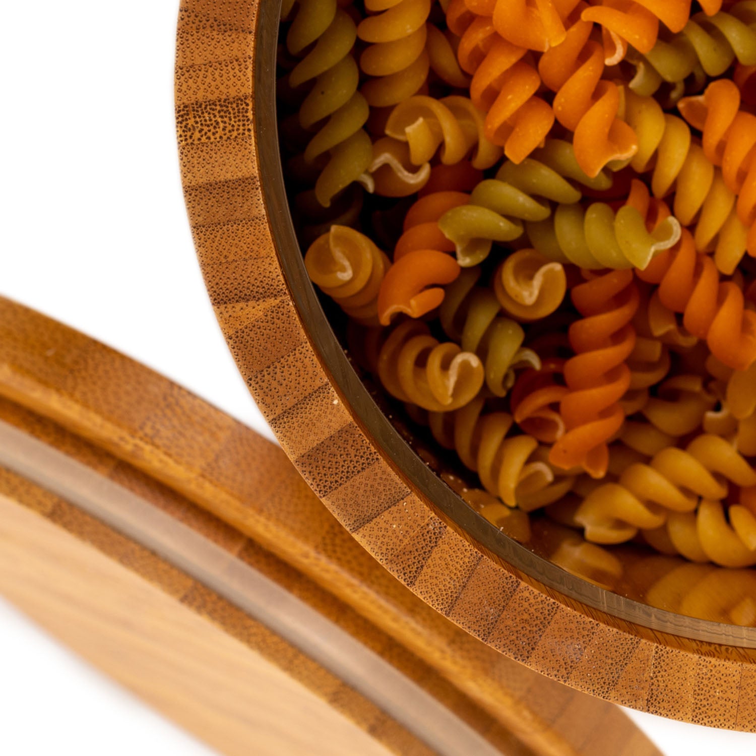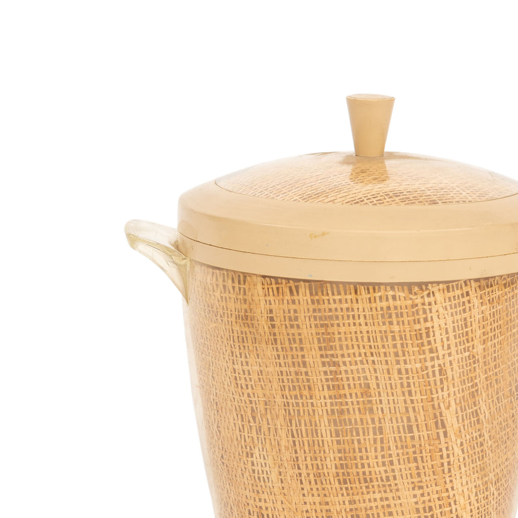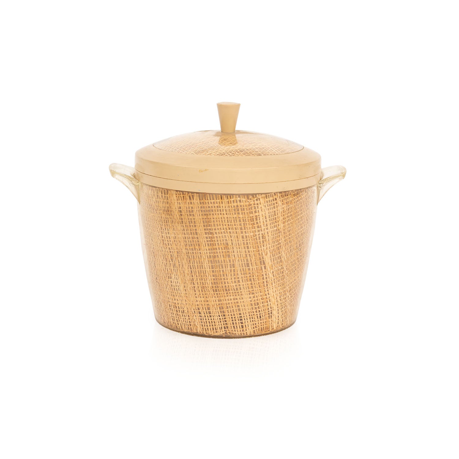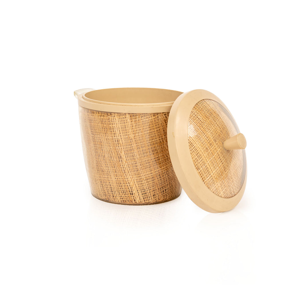 Details: Plastic kitchen container with woven wood detailing and tan handle Dimensions: 7 " H x 10" W x 8" D Quantity: 1