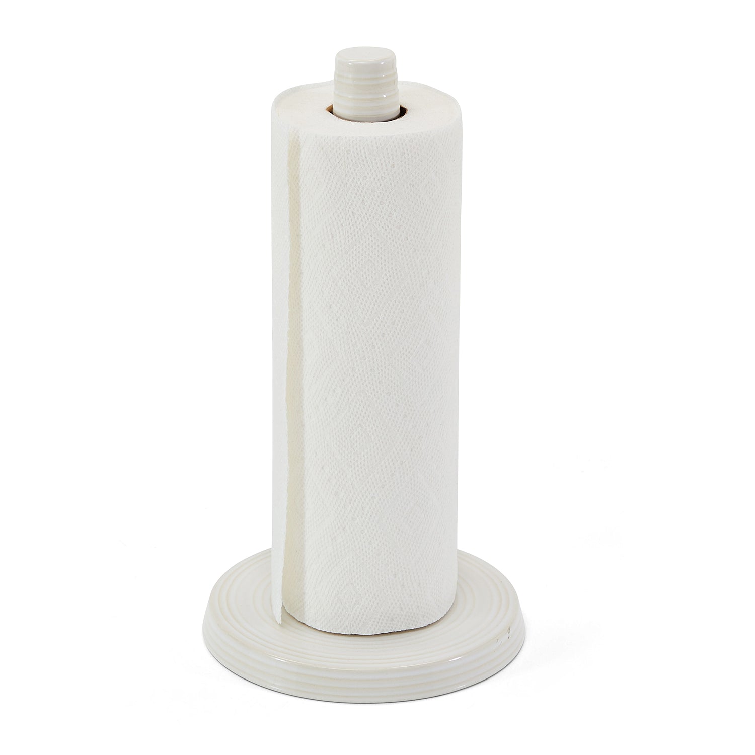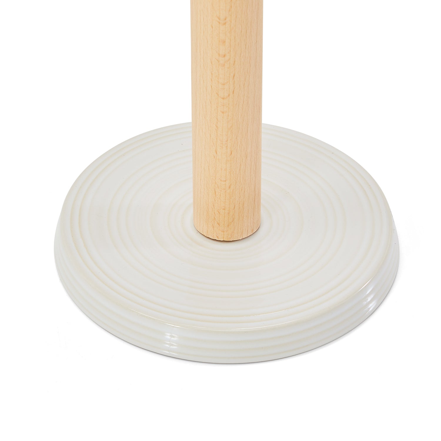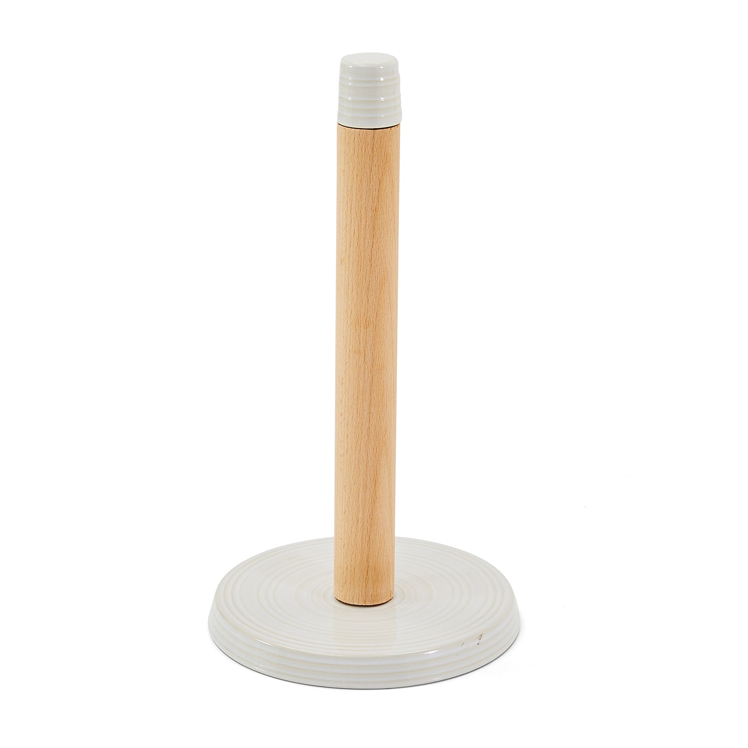 Details: White ceramic paper towel holder with light wood bodyDimensions: 8" H x 18.5" W x 11.5" D Quantity: 1