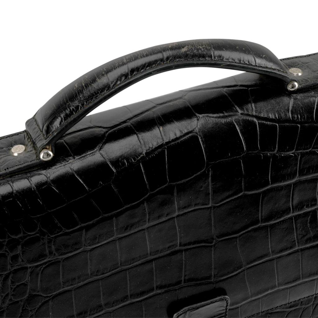 Details: Larger of 2 alligator leather suitcase and gold trim Dimensions: 11" H x 15" W x 6" D