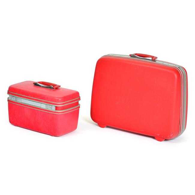 Details: White leather Starline medium suitcase with cream handle and gold clasps, part of a luggage set Dimensions: 9" H x 26 " W x 16" D Quantity: 2...