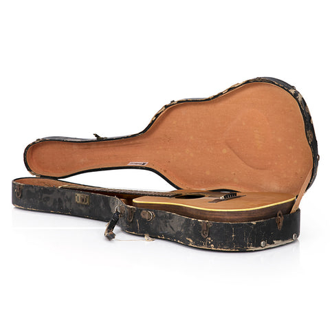Details: Worn black guitar case with tan Interior and classic acoustic guitarDimensions: 41" H x 15" W x 5" D