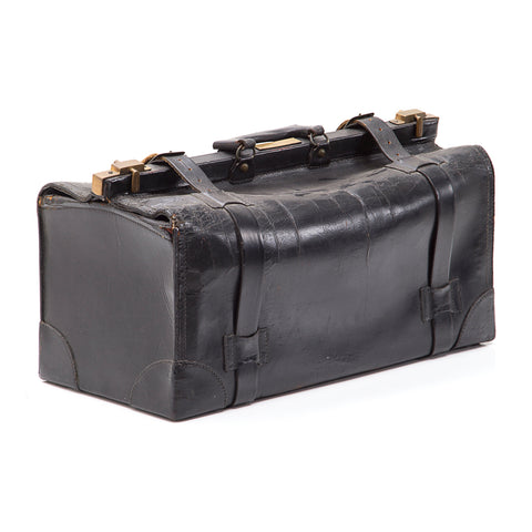 Details: Black Leather, Carrying Case, Doctors Bag, Brass ClaspsDimensions: 13" H X 25" W X 11" D