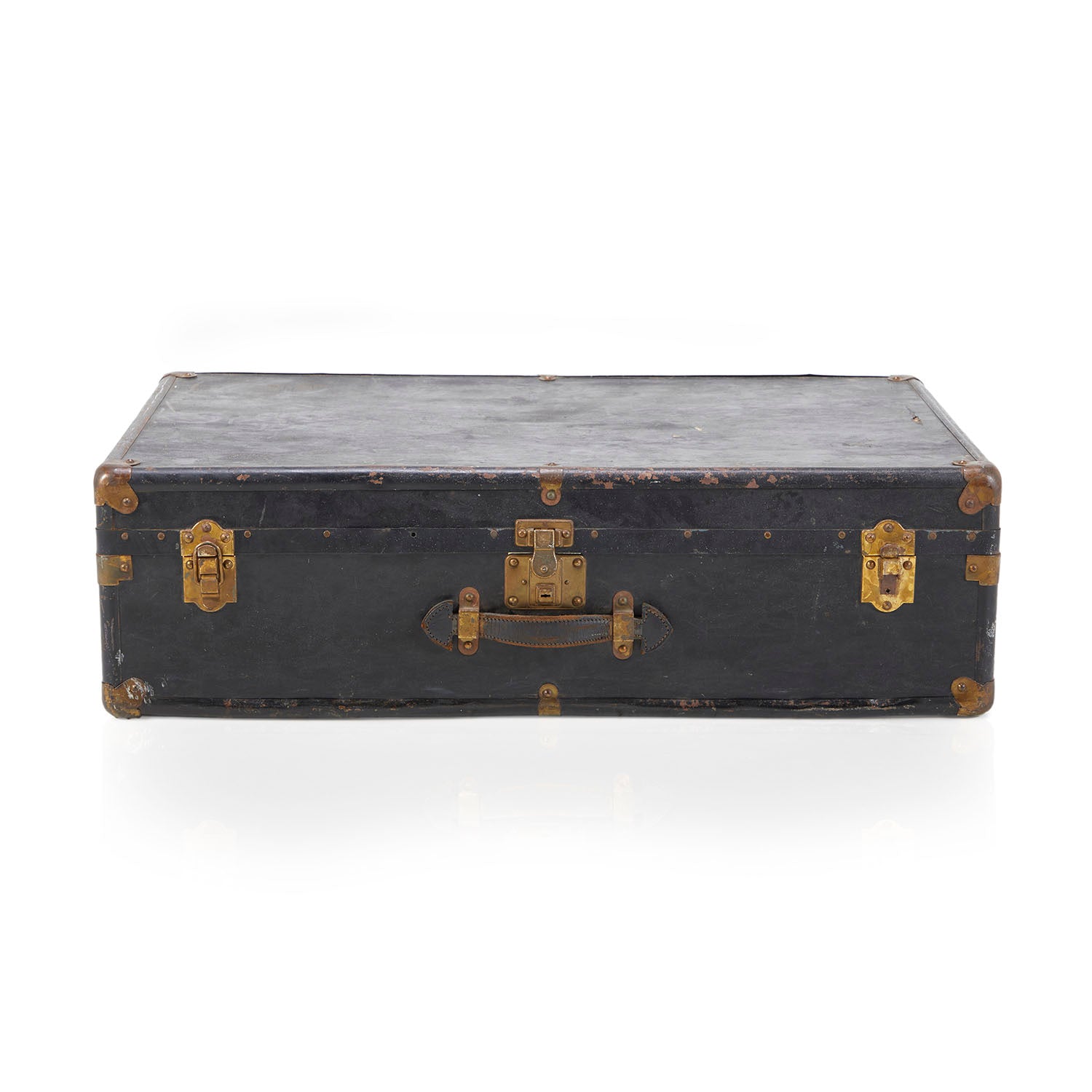 Details: Box, Luggage, Shiny, Black, Rusty Brass Clasp, Rounded TopDimensions: 10" H X 10" W X 9" D