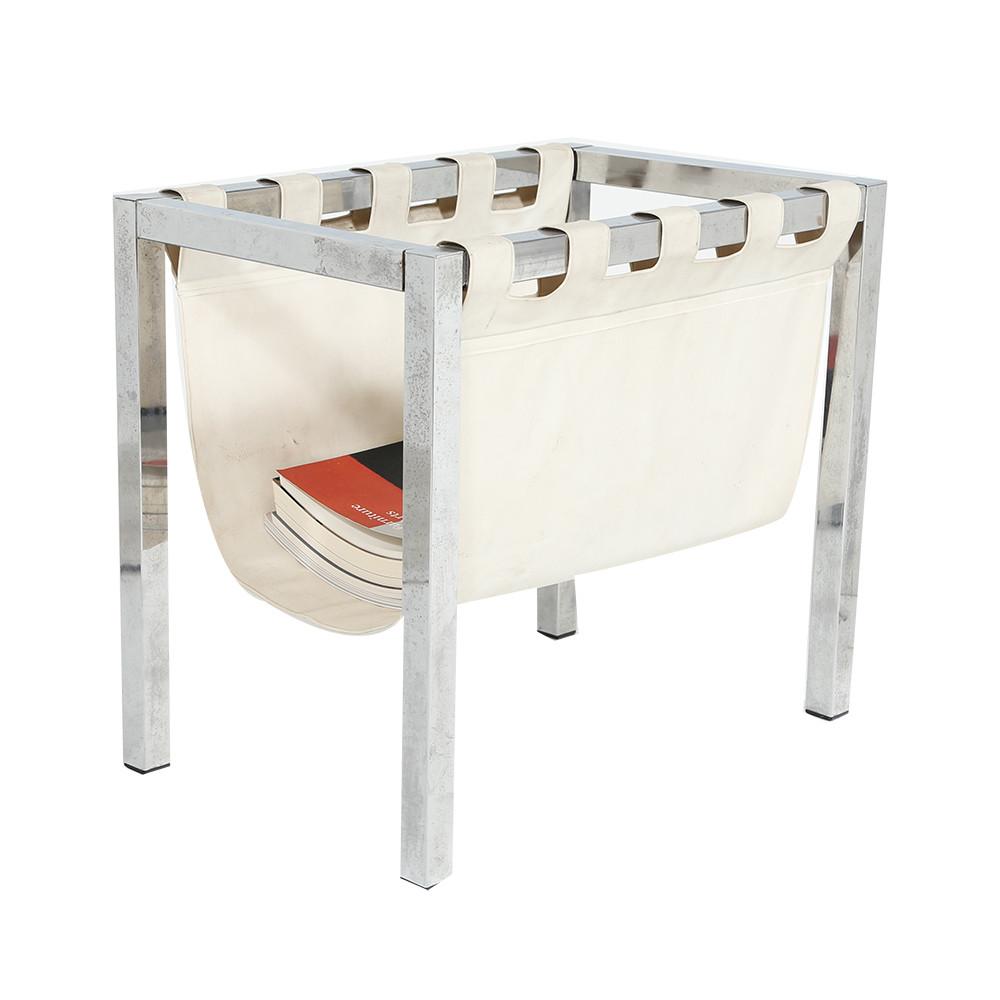 Details: White canvas and chrome rectangular magazine holderDimensions: 17" H X 18" W X 12" D