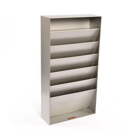 Details: narrow magazine holder with many slots Dimensions: N/A
