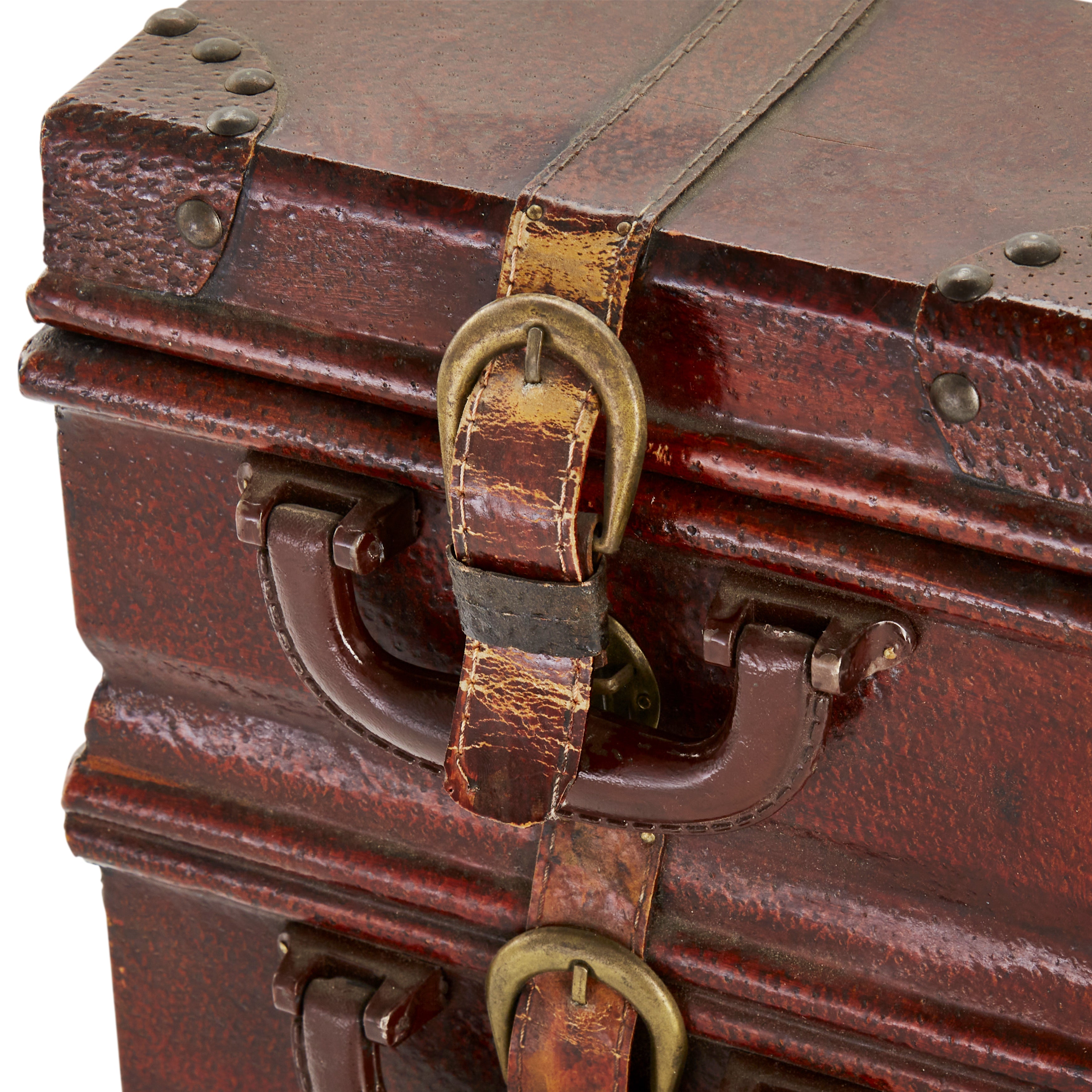 Details: Wood storage box wrapped in red leather Dimensions: 3" H x 10" W x 4" D