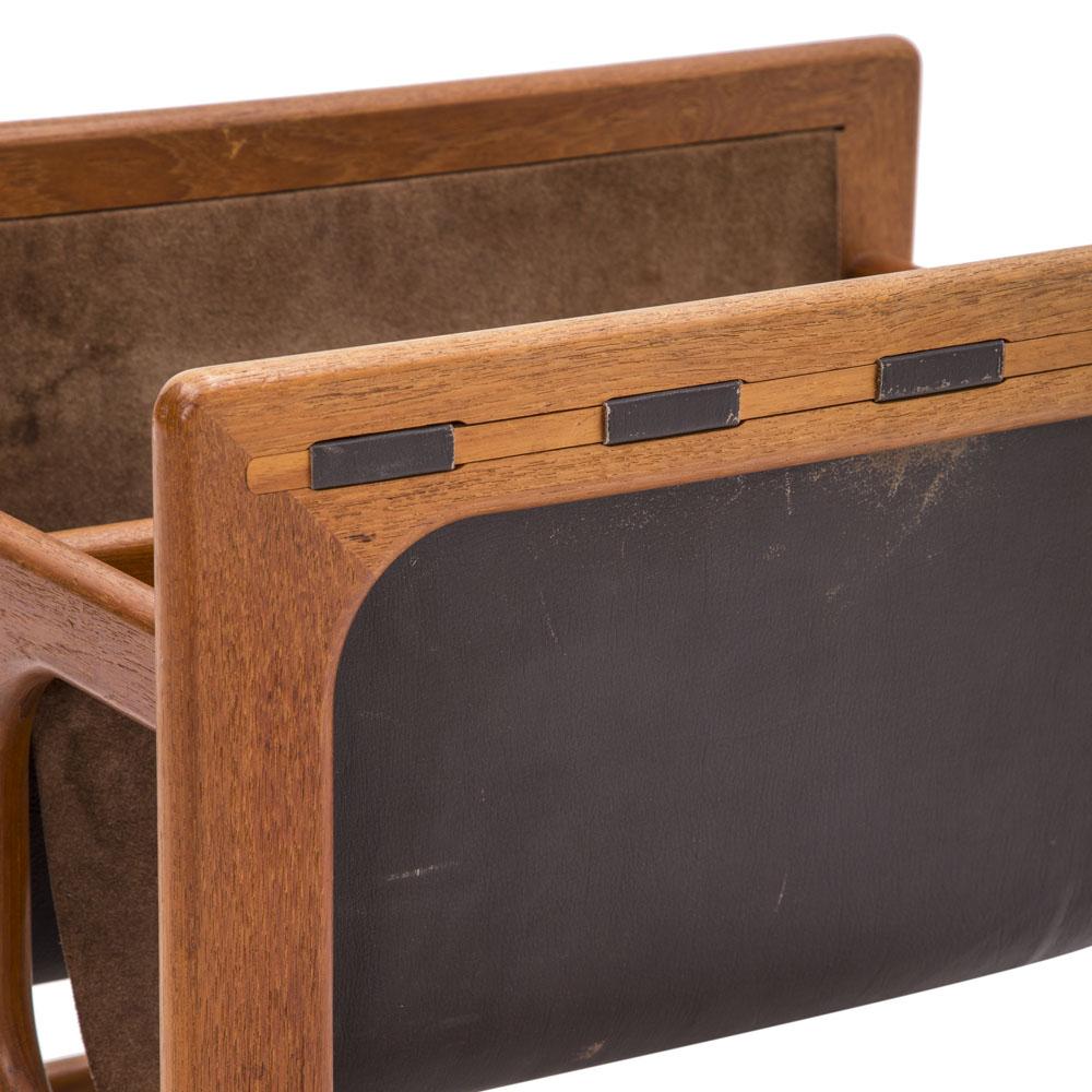 Details: Dark wood and brown leather Dimensions: 16" H X 20" W X 14" D