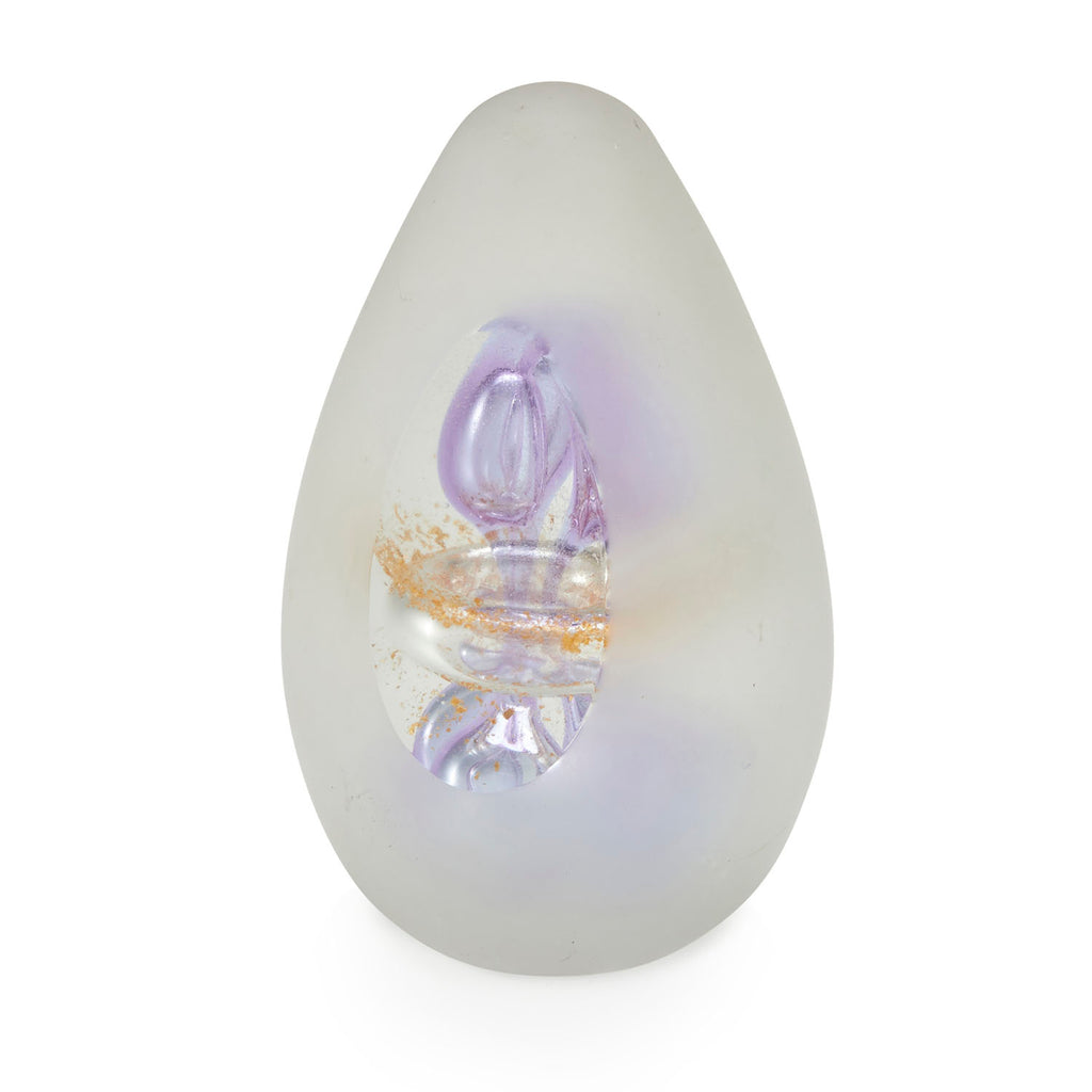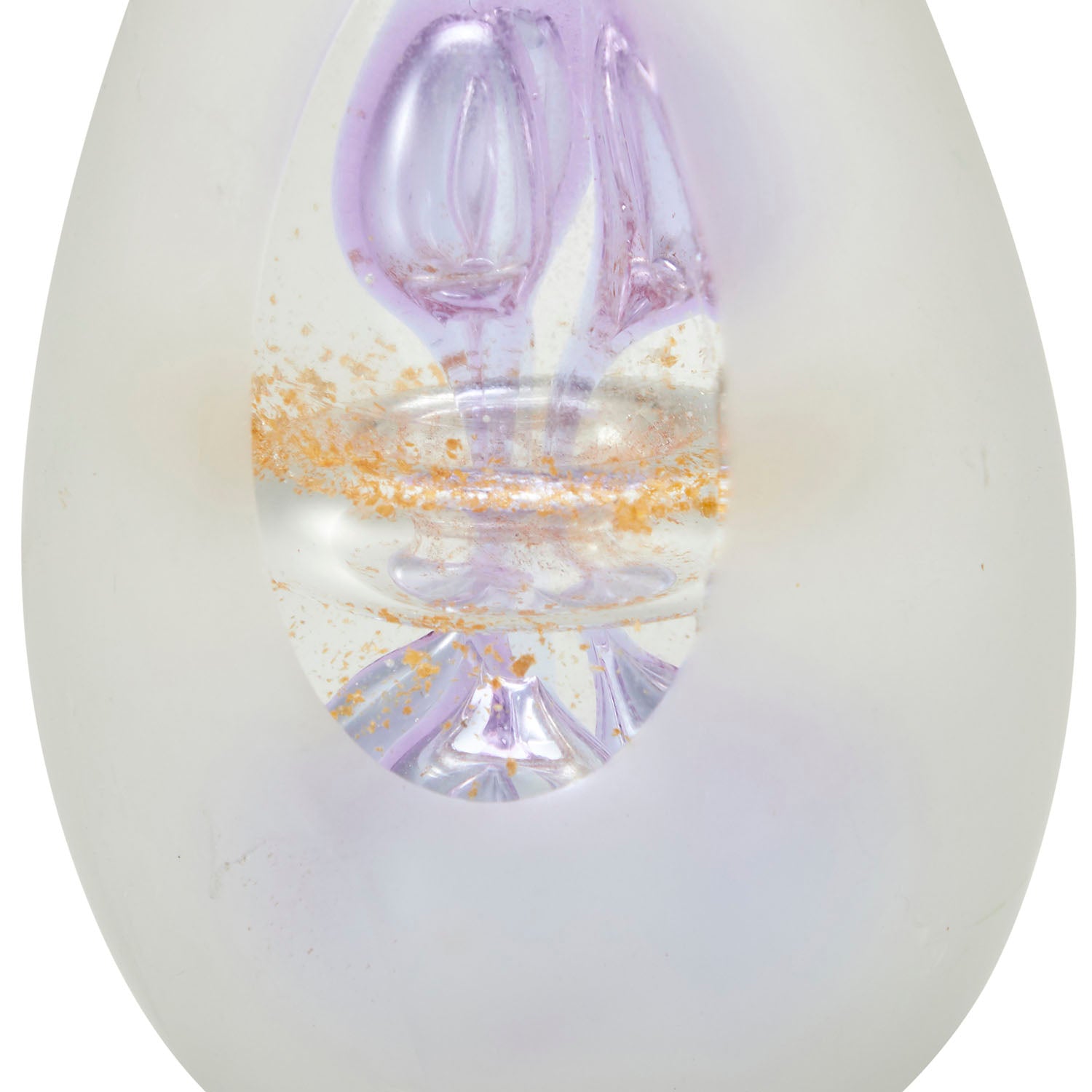 Details: Partially opaque glass egg paperweight with internal purple and yellow detail. Dimensions: Quantity: 1