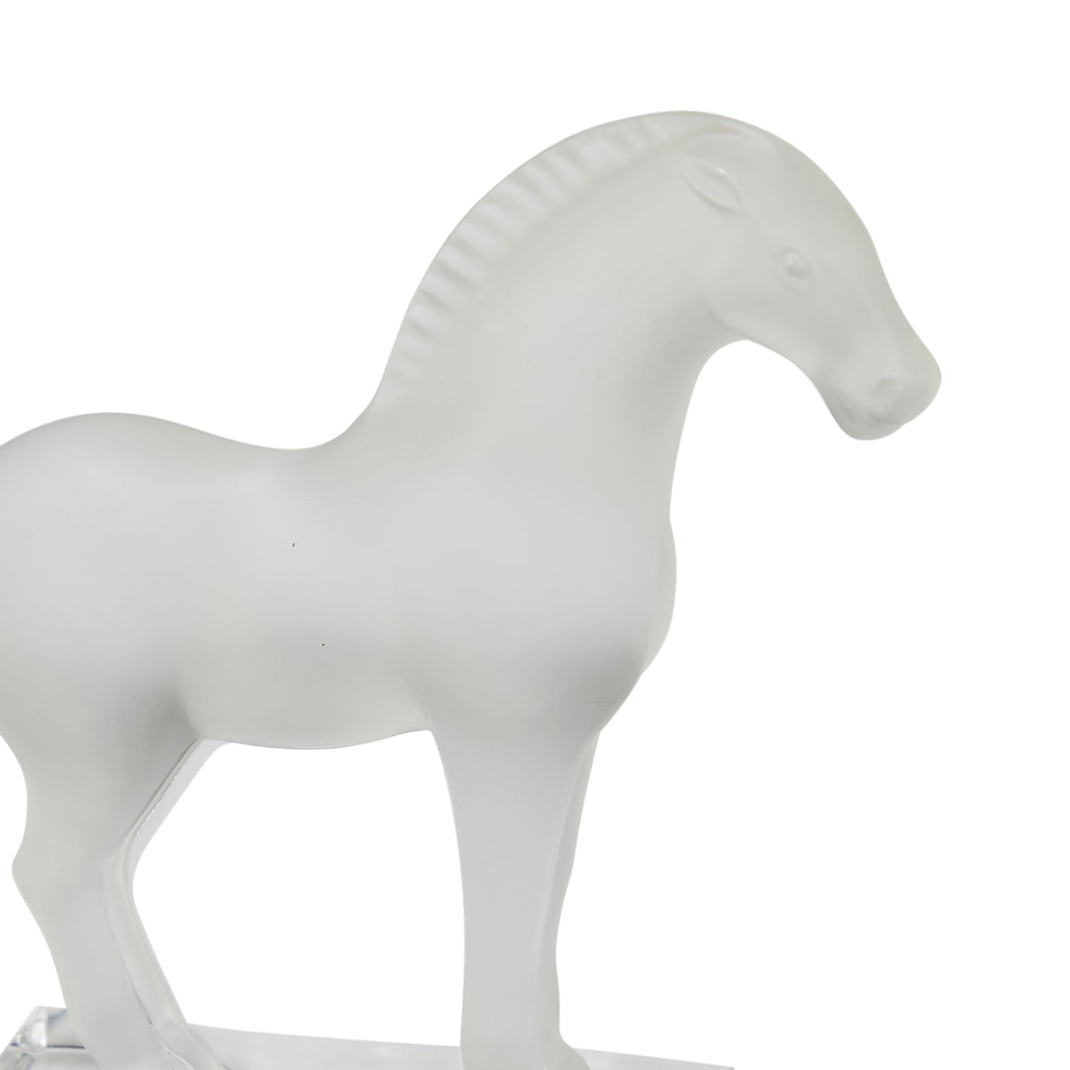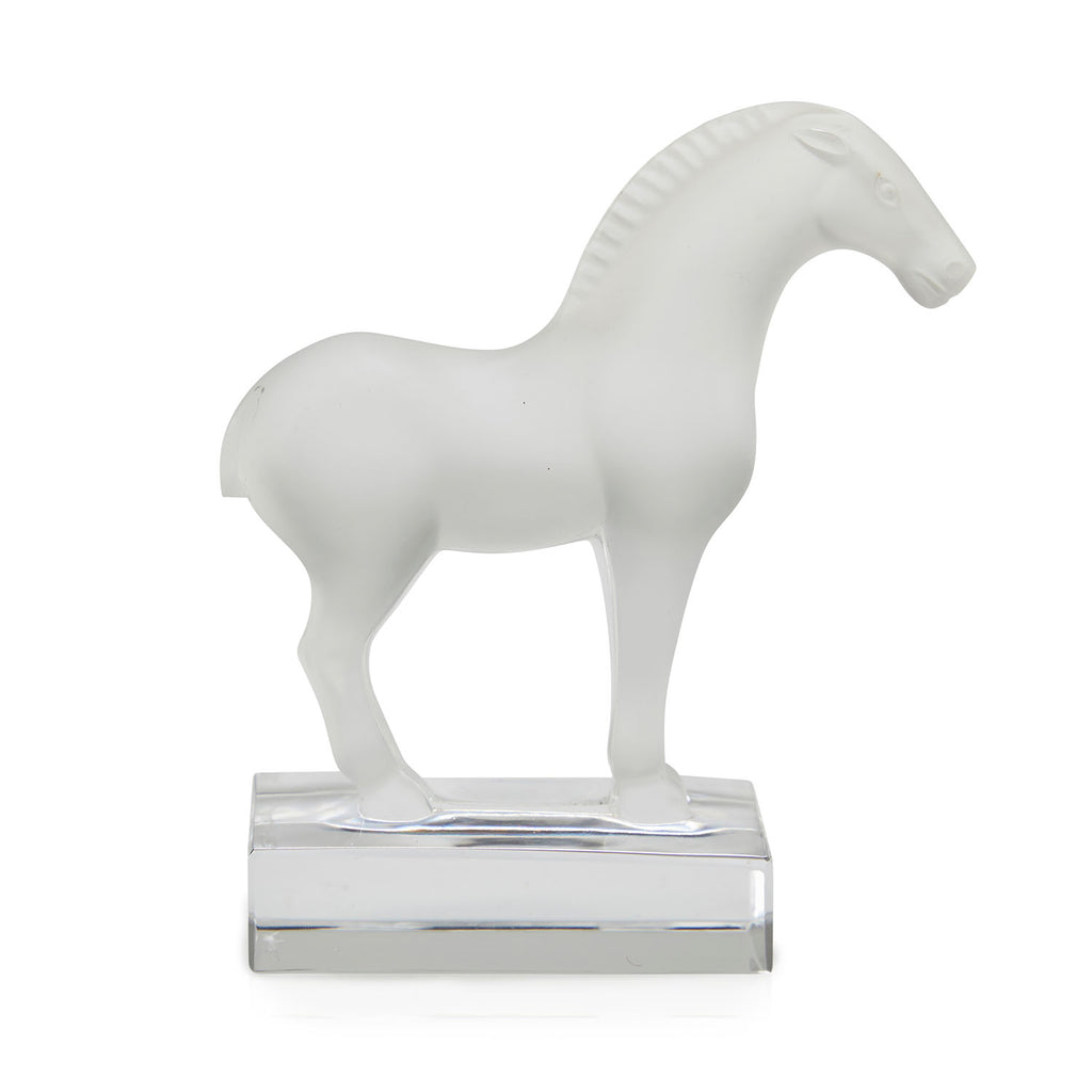 Details: Opaque glass horse figurine paperweight with clear rectangular base Dimensions: 4" H x 2.5" W x 1" D Quantity: 1