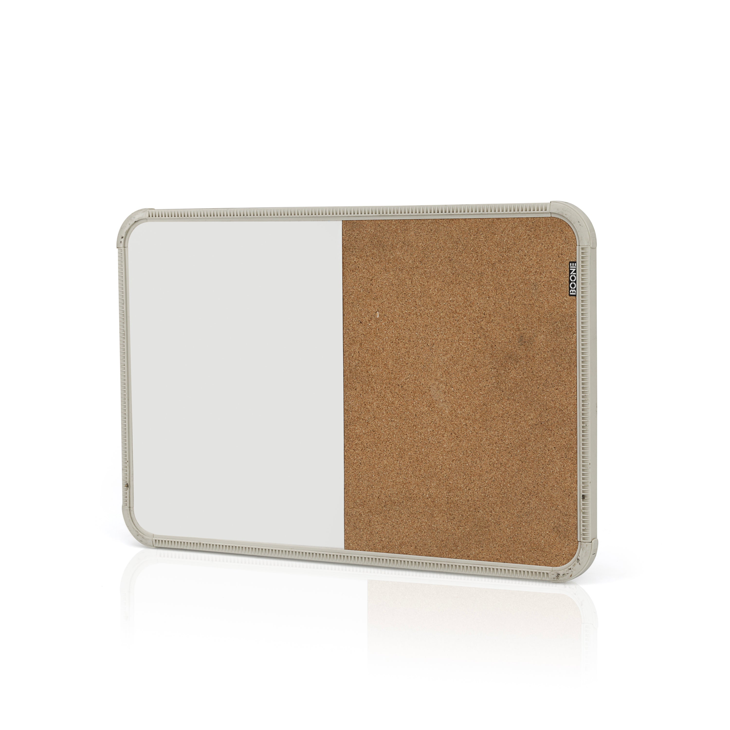 Small mountable board with cork on one side and dry erase whiteboard on the other. Dimensions: 11" H x 17" W x .5" D