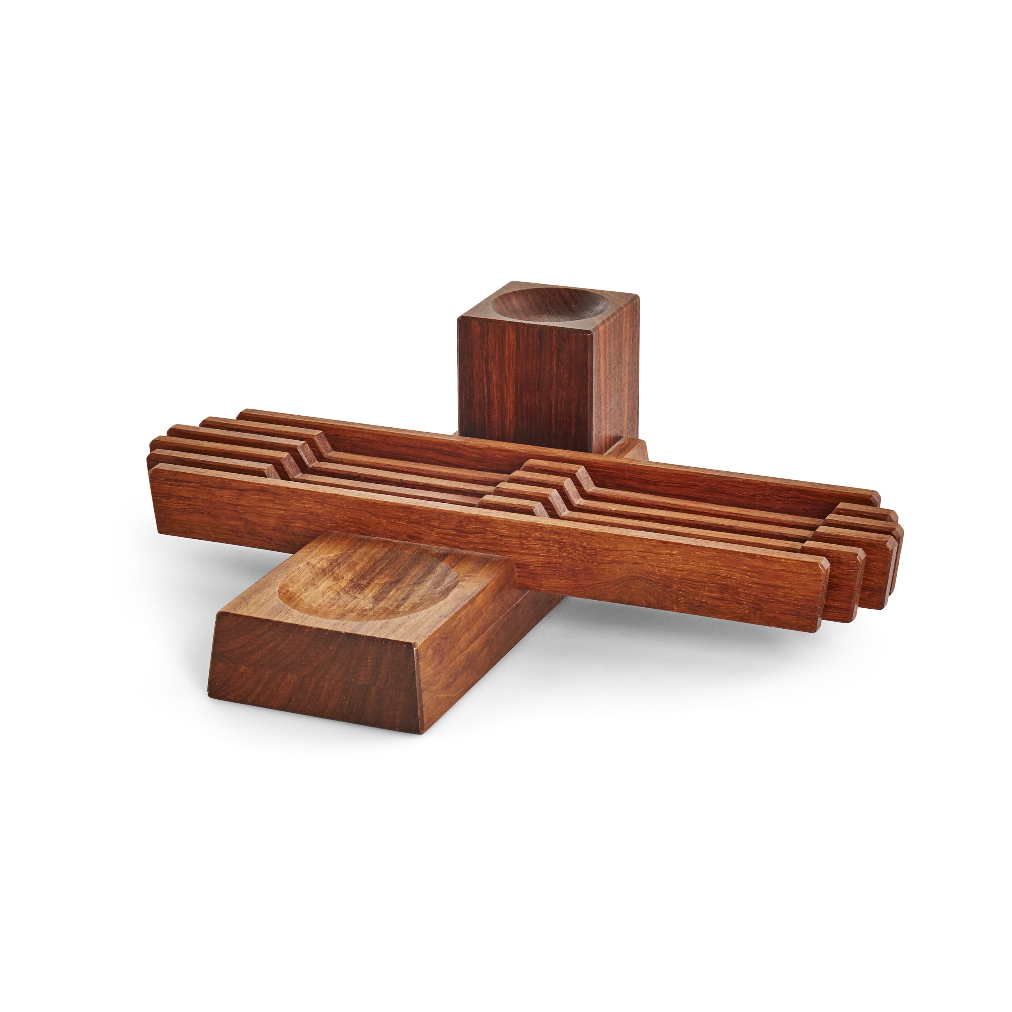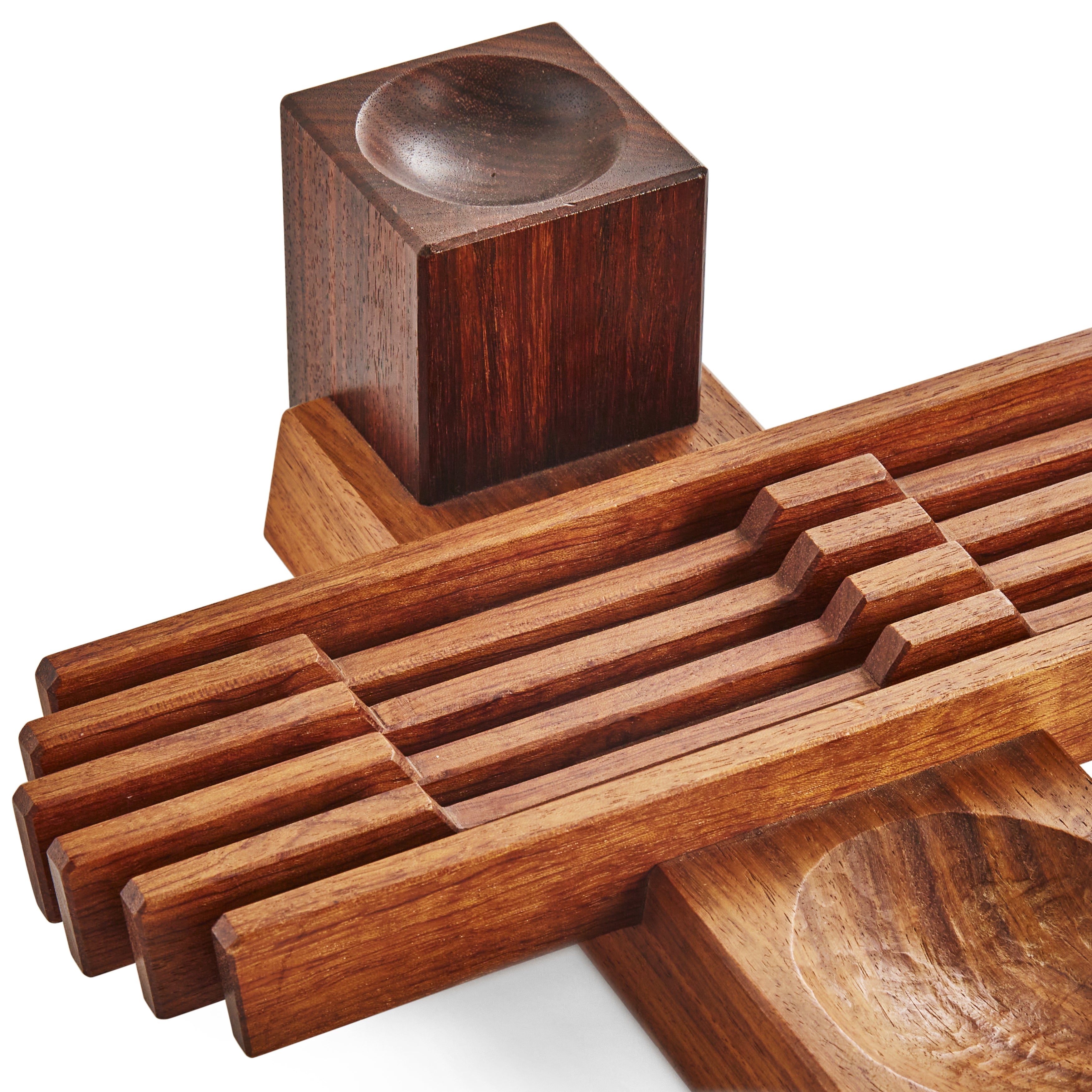 Details: Carved wood pen holder. Small chips visible - rented as is. Dimensions: 3.5" H x 3.5" W x 3.5" D