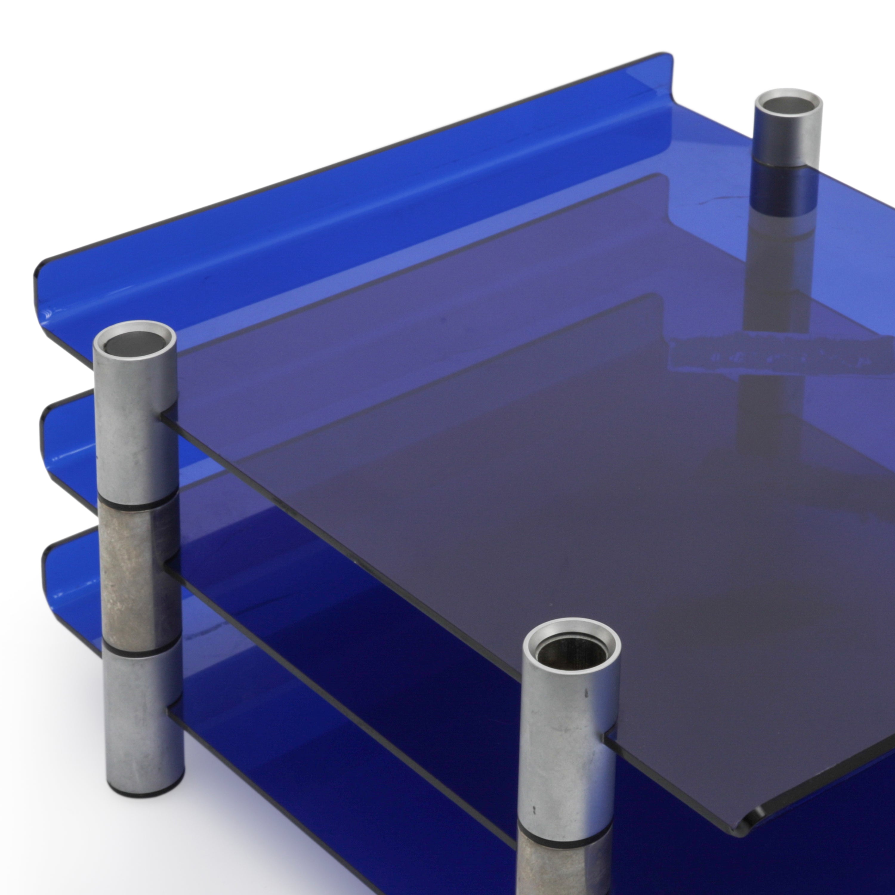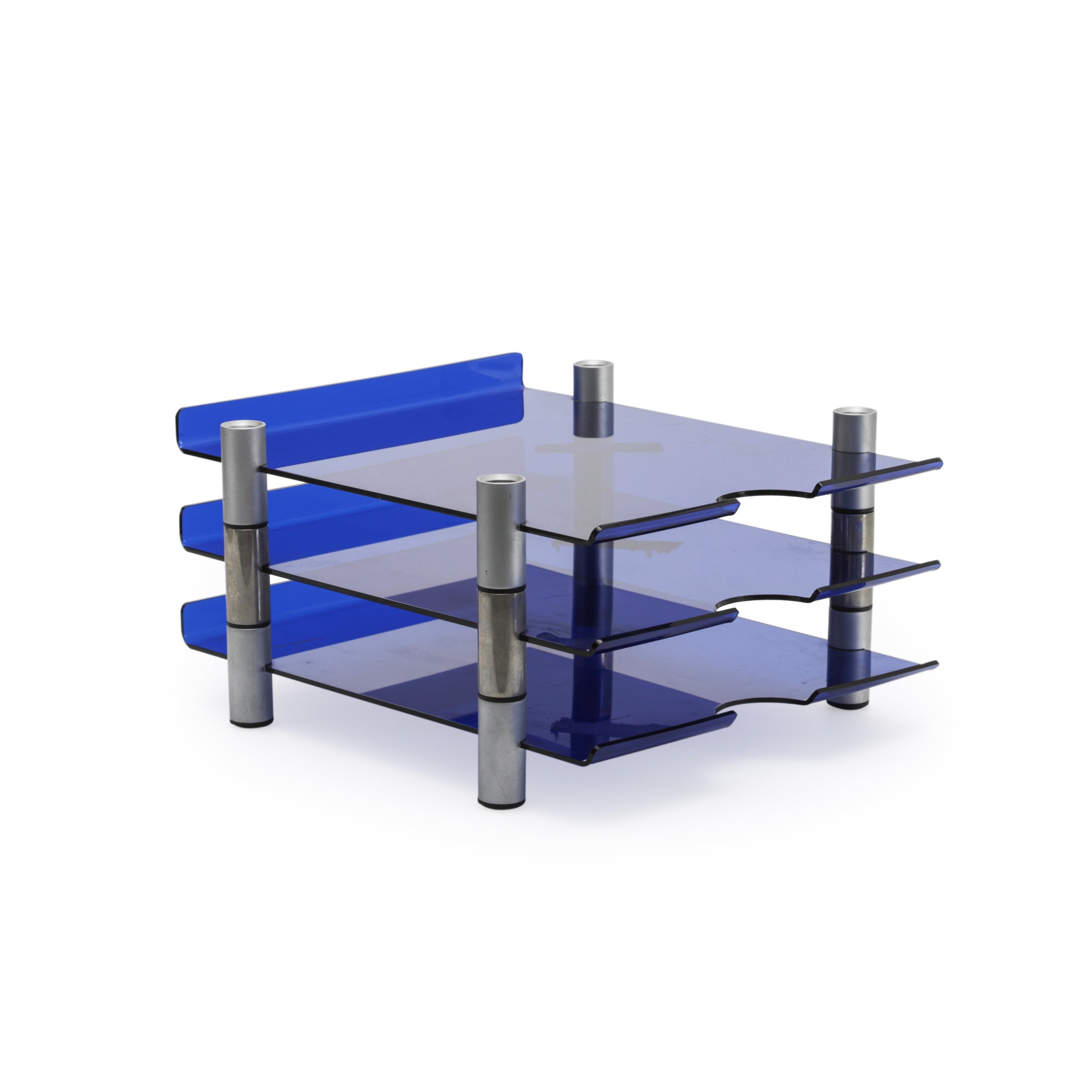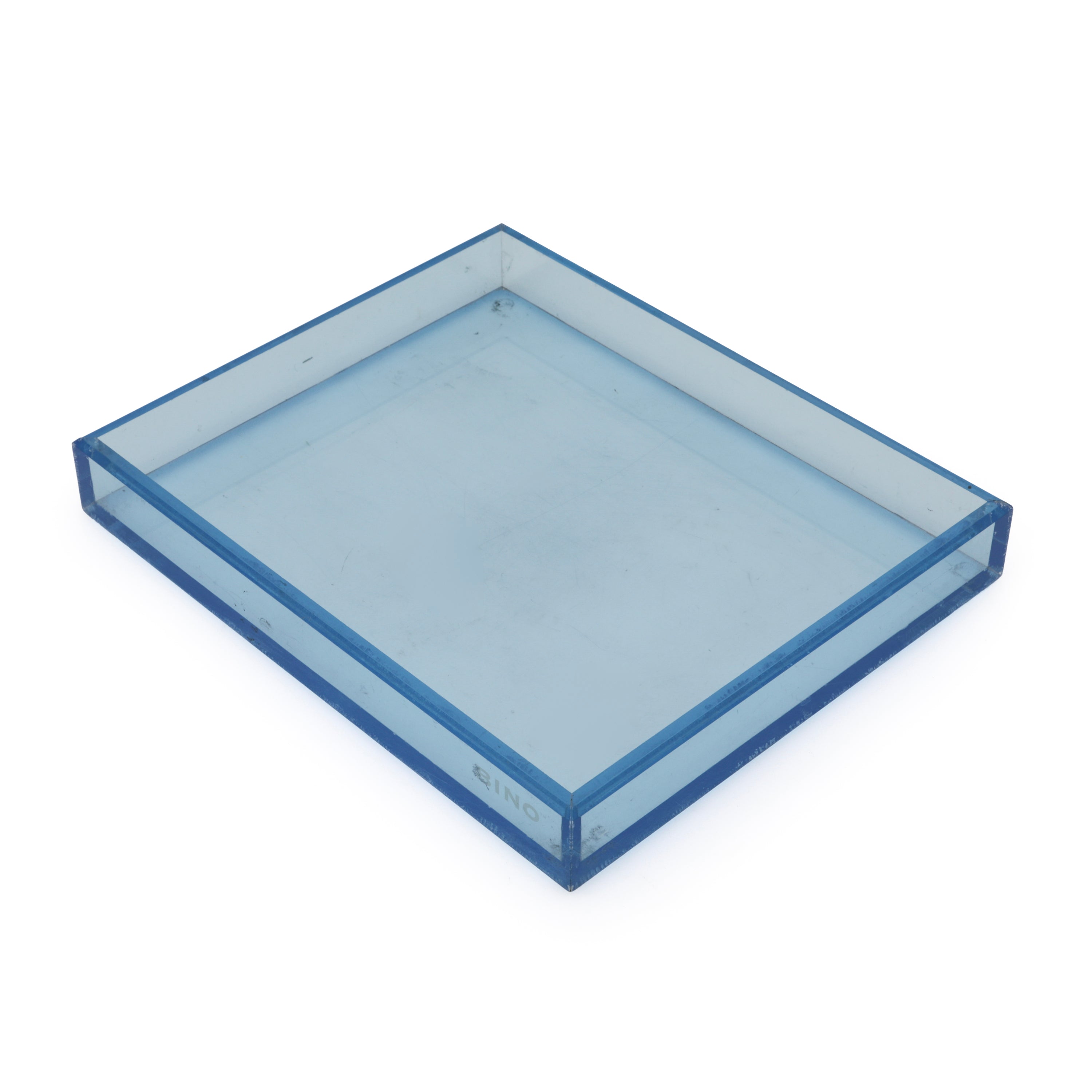 Details: Transparent blue paper tray. Part of a set of 4 (other colors rented separately). Dimensions: 1.5" H x 9.5" W x 11.5" D
