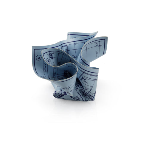 Details: Fake acrylic blueprint paper formed into a crumpled ball. Dimensions: 3.5" H x 5" W