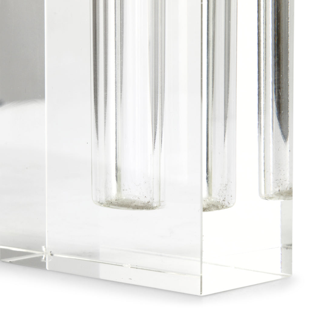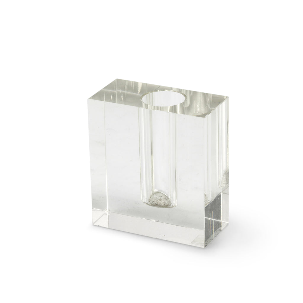Details: Small glass vase, can also be used as a pen holder / paperweight. Dimensions: 4.25" H x 4" W x 2" D