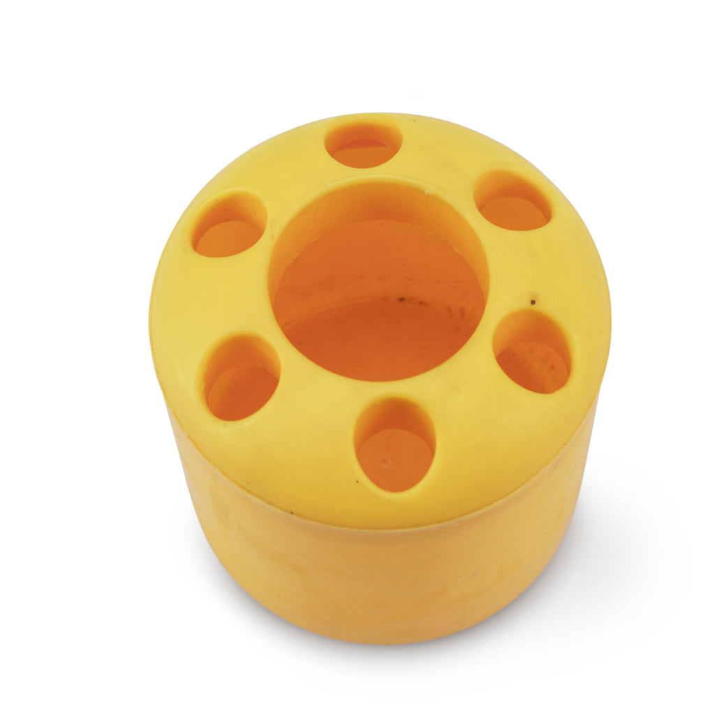 Details: Matte yellow cylinder pen holder. Dimensions: 4" H x 3.5" W x 3.5" D
