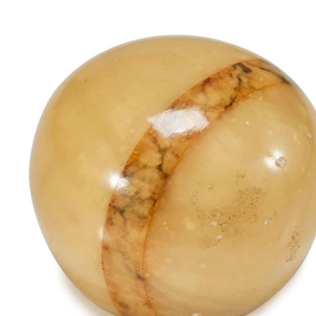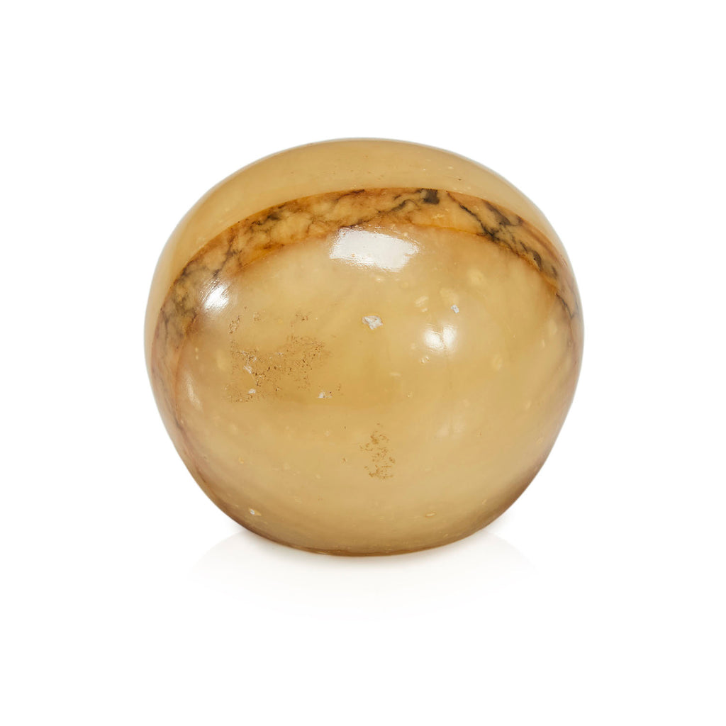 Details: Round yellow granite paperweight with brown stripe Dimensions: 2.5" H x 2.5" W x 2.5" D Quantity: 1