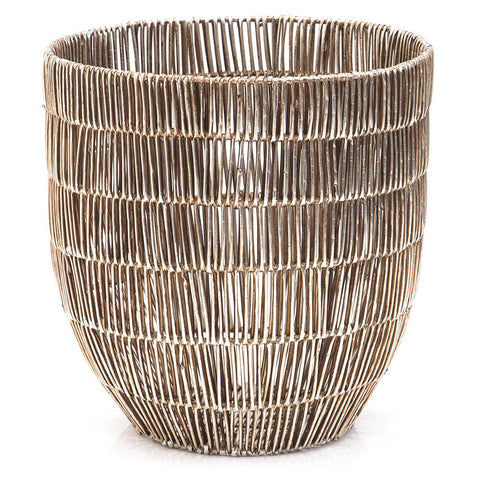 Details: Golden woven basket. Dimensions: 13" H x 13" W x 13" D