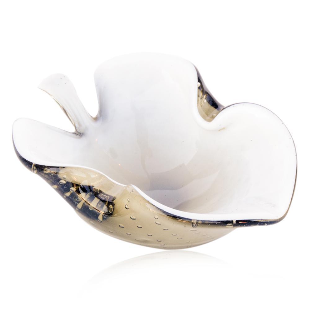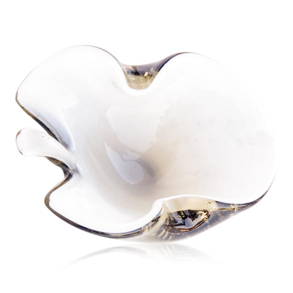 Details: Glossy white tray with yellow and black glass shell Dimensions: 2.5" H x 5.5" W x 8" D