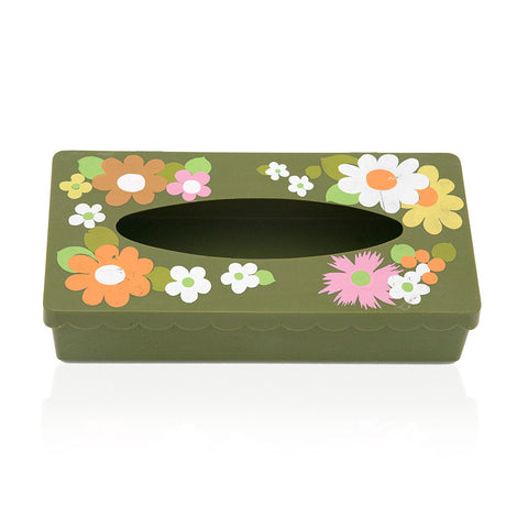 Details: Cut paper artwork flowers on a green tissue holder Dimensions: 2" H x 11" W x 5" D