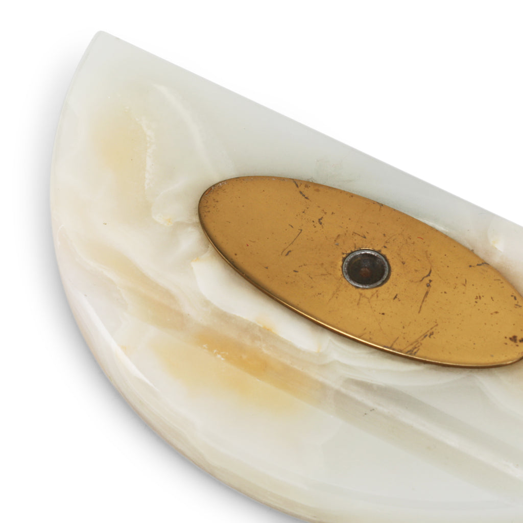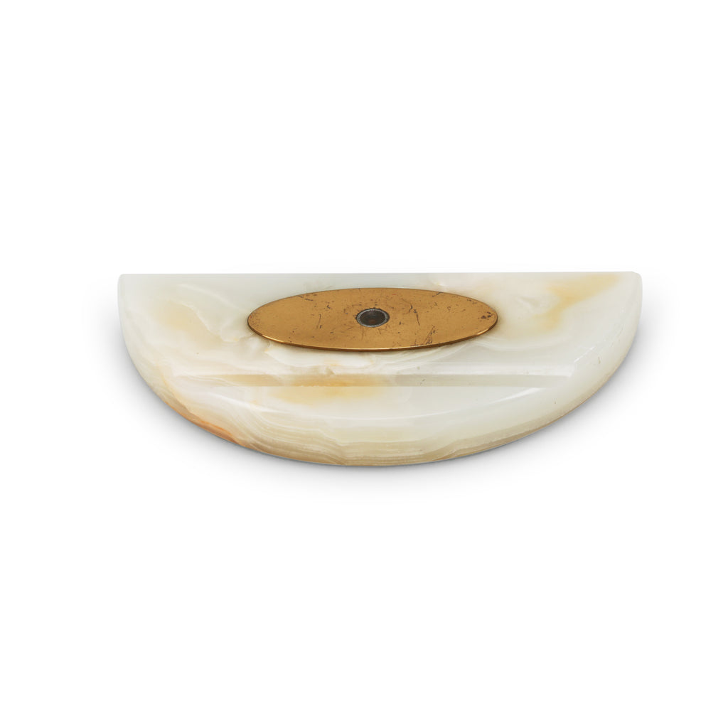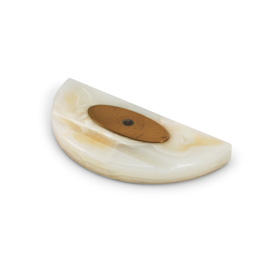 Details: Vintage pen holder with brass plate and smooth opal. Dimensions: 1" H x 7" W x 3.5" D