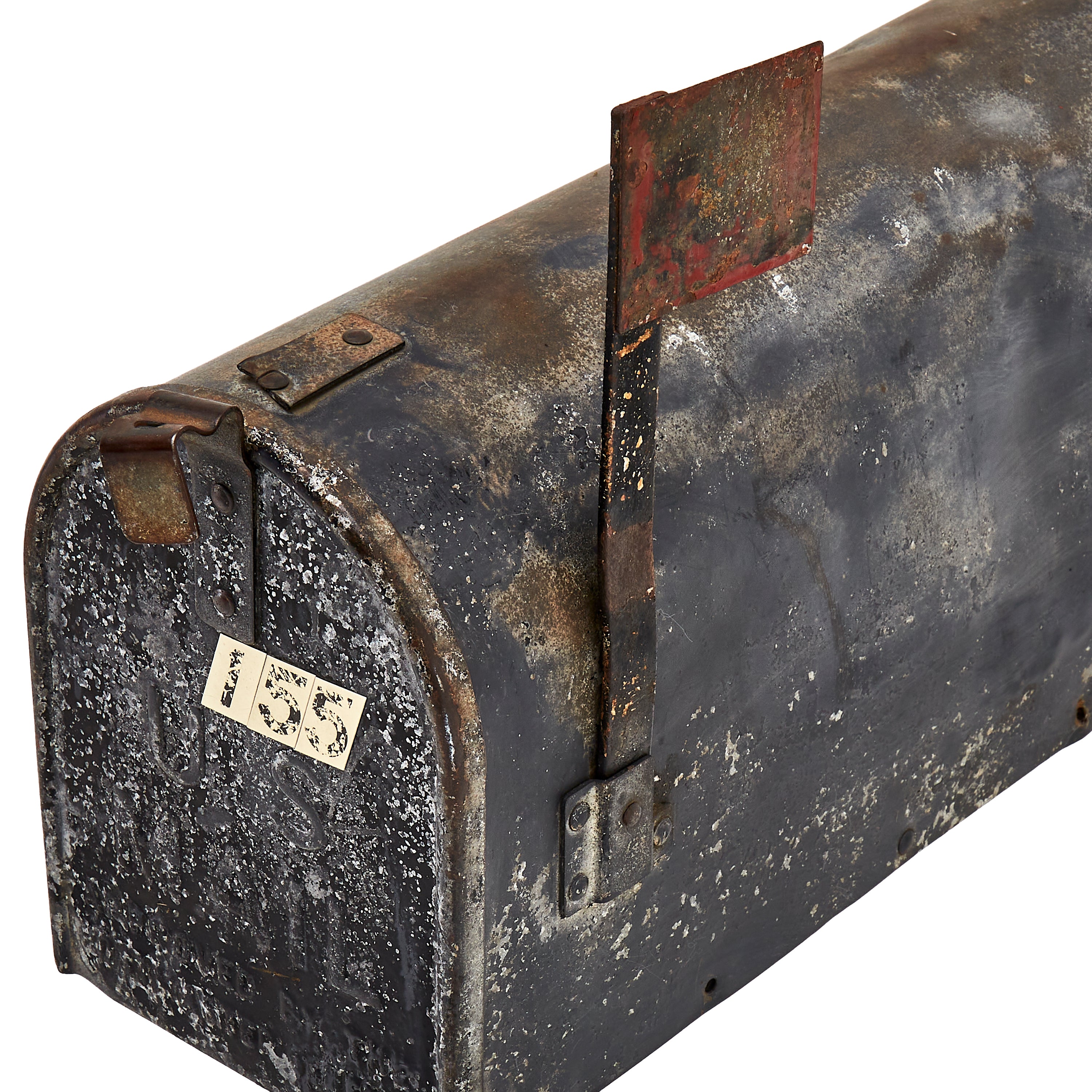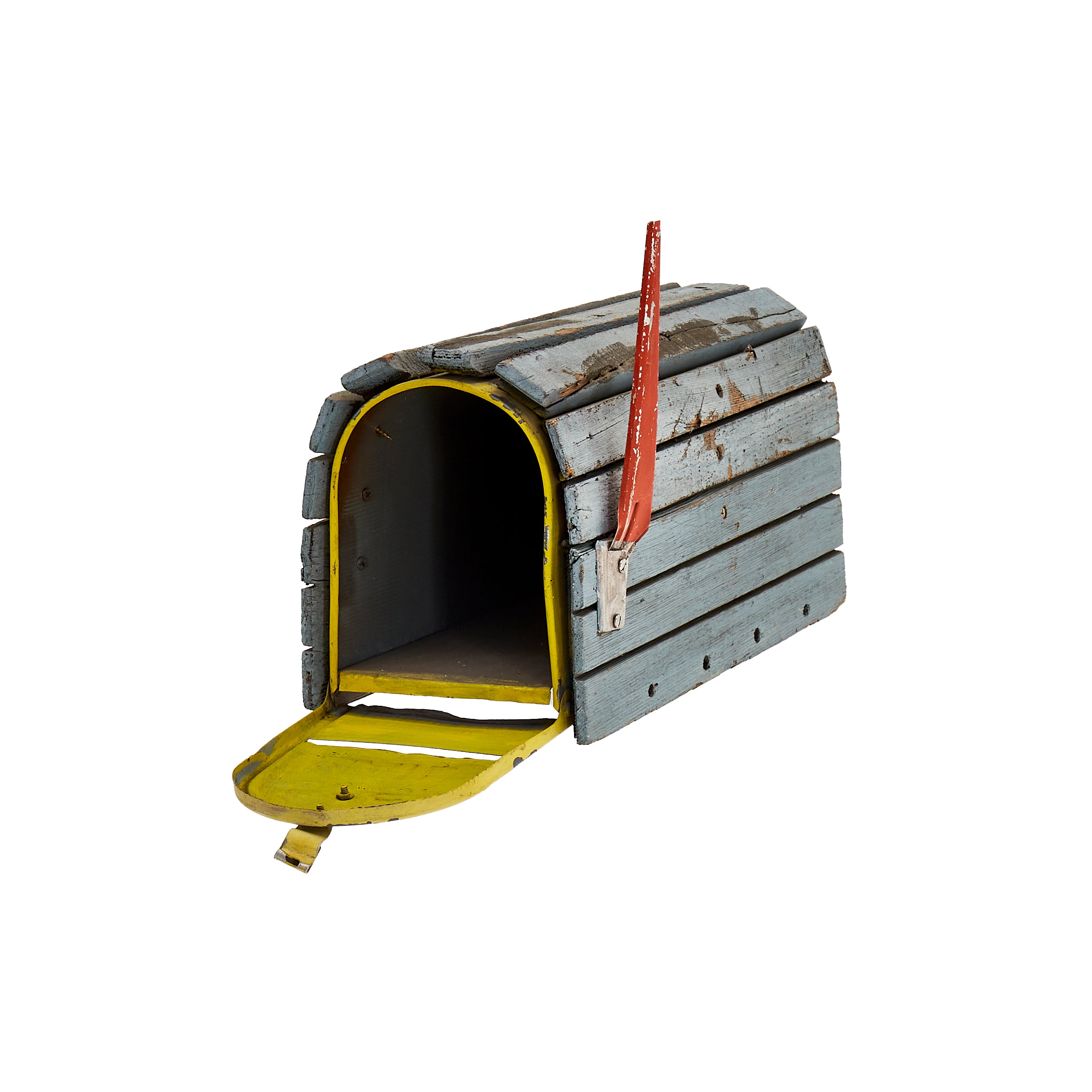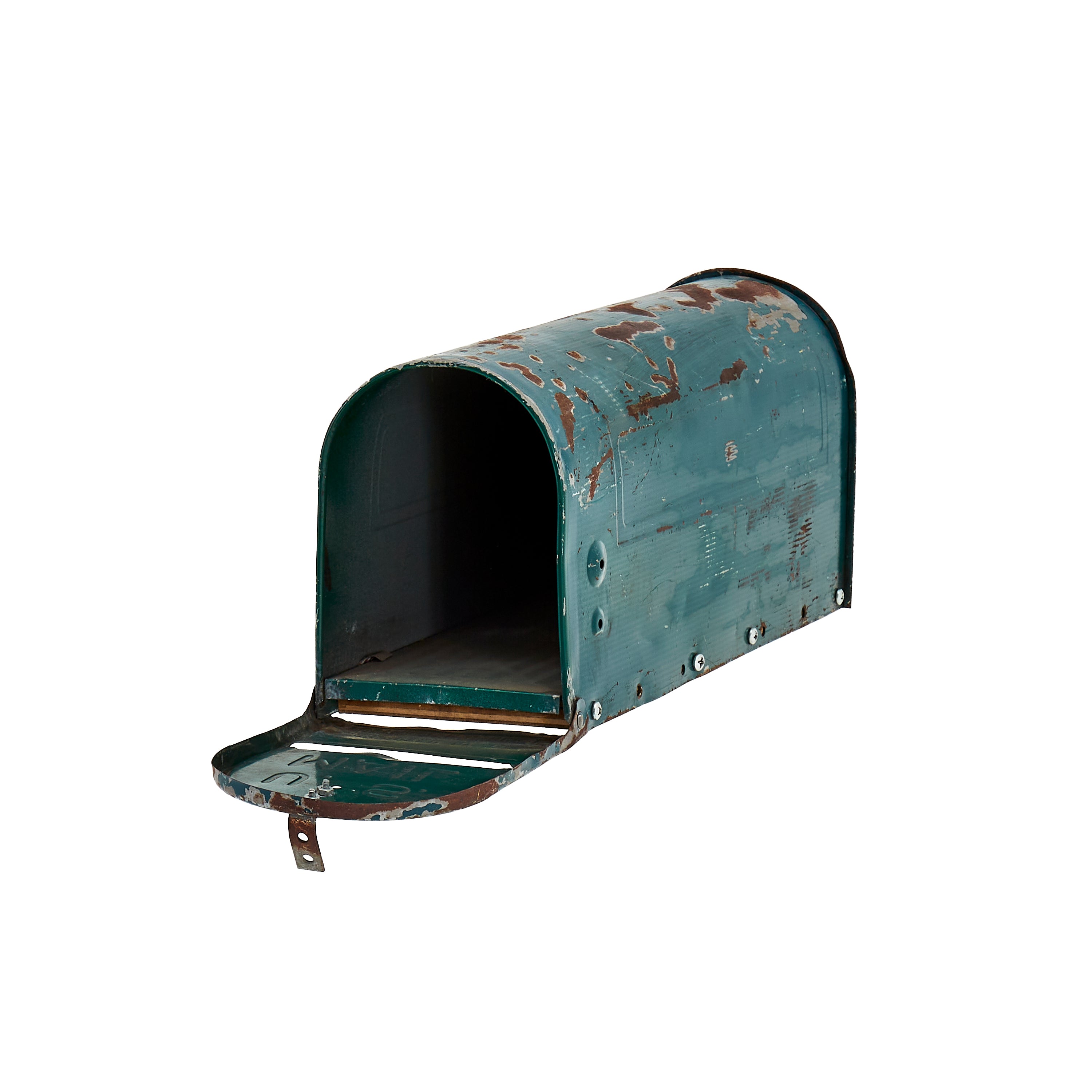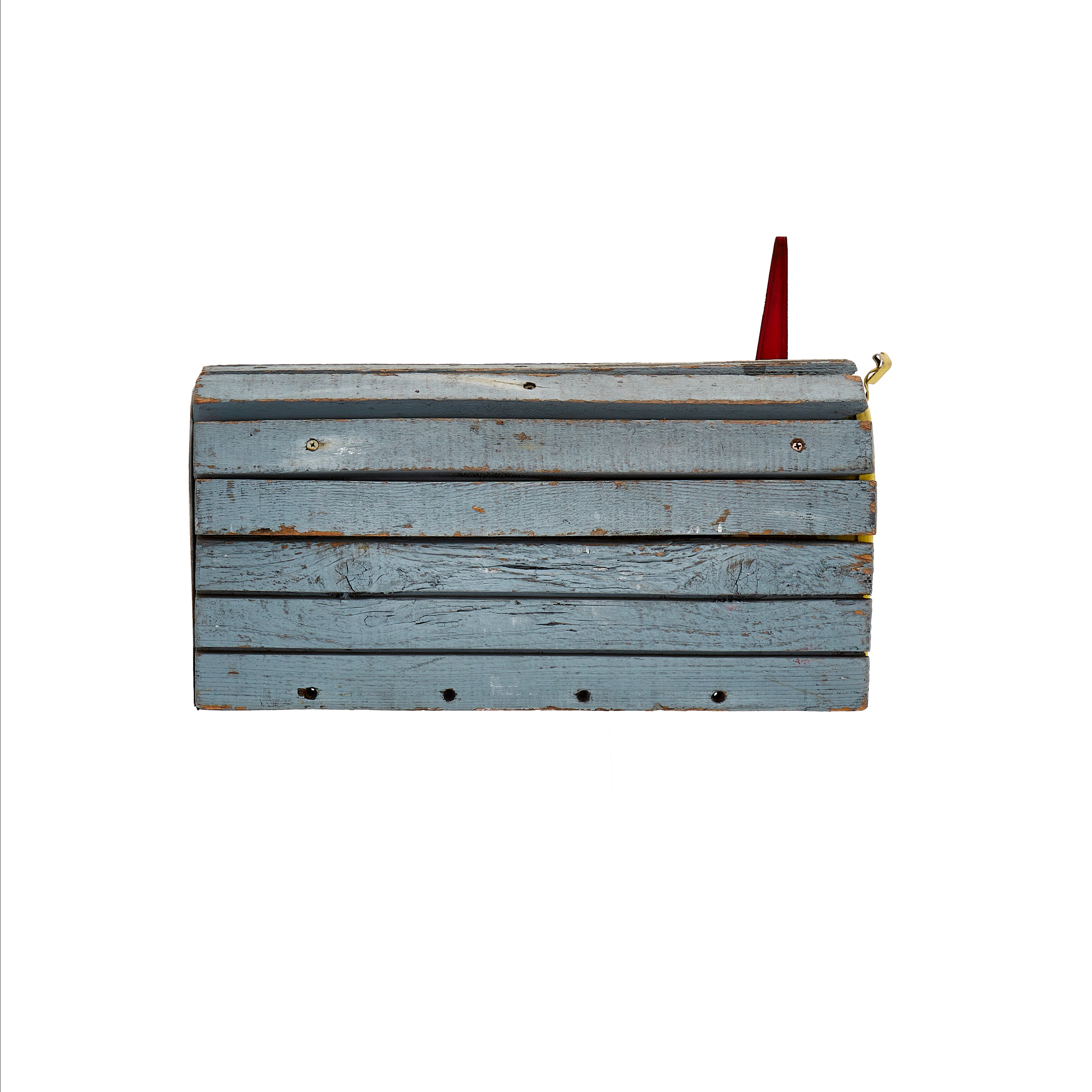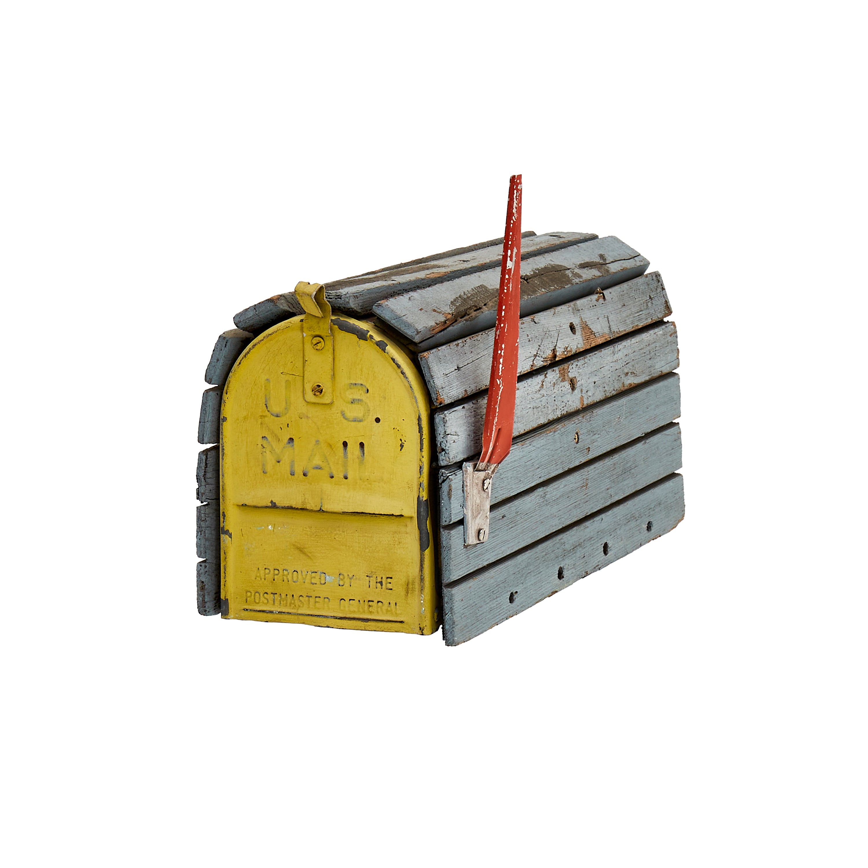 Details: Small blue industrial container made of weathered corrugated metal and with TEX in large white letters down the side Dimensions: 16.5" H x 31"...