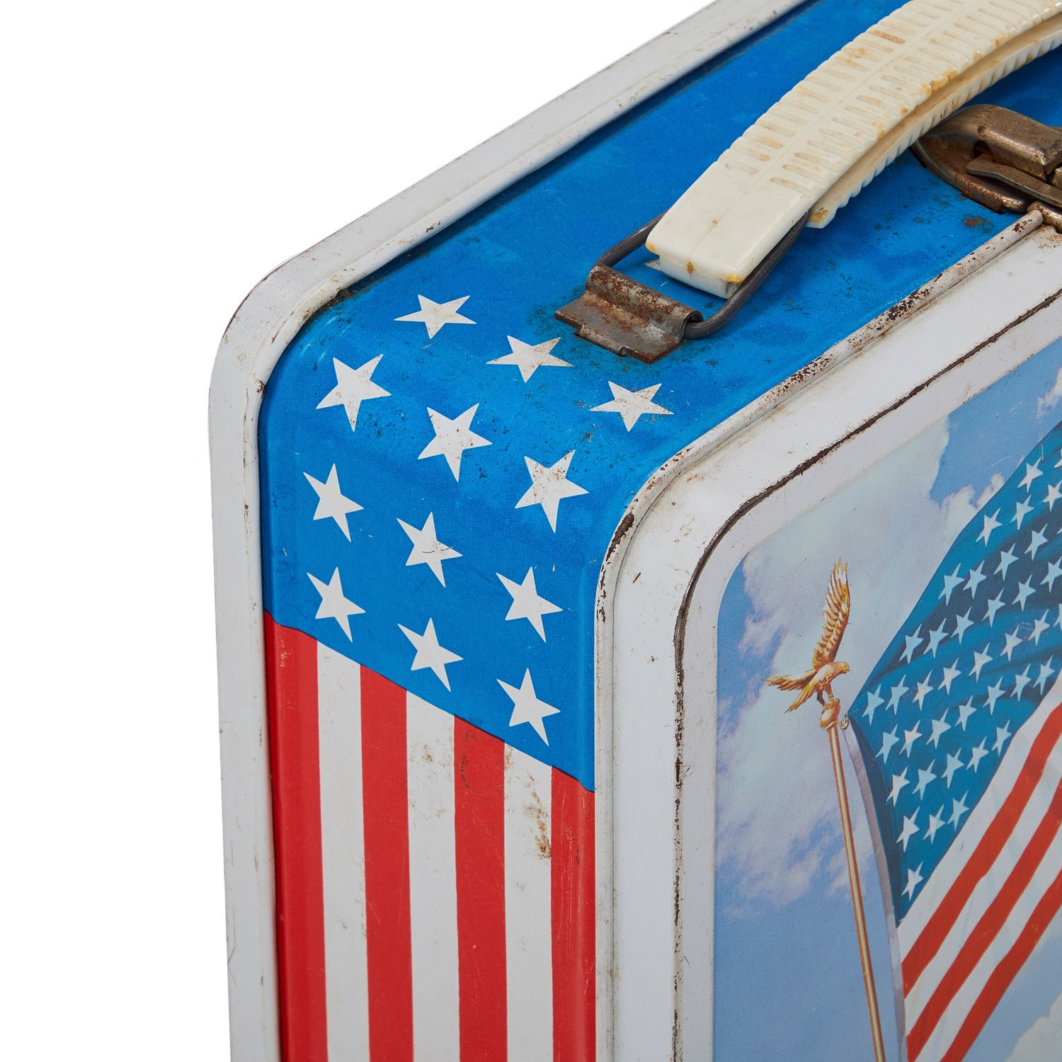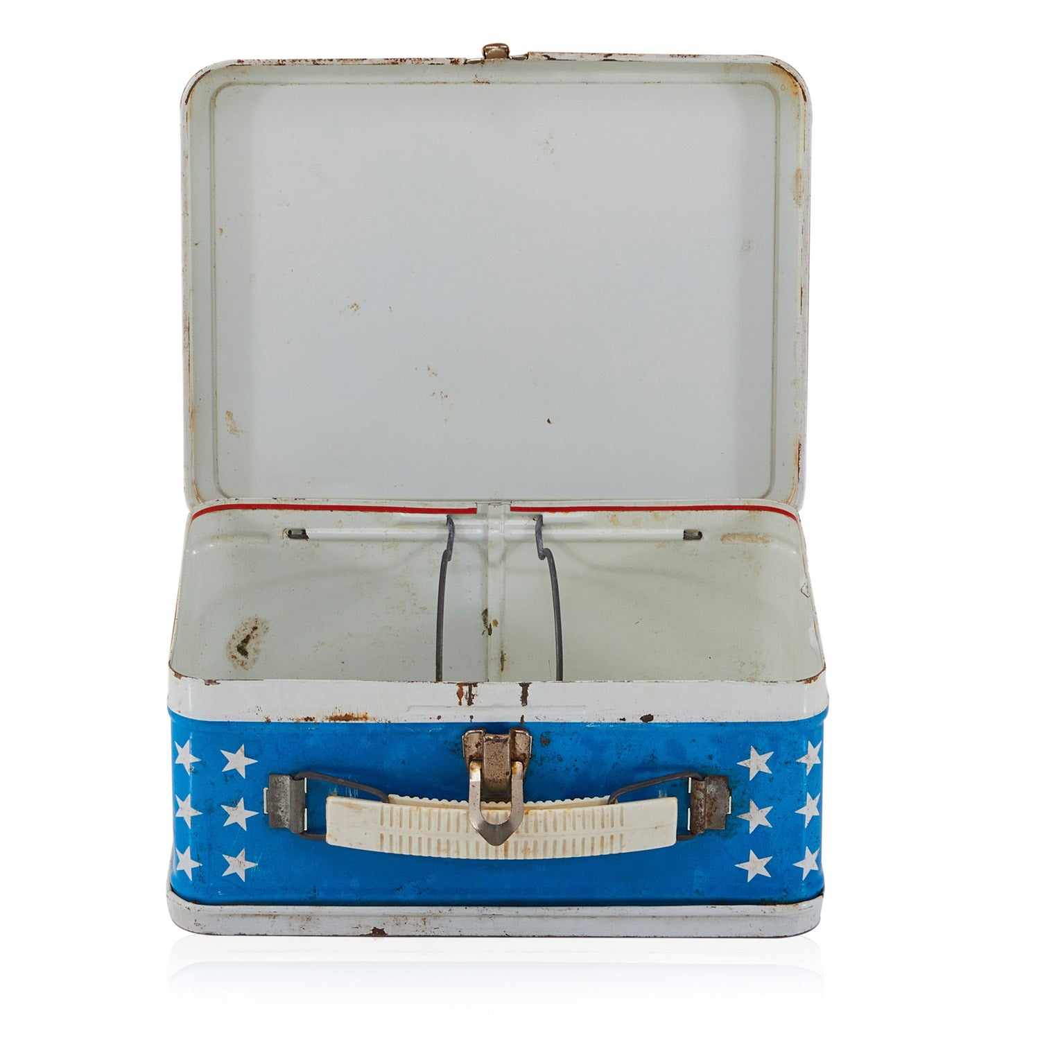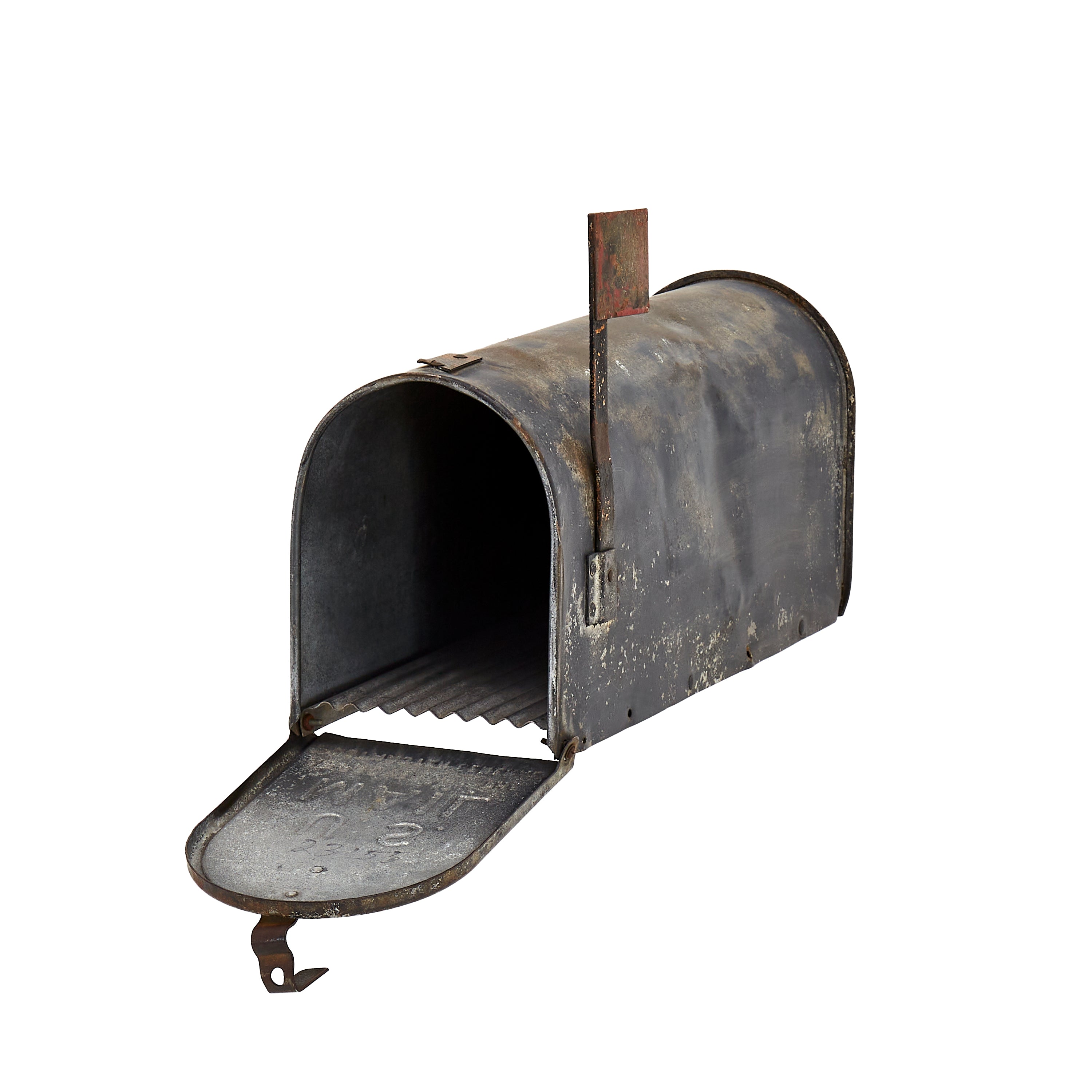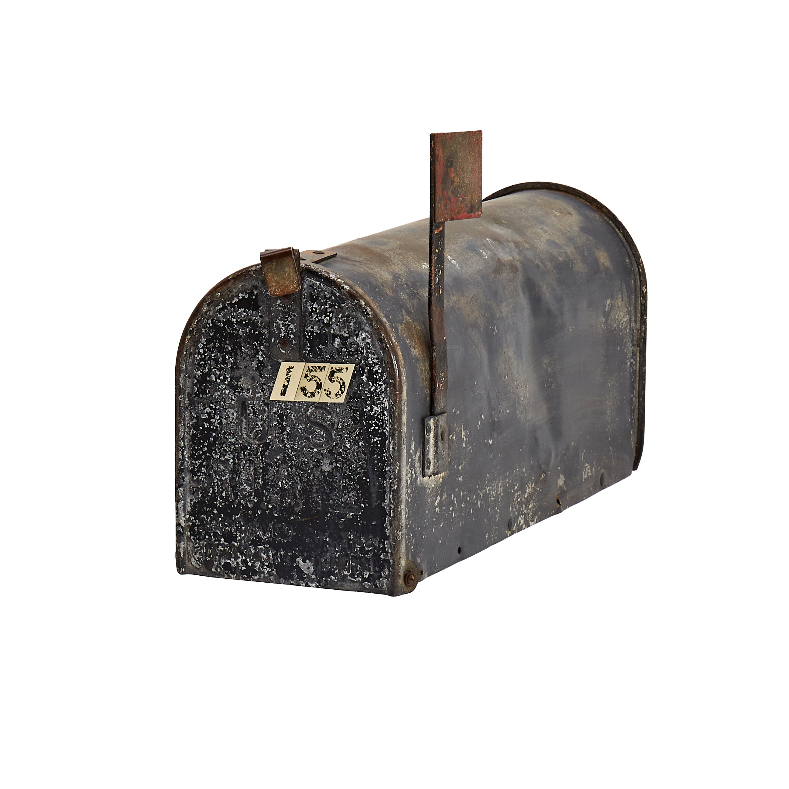 Details: Small blue industrial container made of weathered corrugated metal and with TEX in large white letters down the side Dimensions: 16.5" H x 31"...