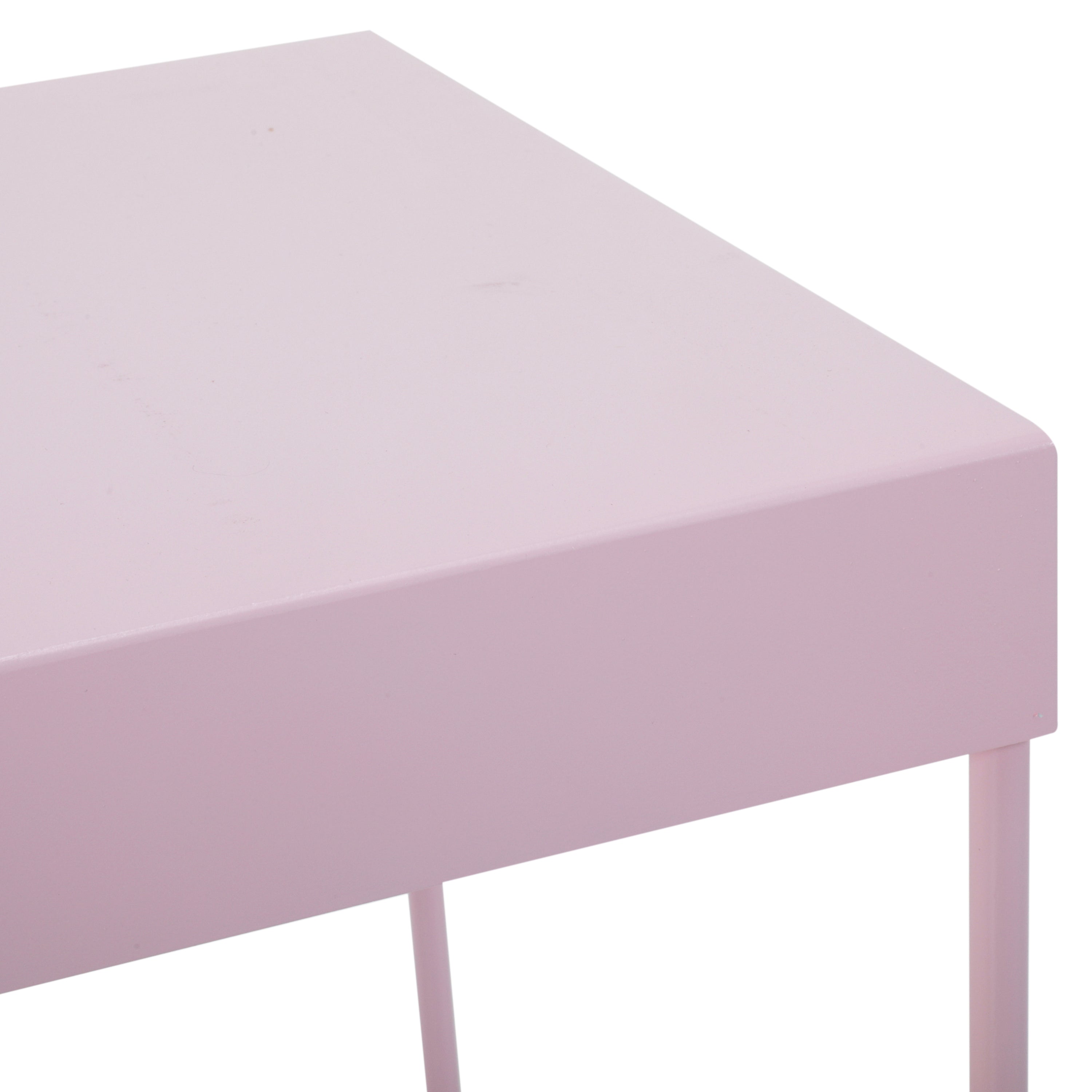 Details: Pink metal rectangular table Dimensions: 20" H x 19" W x 16" D Quantity: 2