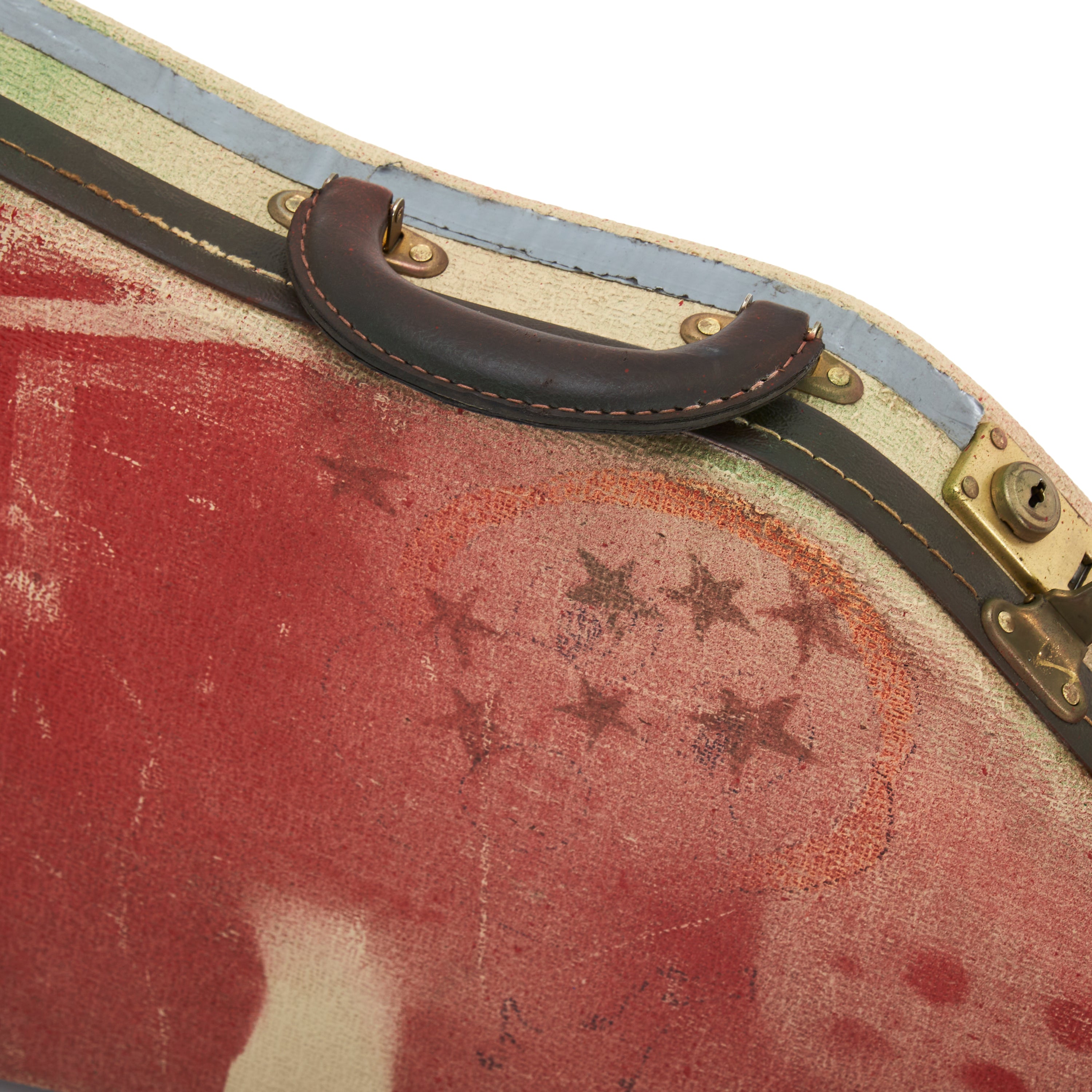 Details: Spray painted exterior with stars, circles, and gear head. Red plush fabric lined interior. Dimensions: 40" High x 14" Wide x 3" Deep
