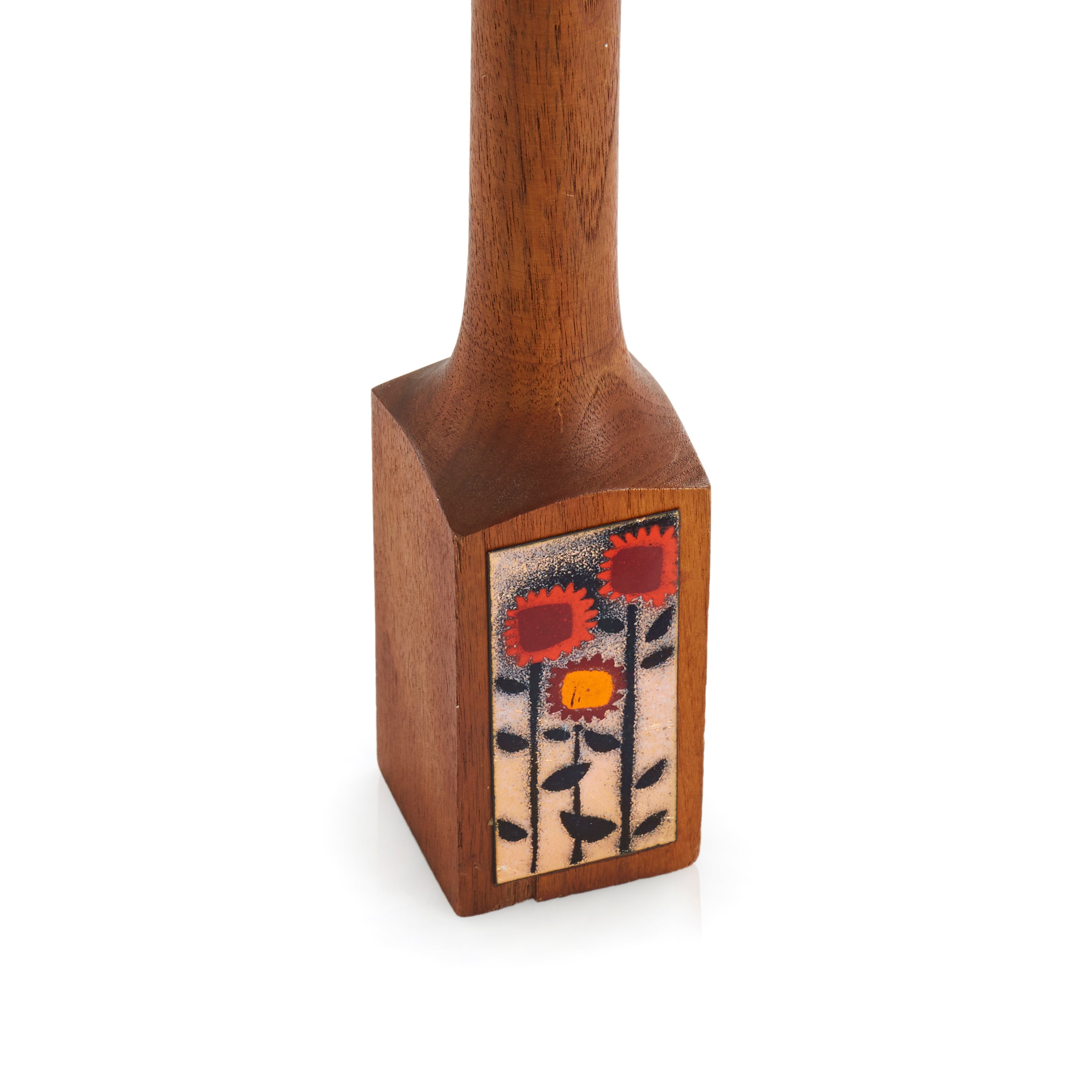 Details: Tall wooden table lighter with flower art on side Dimensions: 15" H x 2" W x 2" D