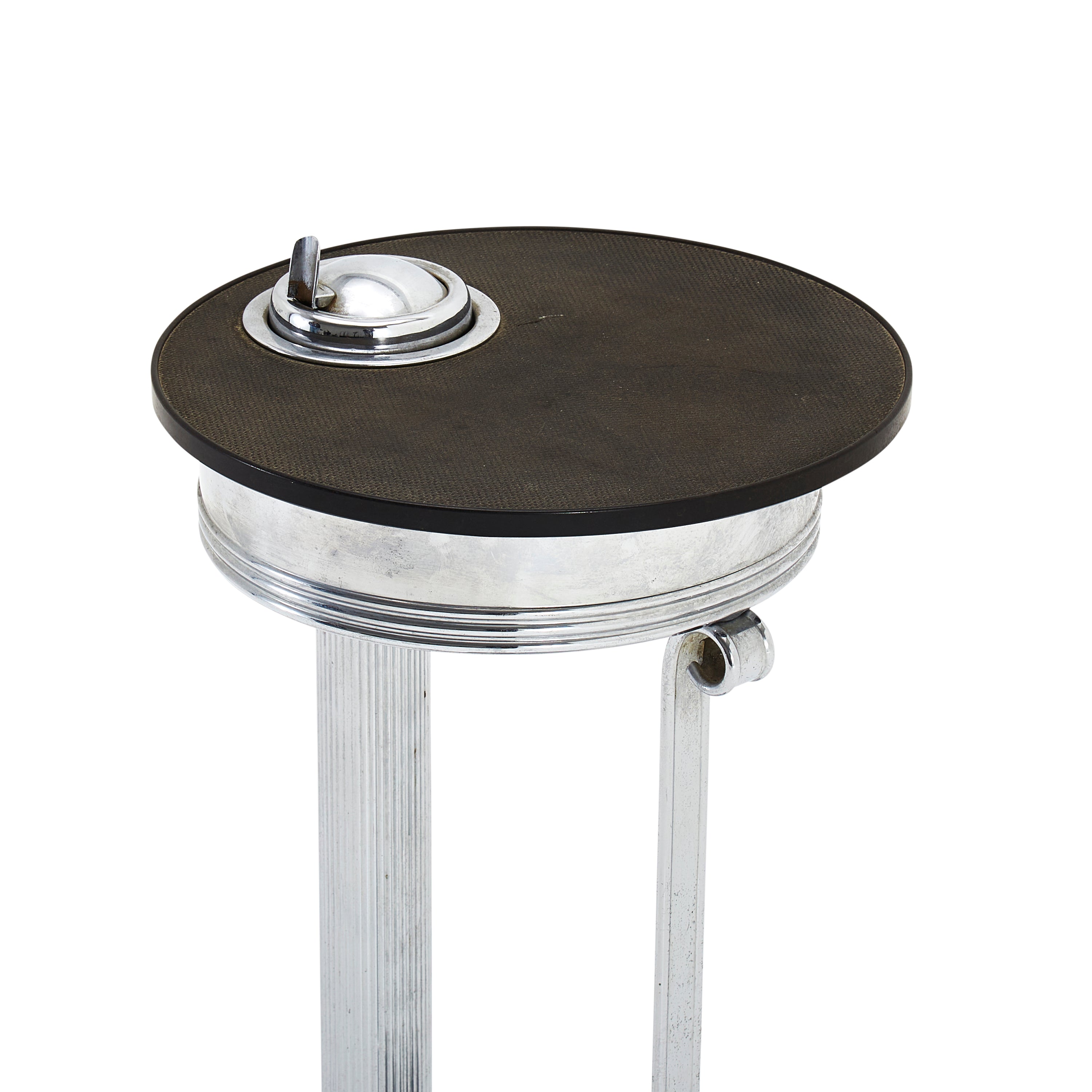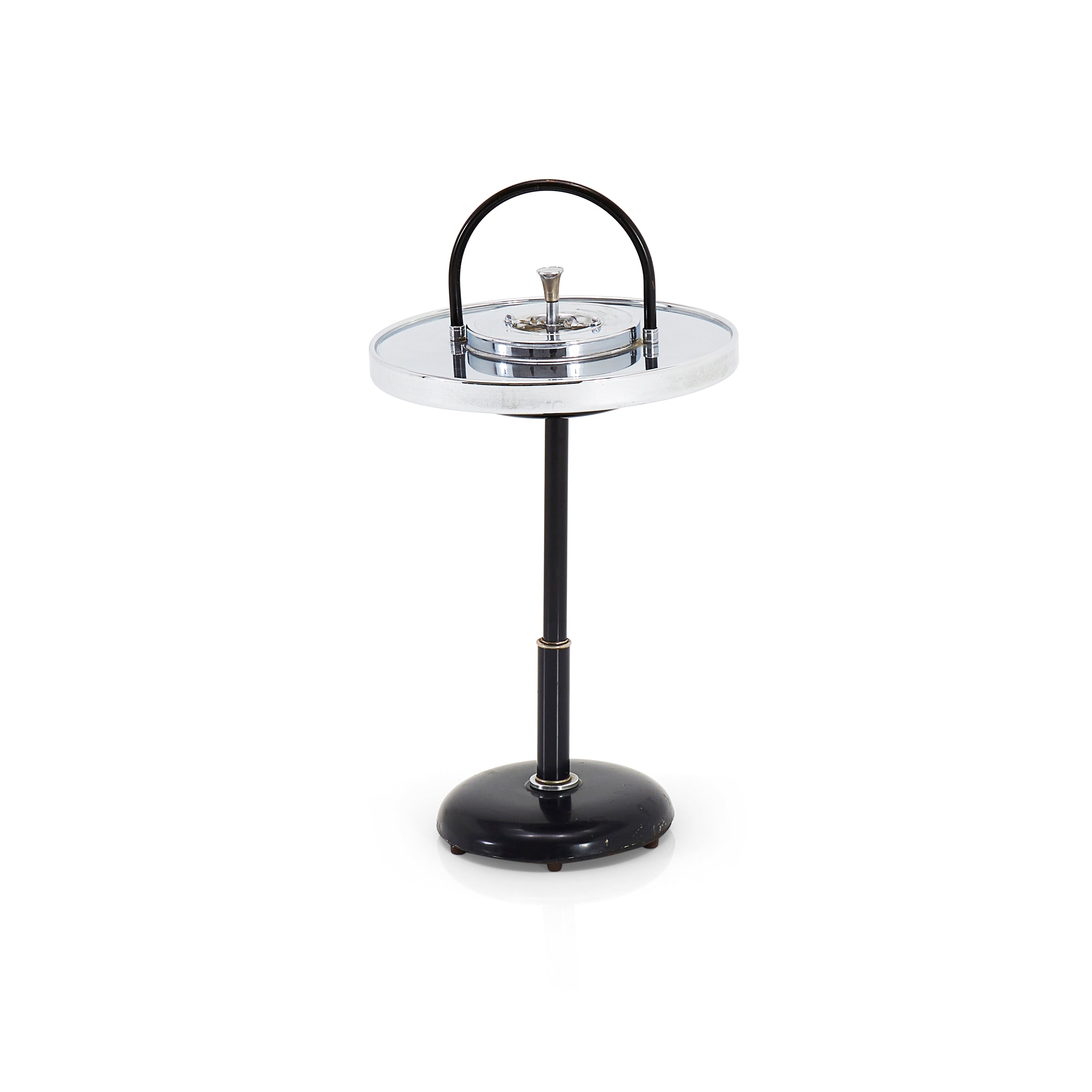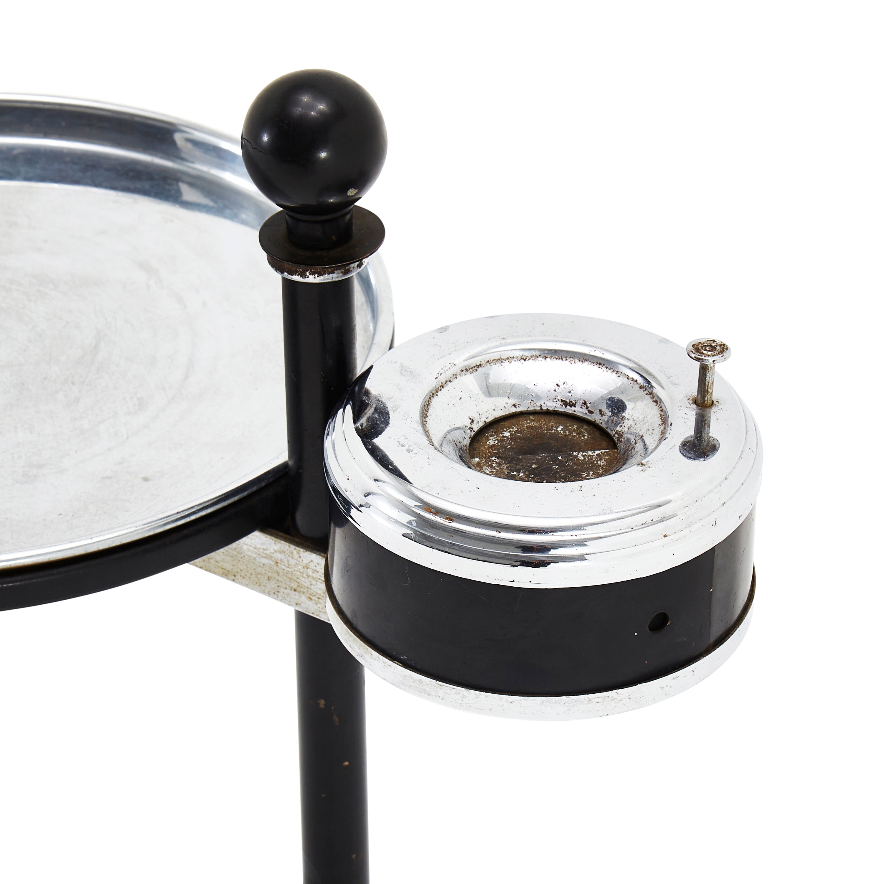 Details: Black standing ashtray with silver table and base. Dimensions: 23" H x 18" W x 12" L