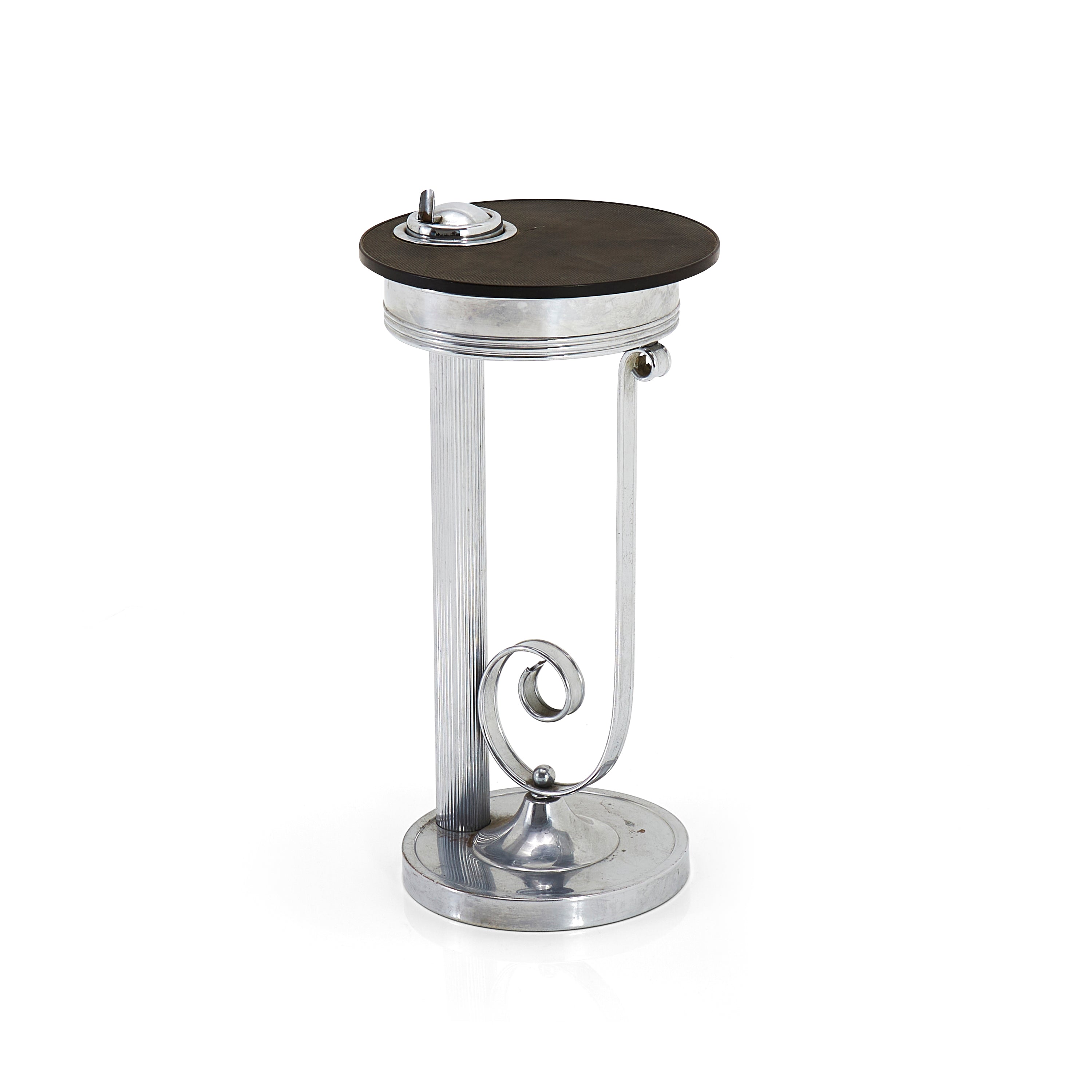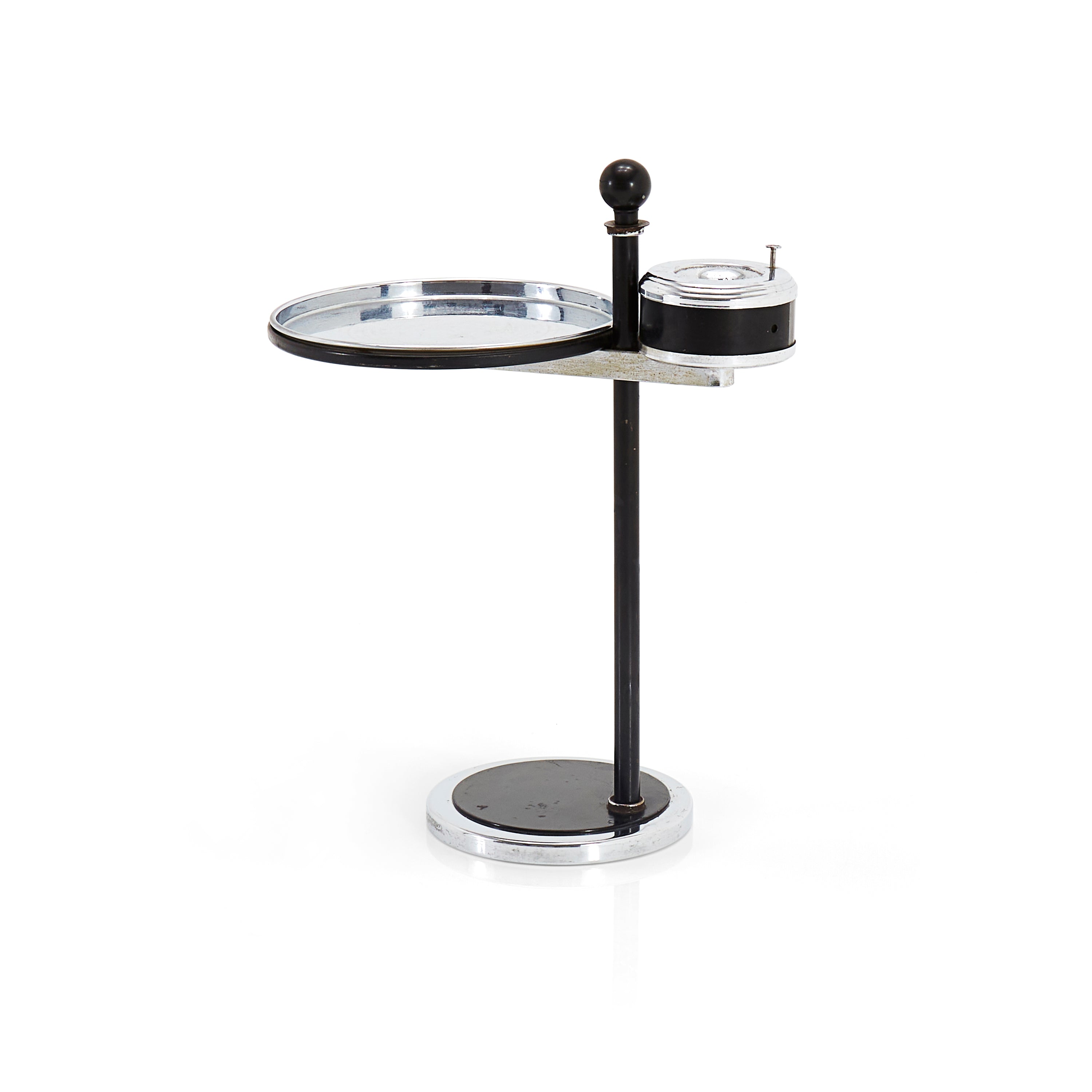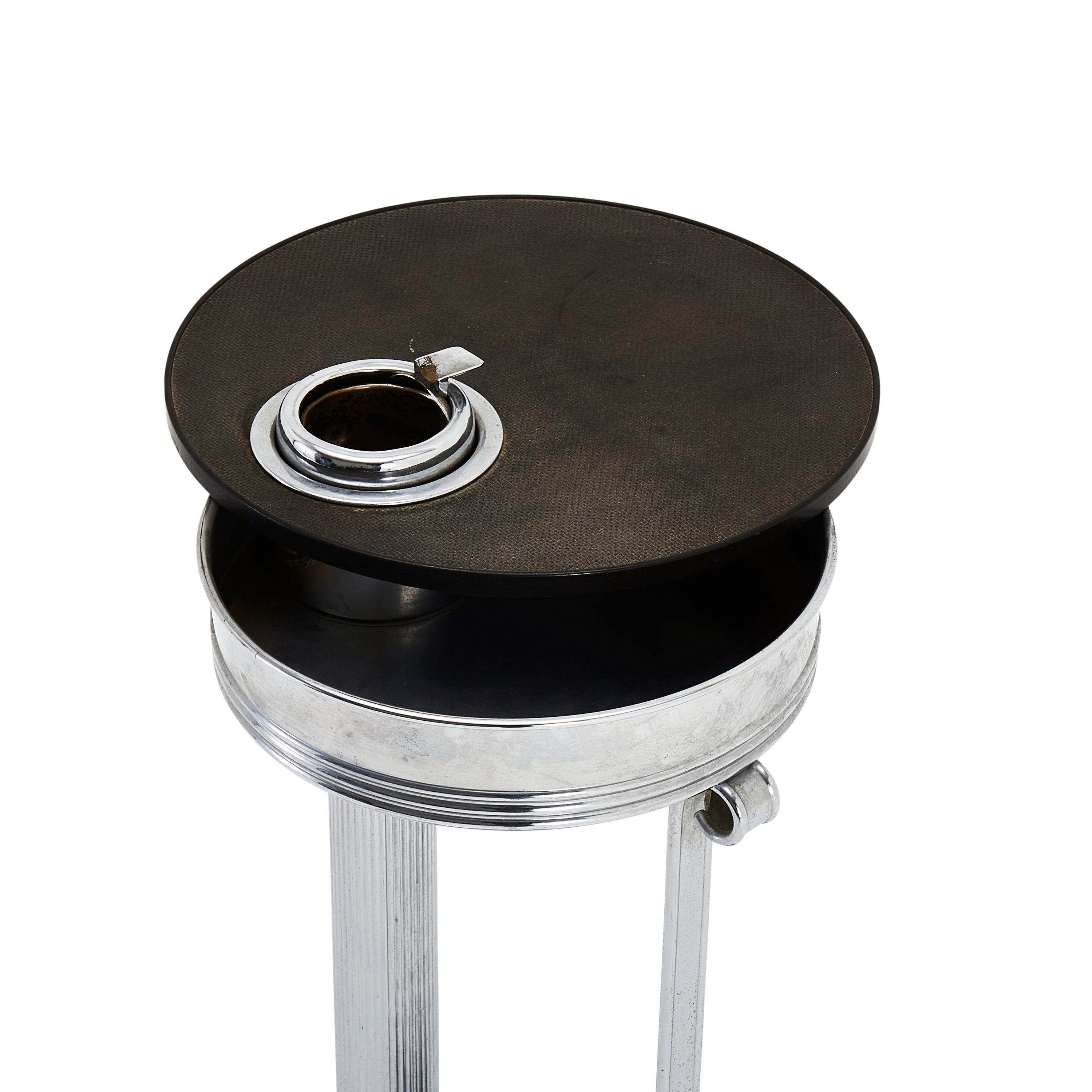 Details: Black standing ashtray with silver table and base. Dimensions: 23" H x 18" W x 12" L