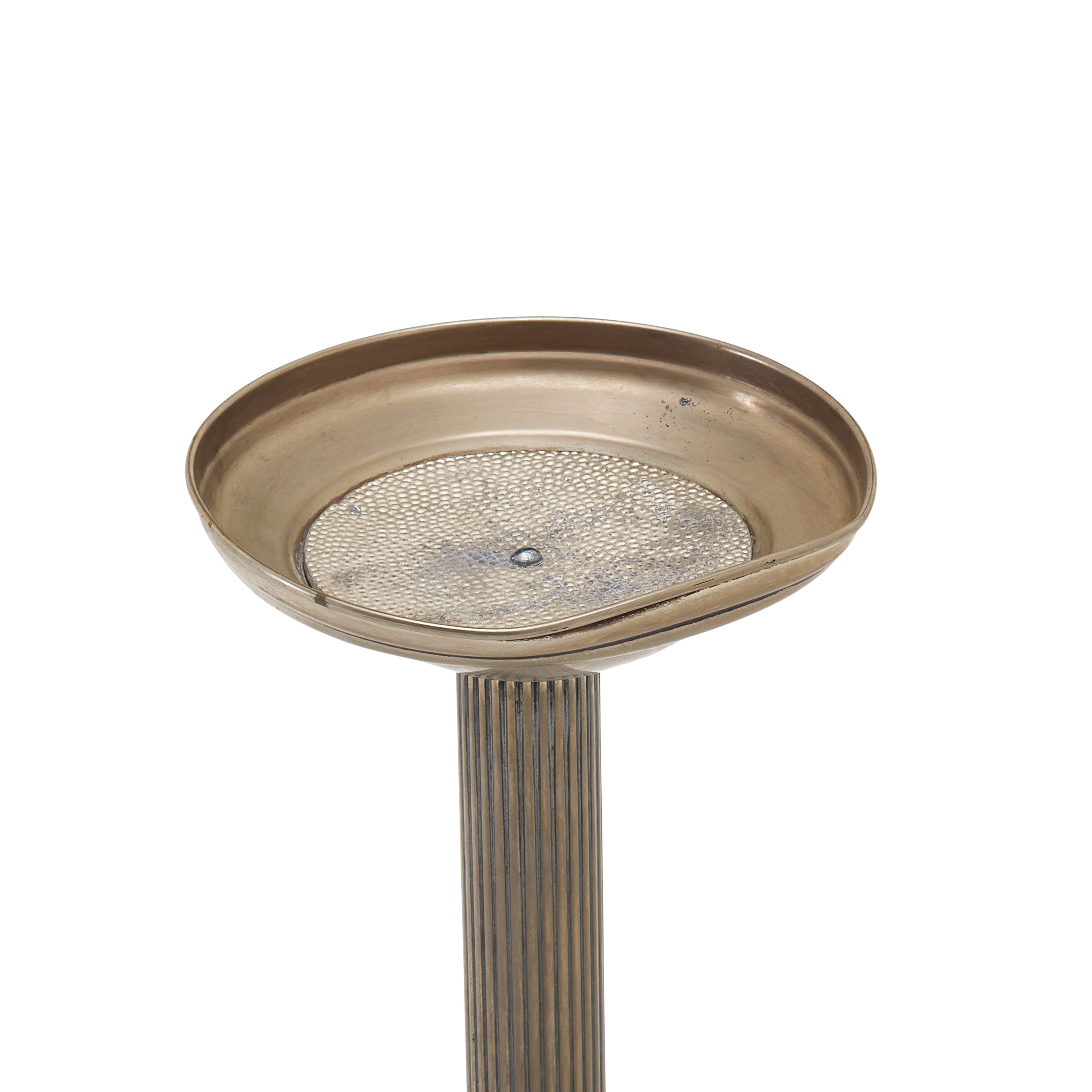 Details: Vintage bronze standing ashtray with bowl-shaped top. Dimensions: 20" H x 9" W/L