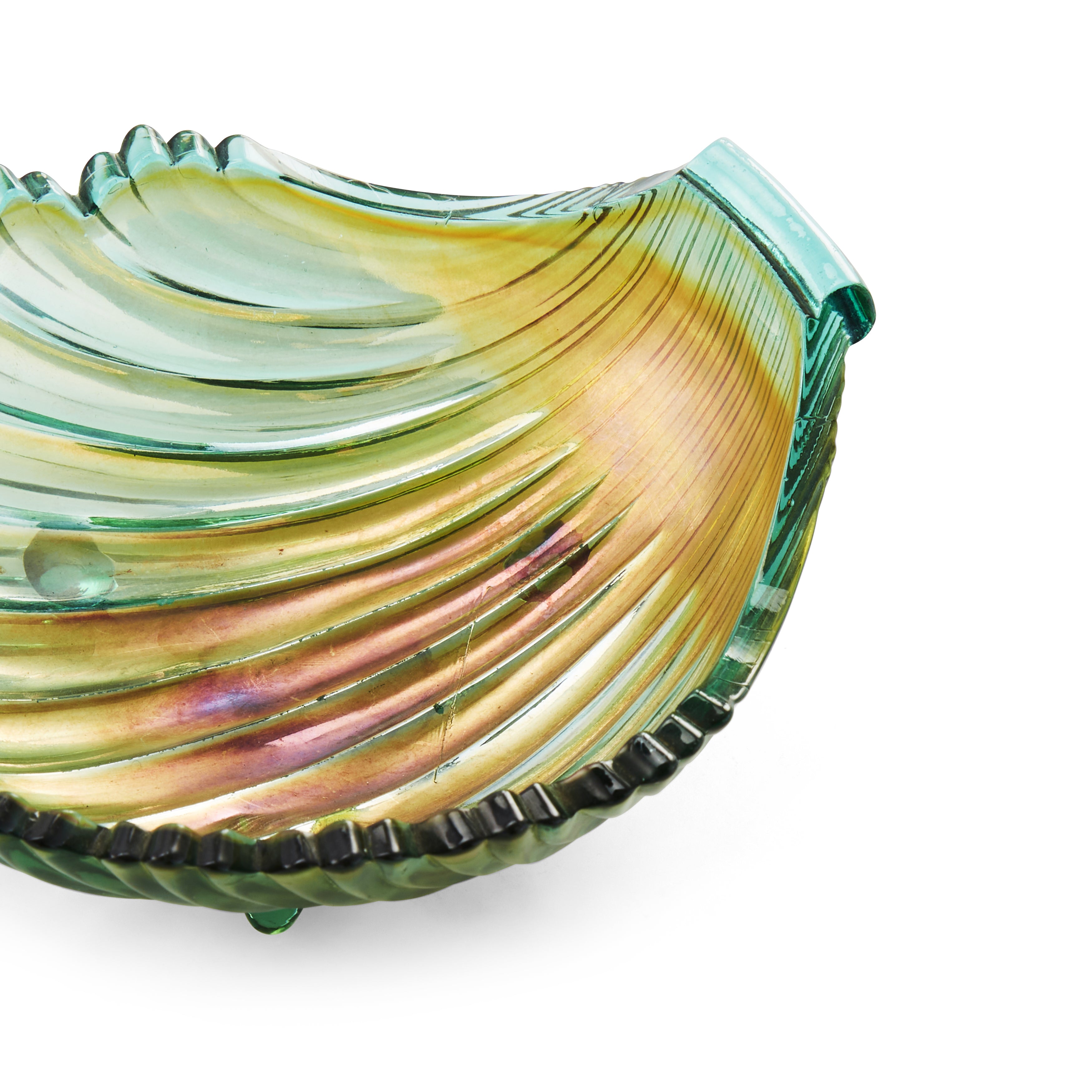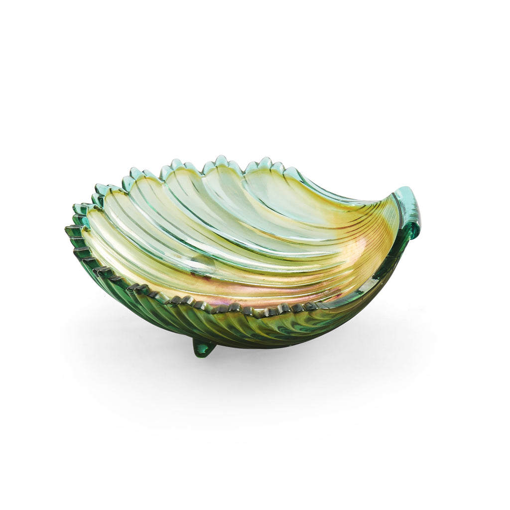 Details: Shell shaped iridescent ashtray with textured edgeDimensions: 2.5" H x 6" W x 7" D Quantity: 2